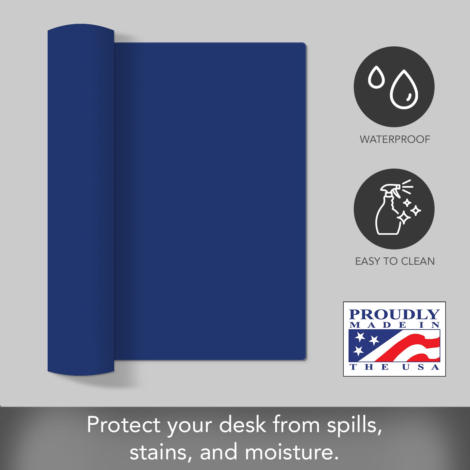 Large Waterproof Desk Protector-Blue 32” x 16” Made in The USA