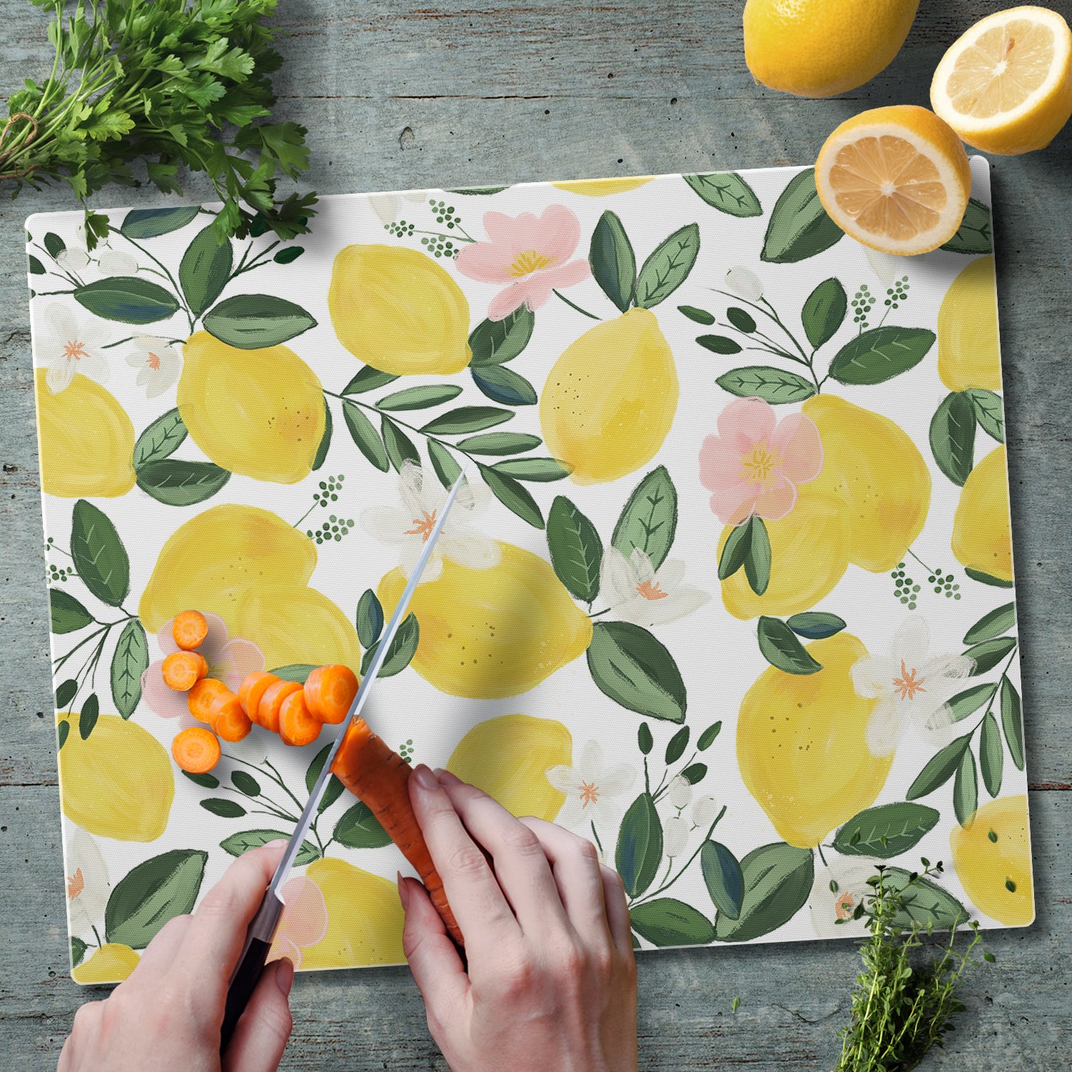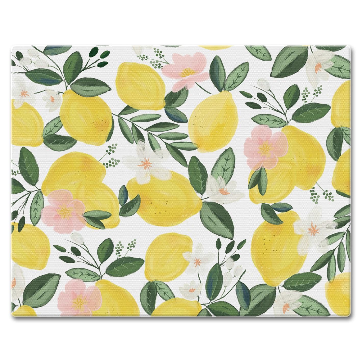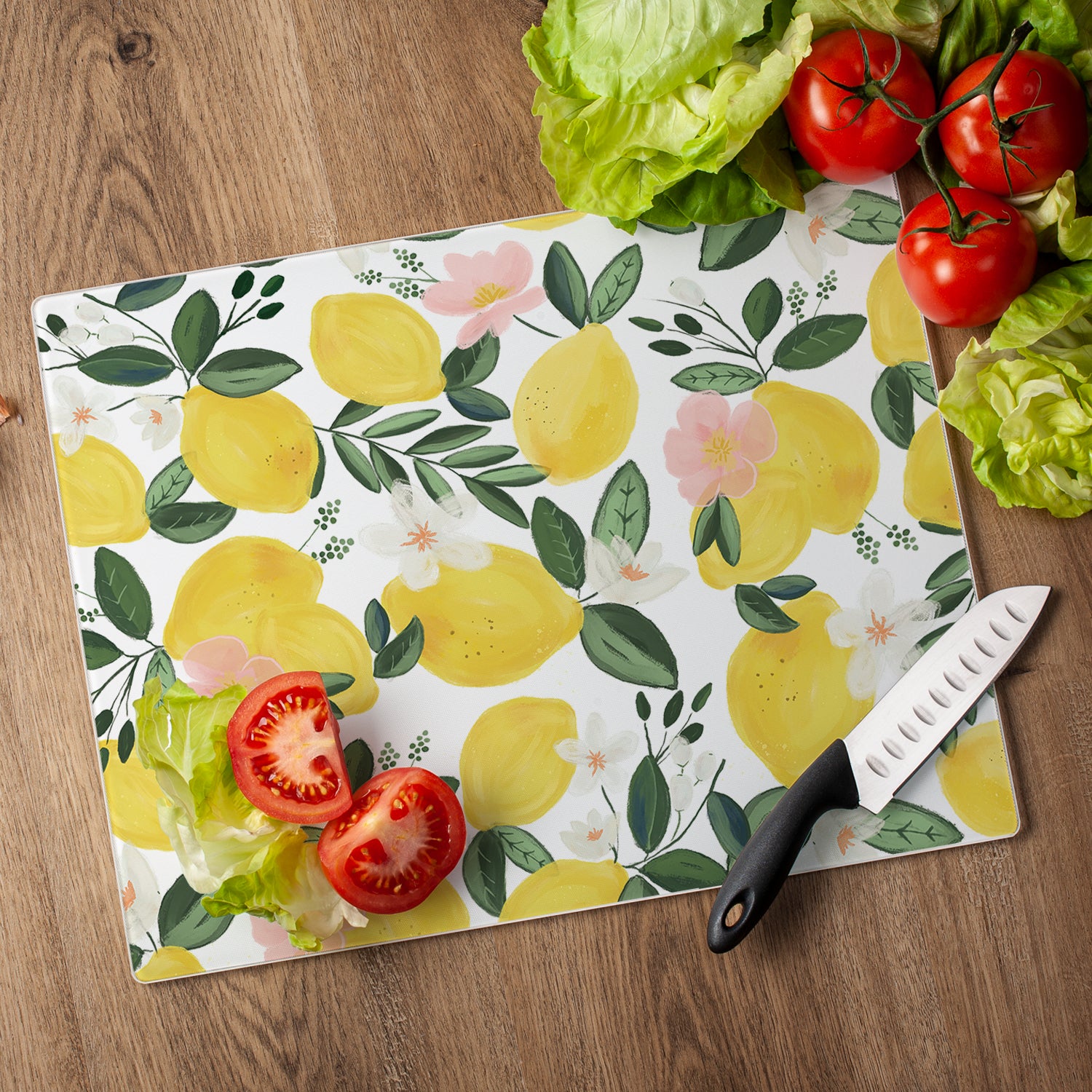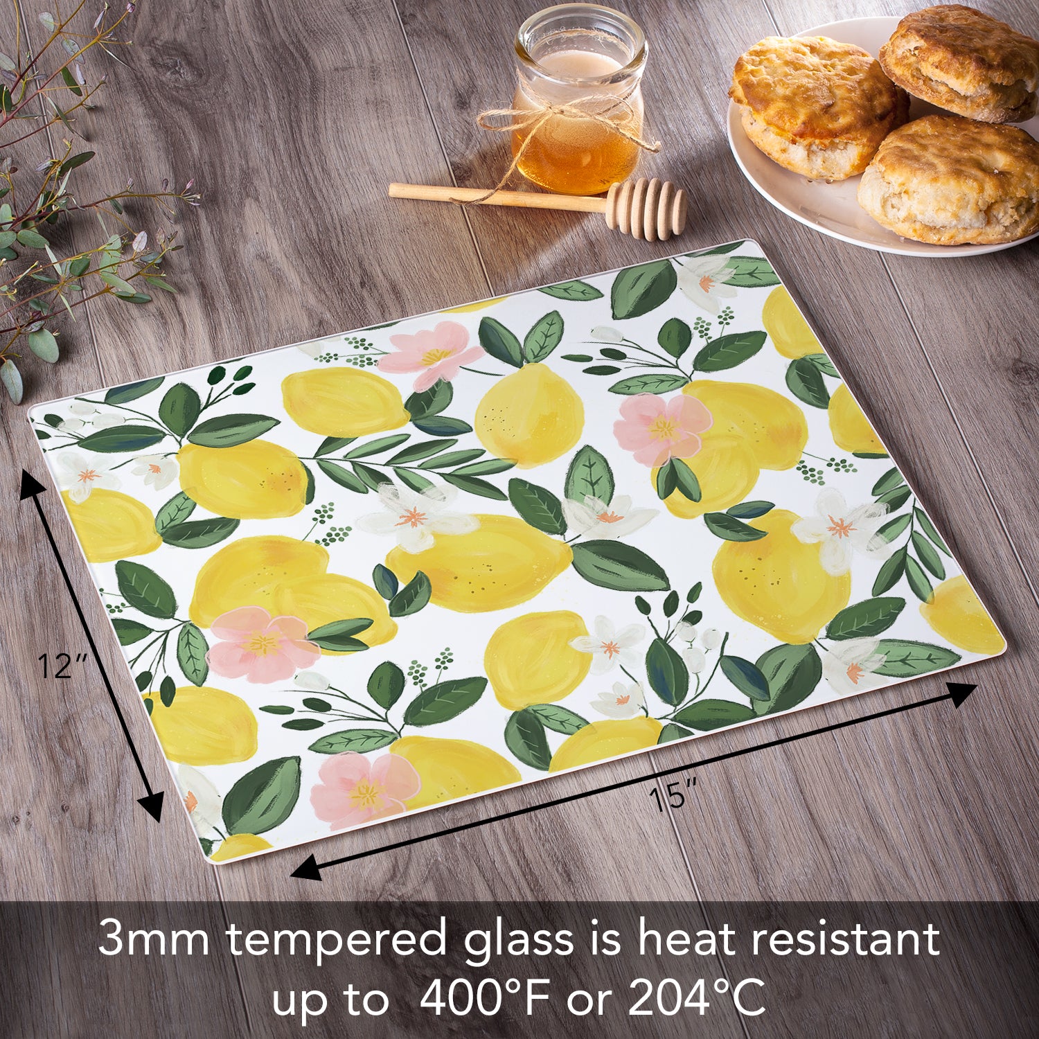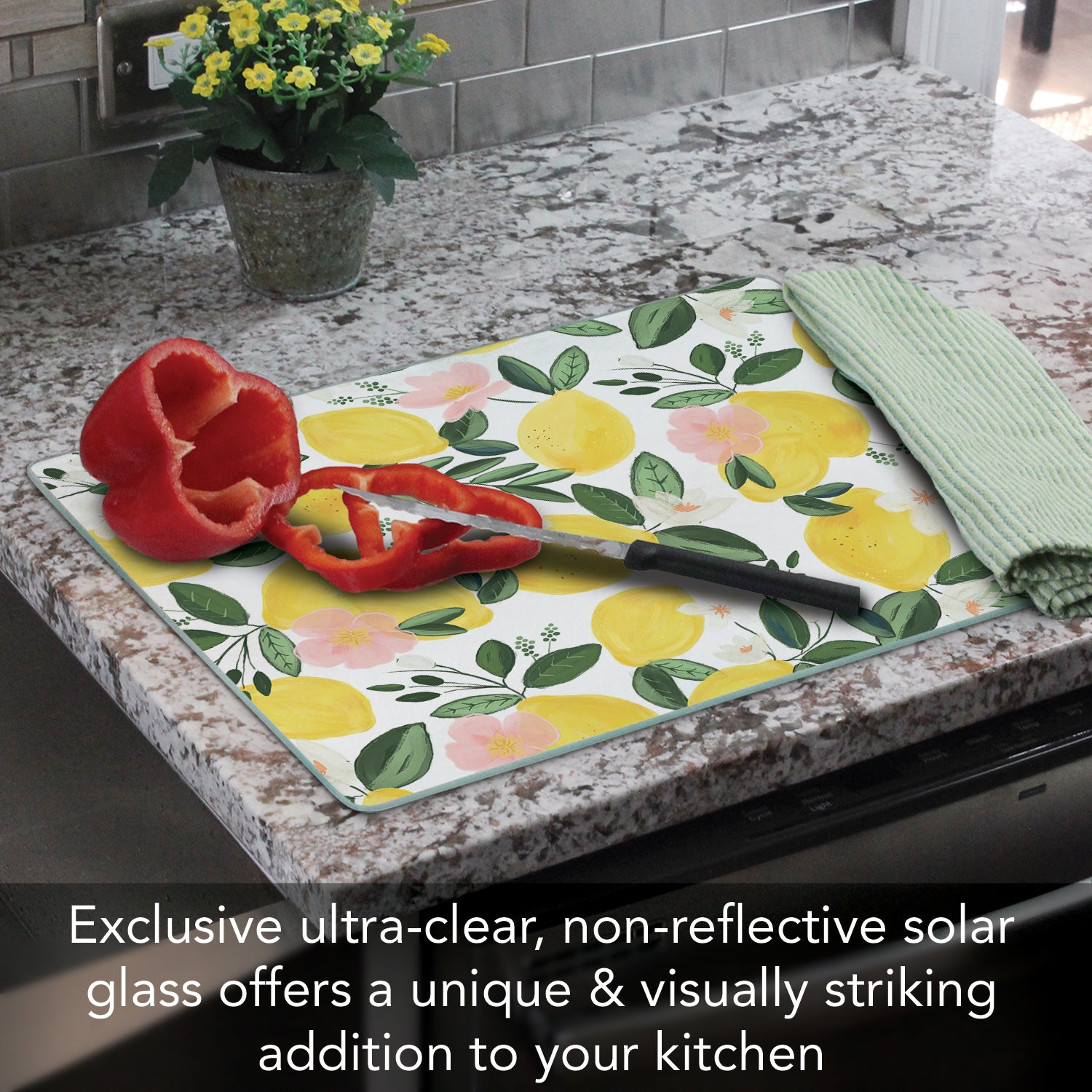 CounterArt Lemons on the Vine 3mm Tempered Glass Cutting Board 15" x 12" Manufactured in the USA