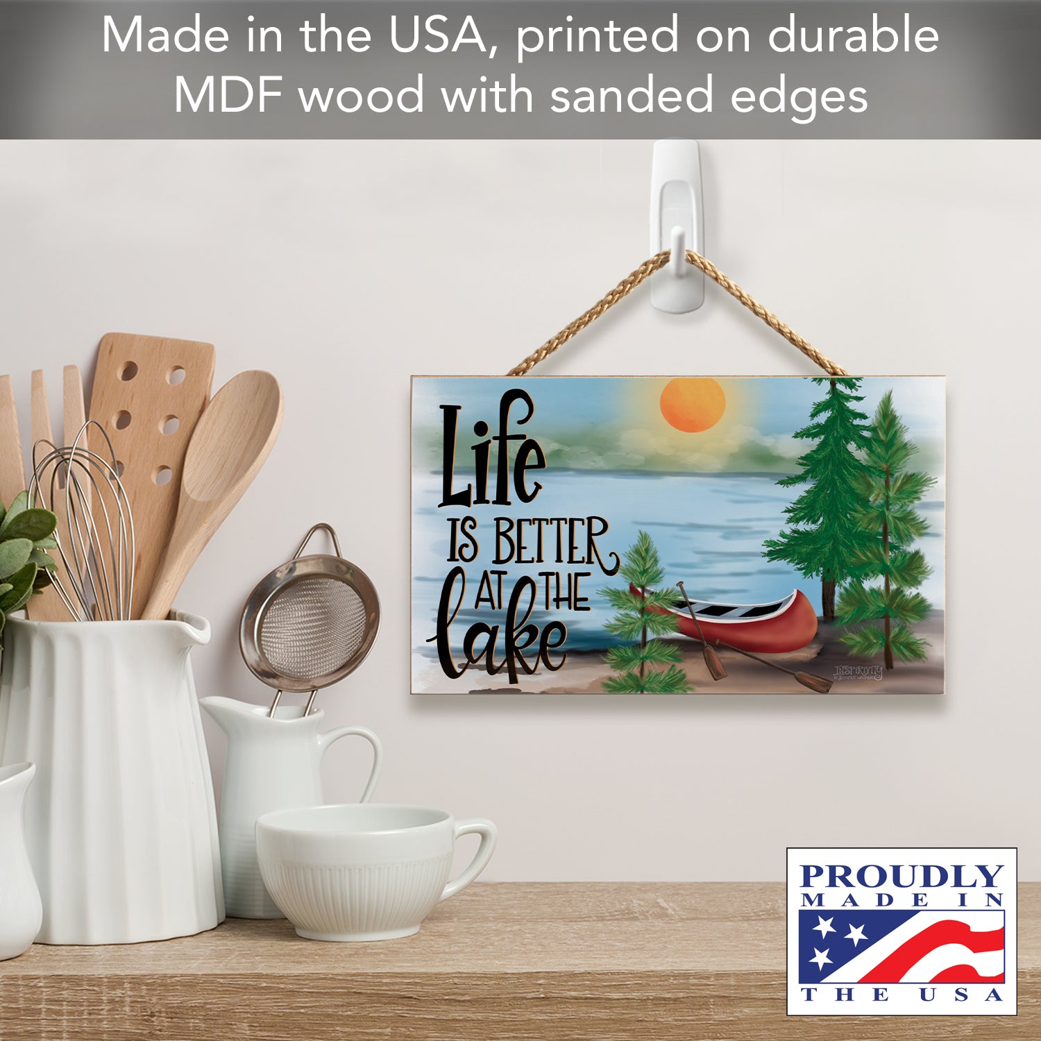 Life Is Better at the Lake Decorative Hanging Wood Wall Sign 9.5” by 5.75” Made in the USA