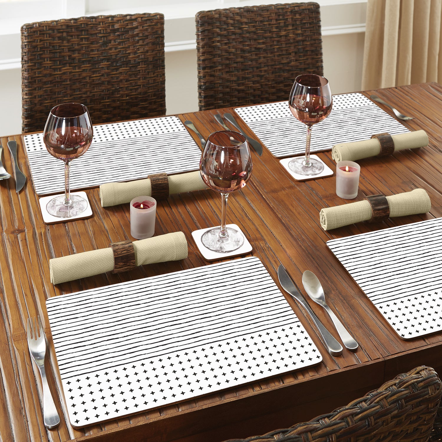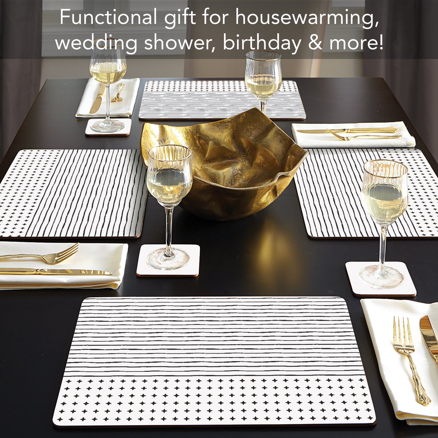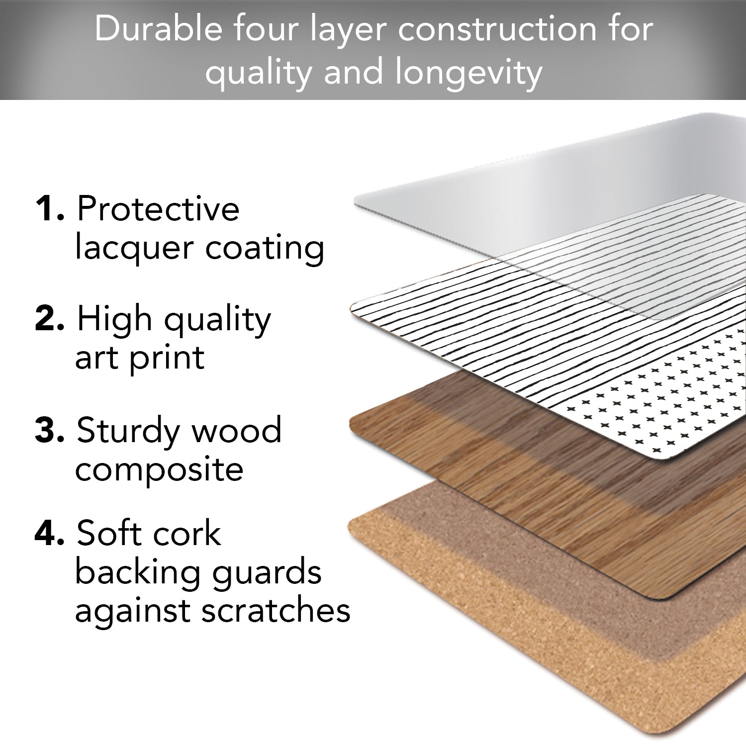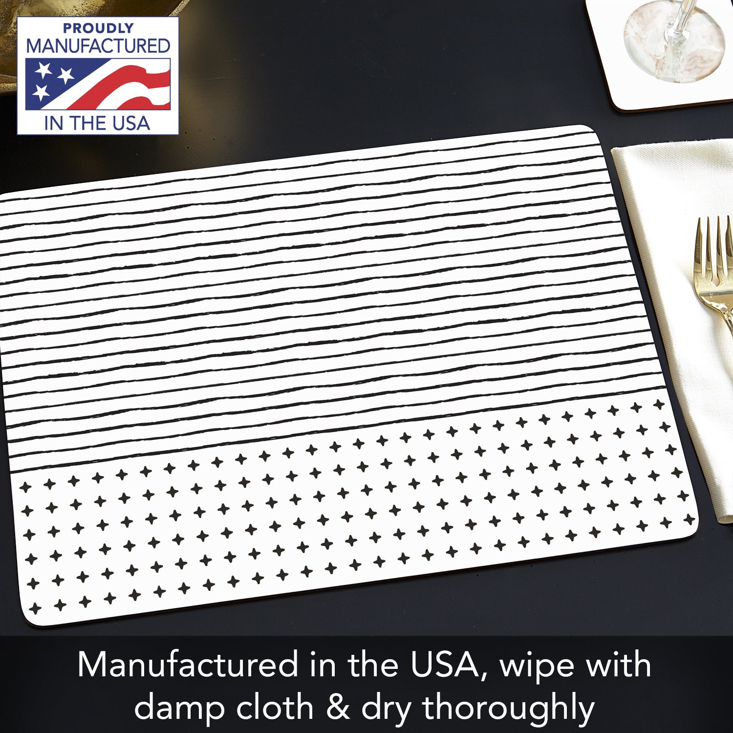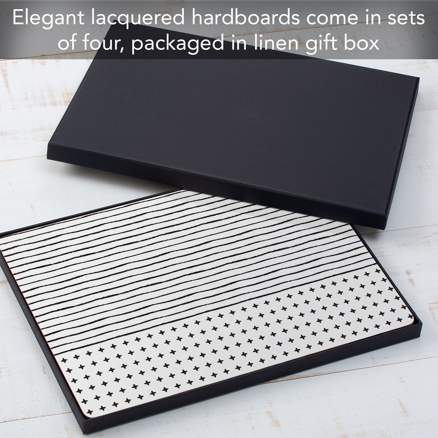 Lines & Dots Premium Decorative Hardboard Tabletop Placemats 4 Pack Manufactured in the USA