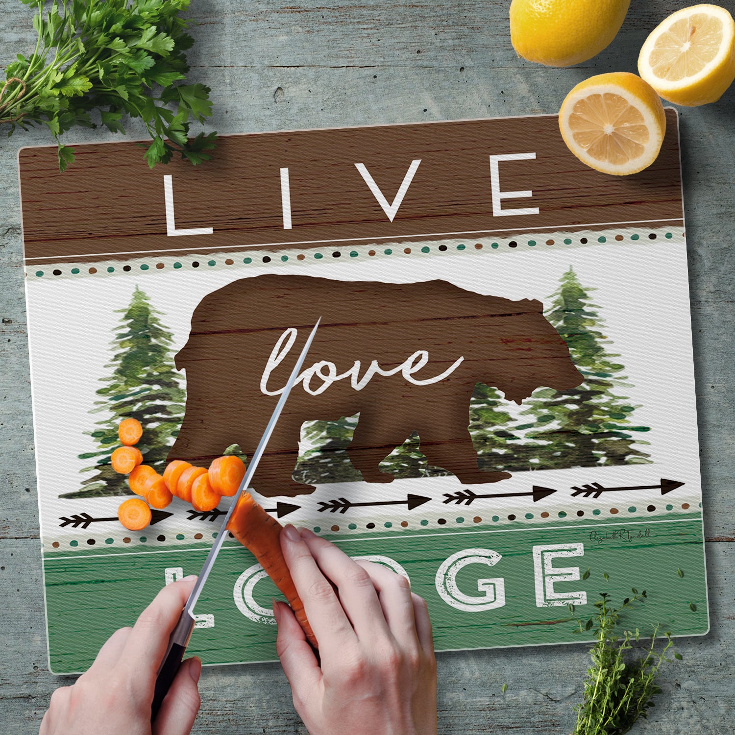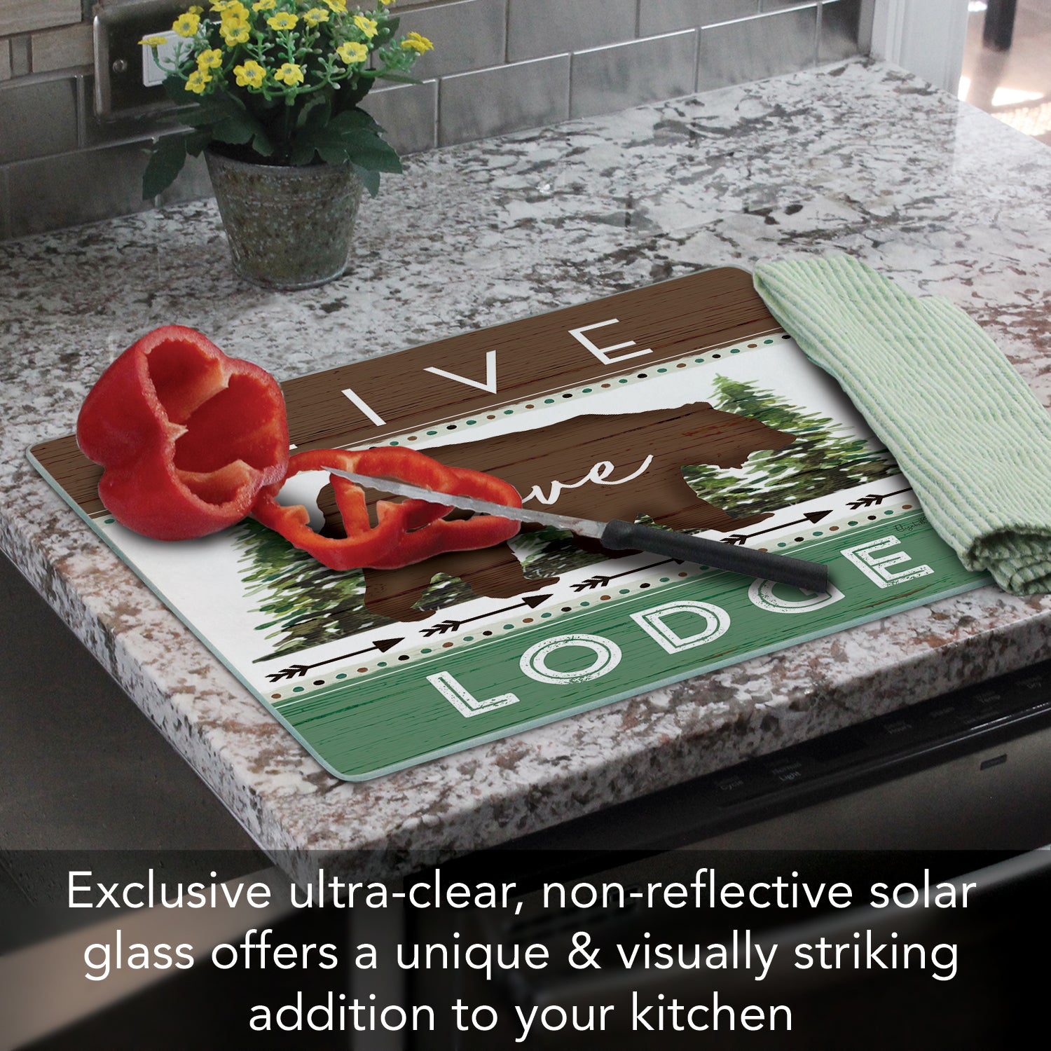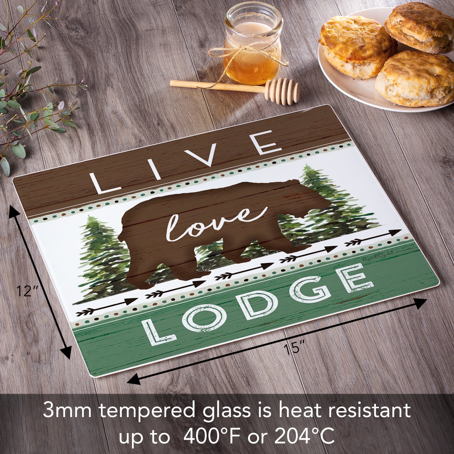 CounterArt Live Love Lodge 3mm Tempered Glass Cutting Board 15" x 12" Manufactured in the USA