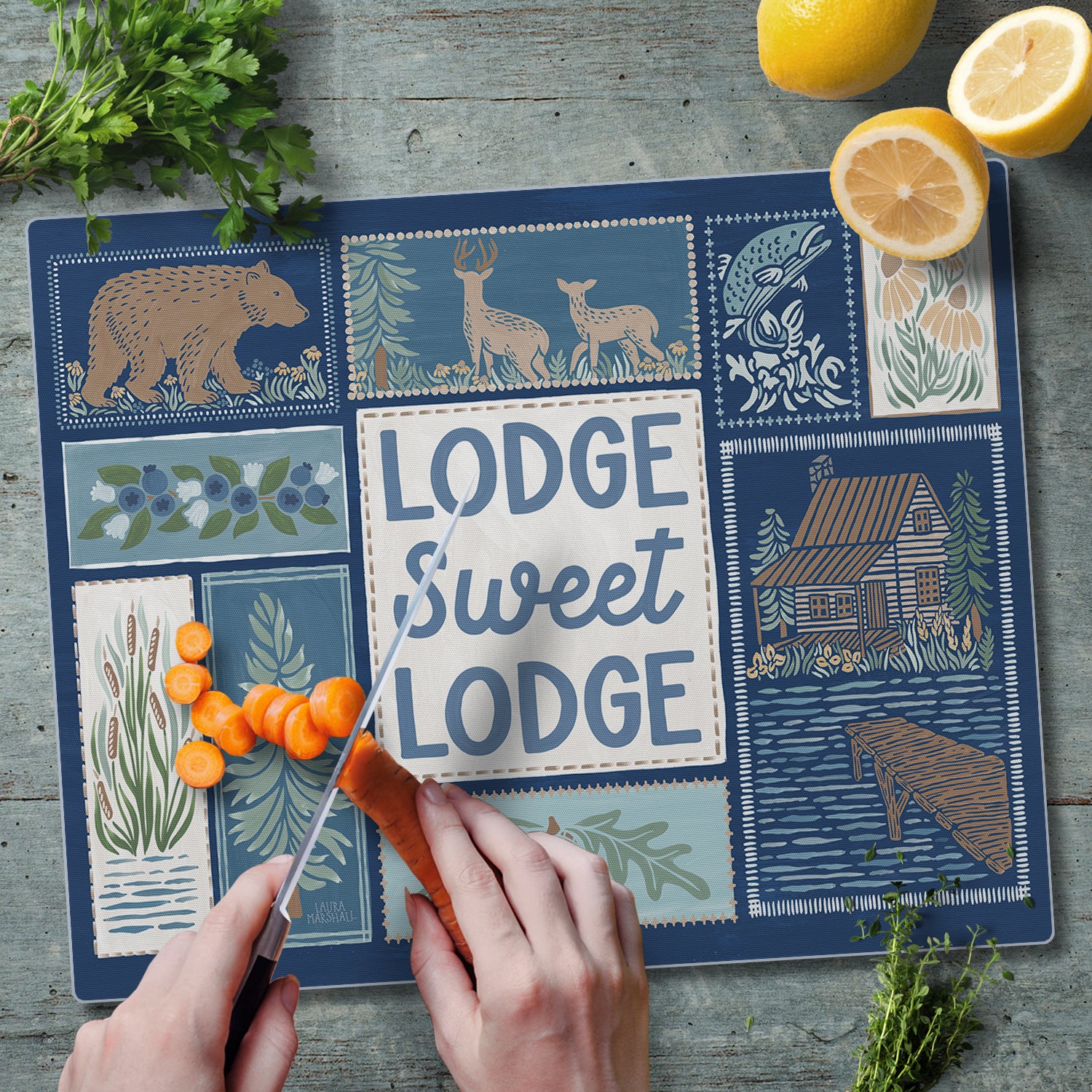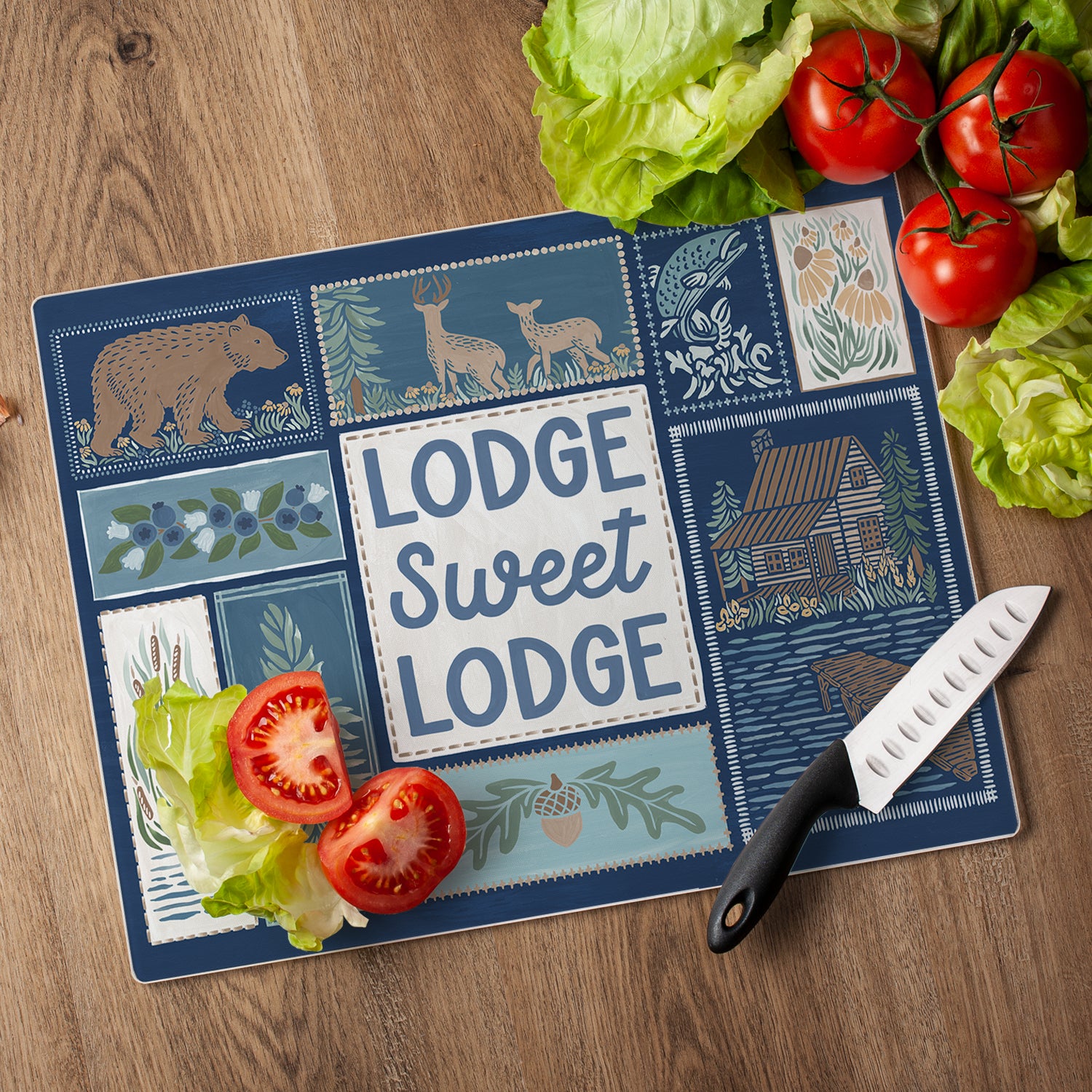 CounterArt Lodge Sweet Lodge 3mm Tempered Glass Cutting Board 15" x 12" Manufactured in the USA