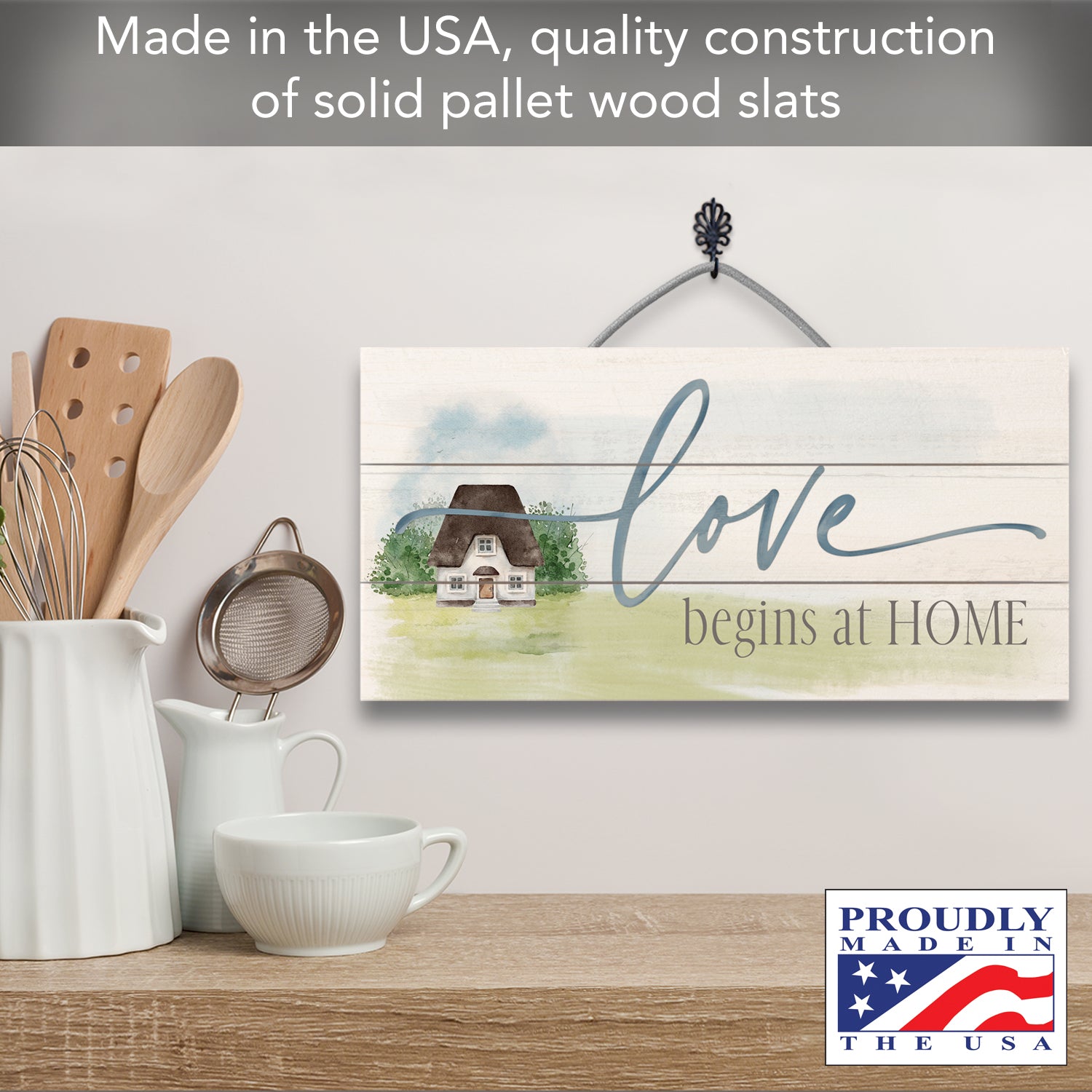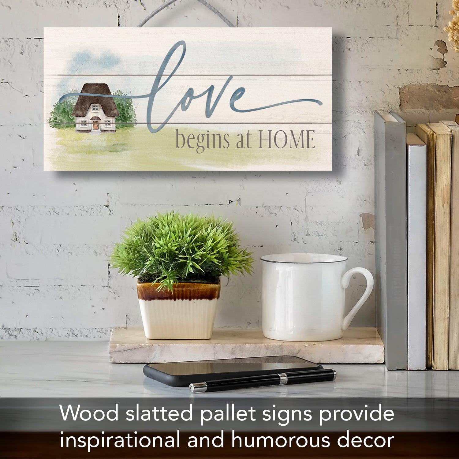 CounterArt Love Begins at Home Decorative Slatted Pallet Wood Sign 12" by 6" Made in the USA