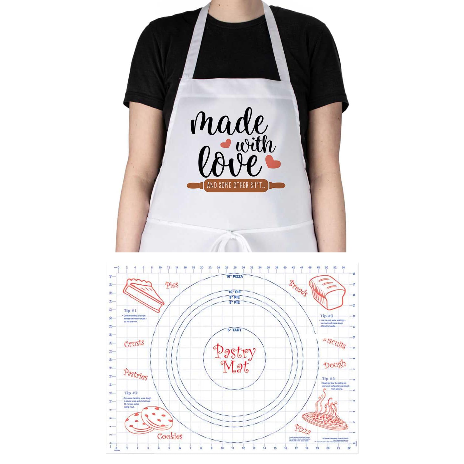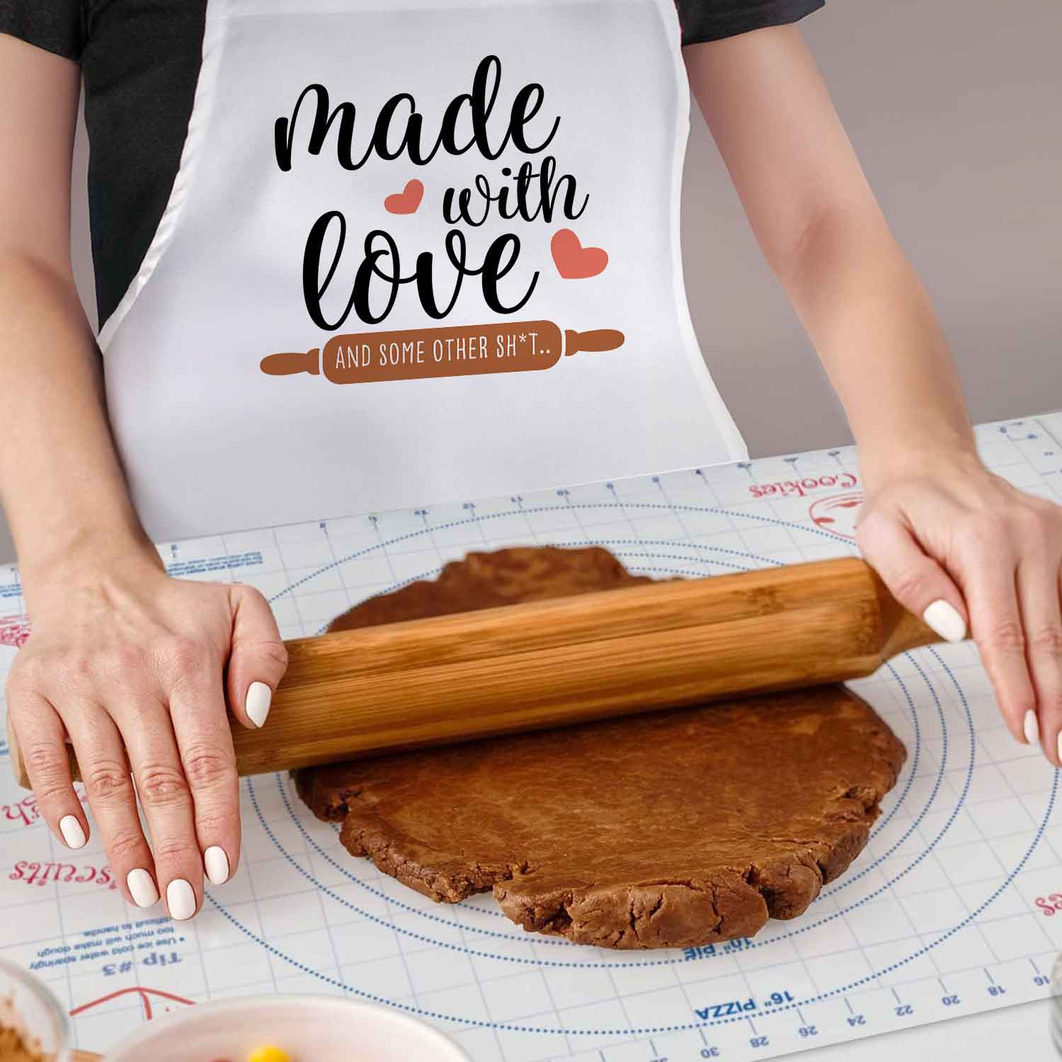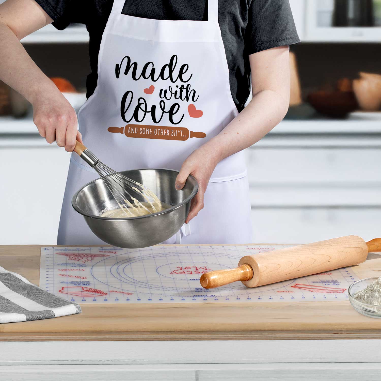 Chef Apron with Pastry Mat- Made With Love Chef Apron & 24" x 18" Pastry Mat with Grid Markings