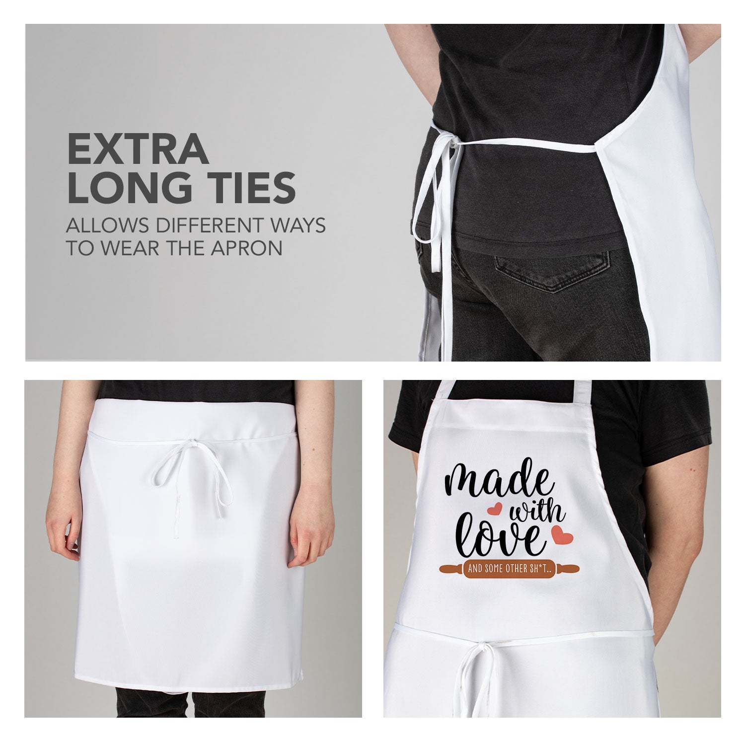 CUTE, FUNNY QUOTES- Each Apron is printed with a cute or funny design. Find that perfect Apron for Father’s Day, Birthdays, or Holidays. Makes a great housewarming gift too