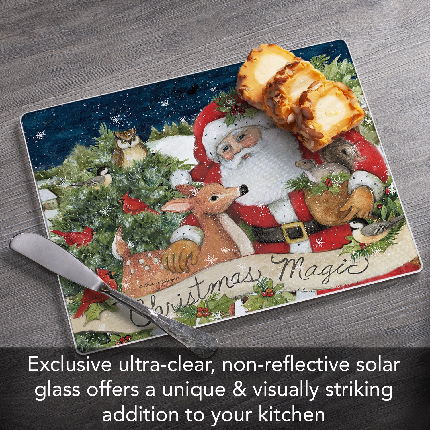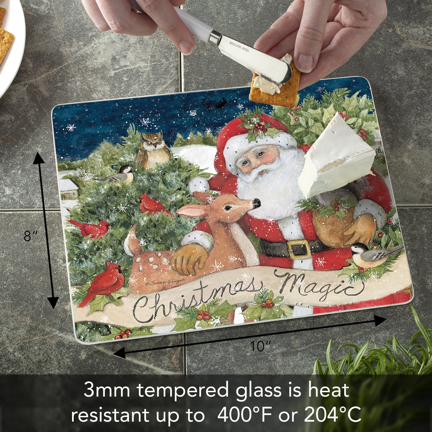 CounterArt Magic of the Holidays 3mm Tempered Glass Cutting Board 10” x 8” Manufactured in the USA