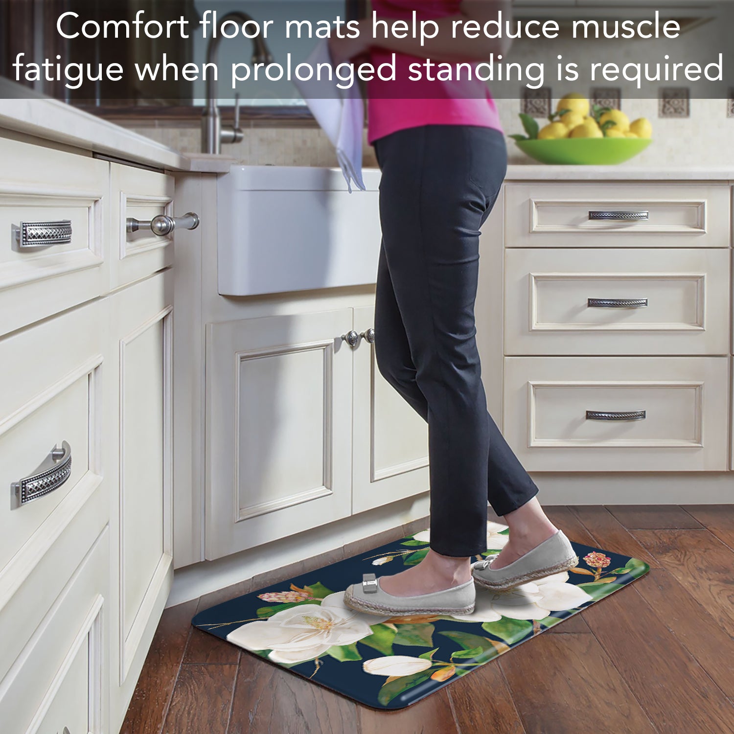 Magnolia Motif 30” x 20” Decorative Vinyl Comfort Floor Mat Manufactured in the USA