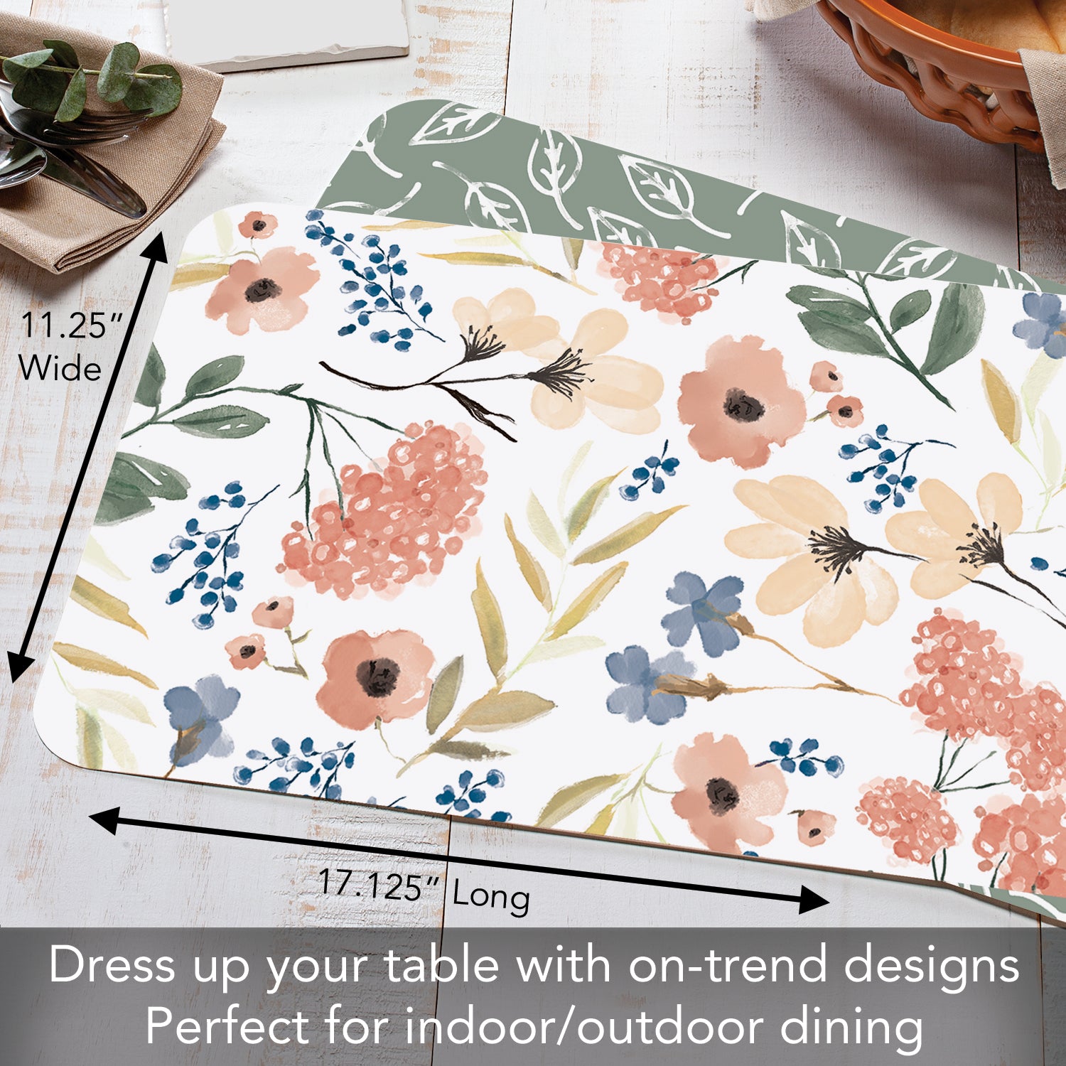 CounterArt Meadow 4 Pack Reversible Easy Care Flexible Placemats Made in the USA