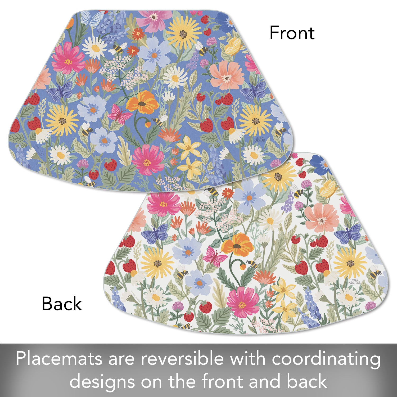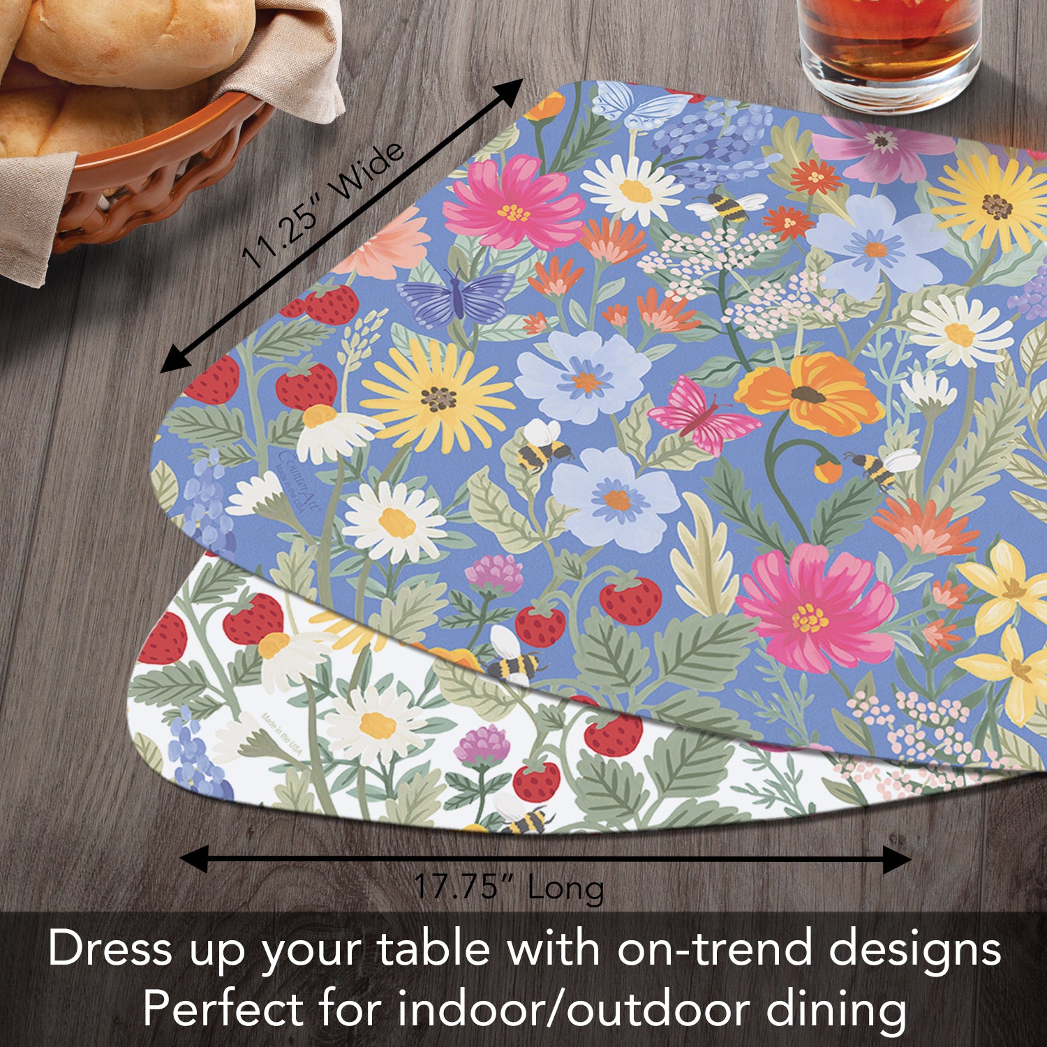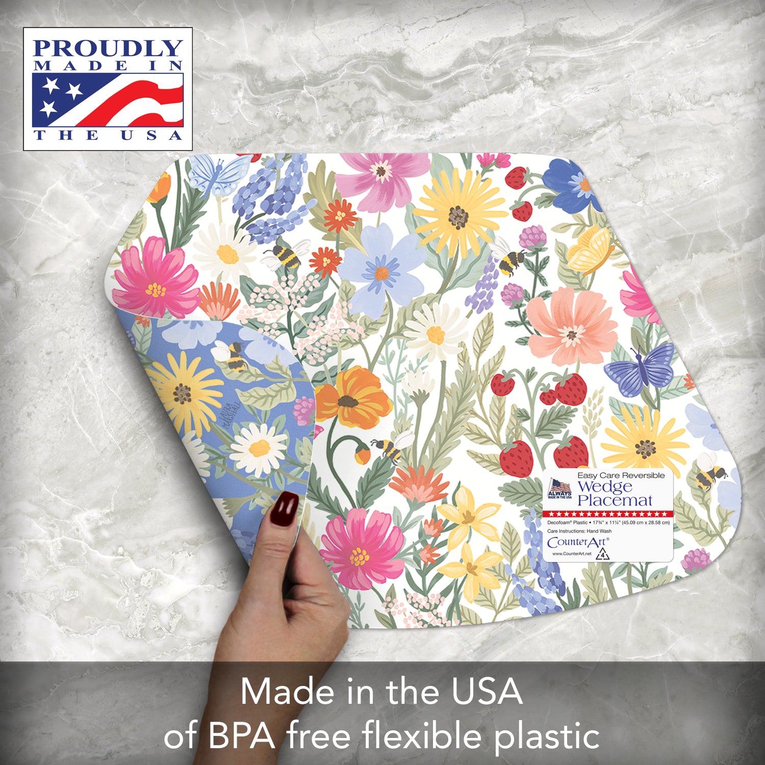CounterArt Meadow Floral 4 Pack Wedge Shaped Reversible Easy Care Flexible Placemat Made in the USA 17.75" x 11.25"