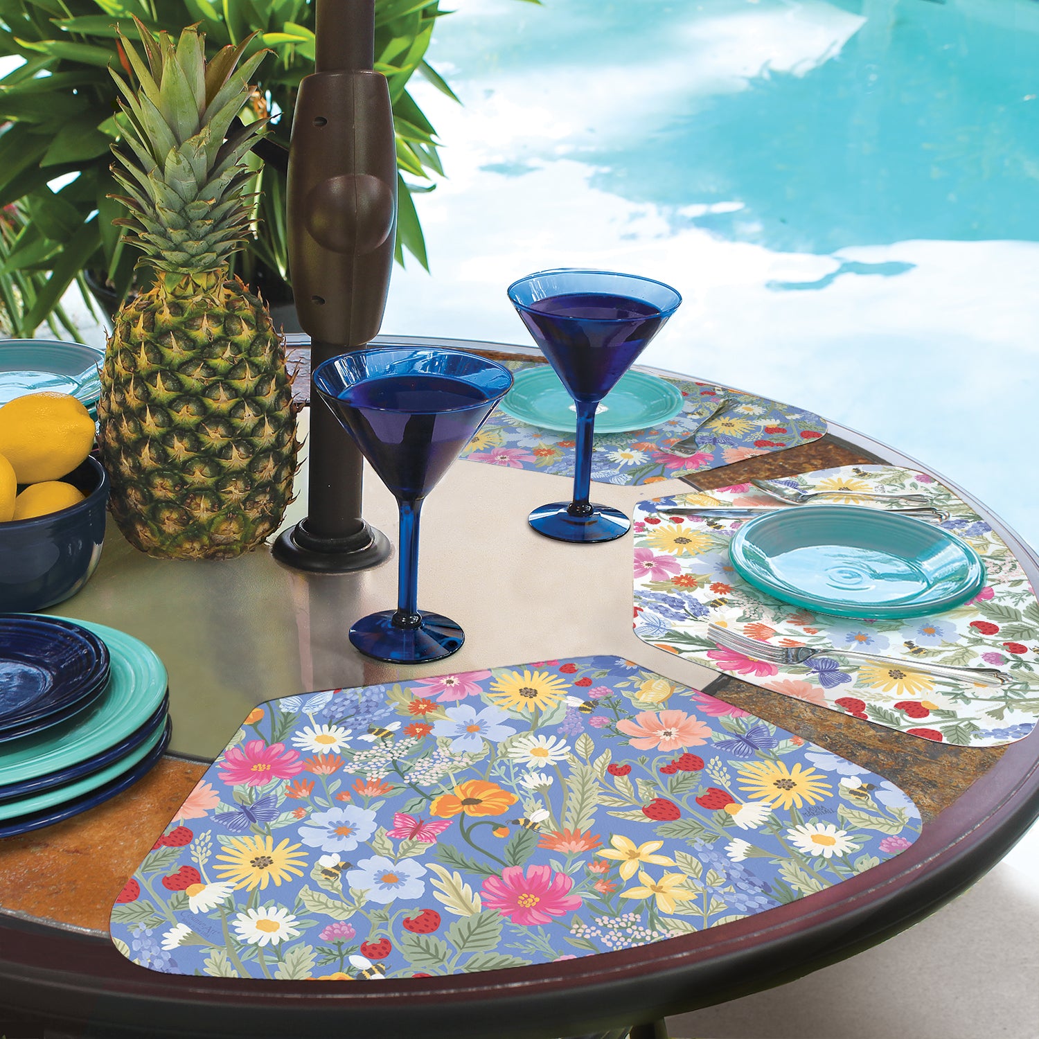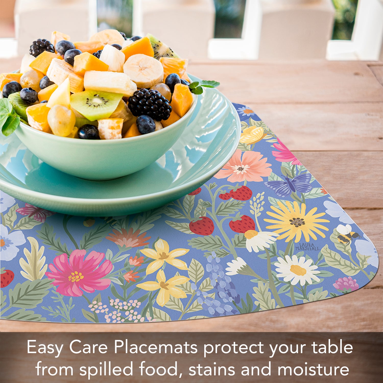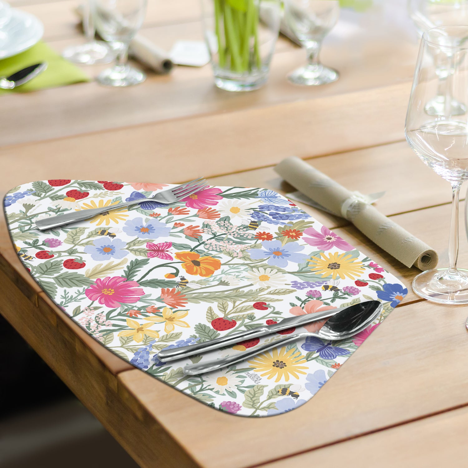 CounterArt Meadow Floral 4 Pack Wedge Shaped Reversible Easy Care Flexible Placemat Made in the USA 17.75" x 11.25"