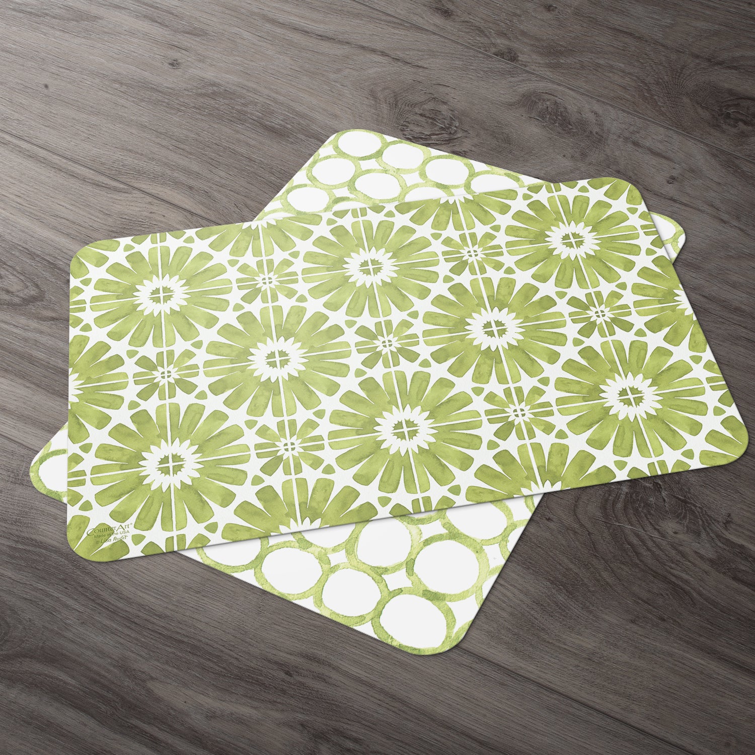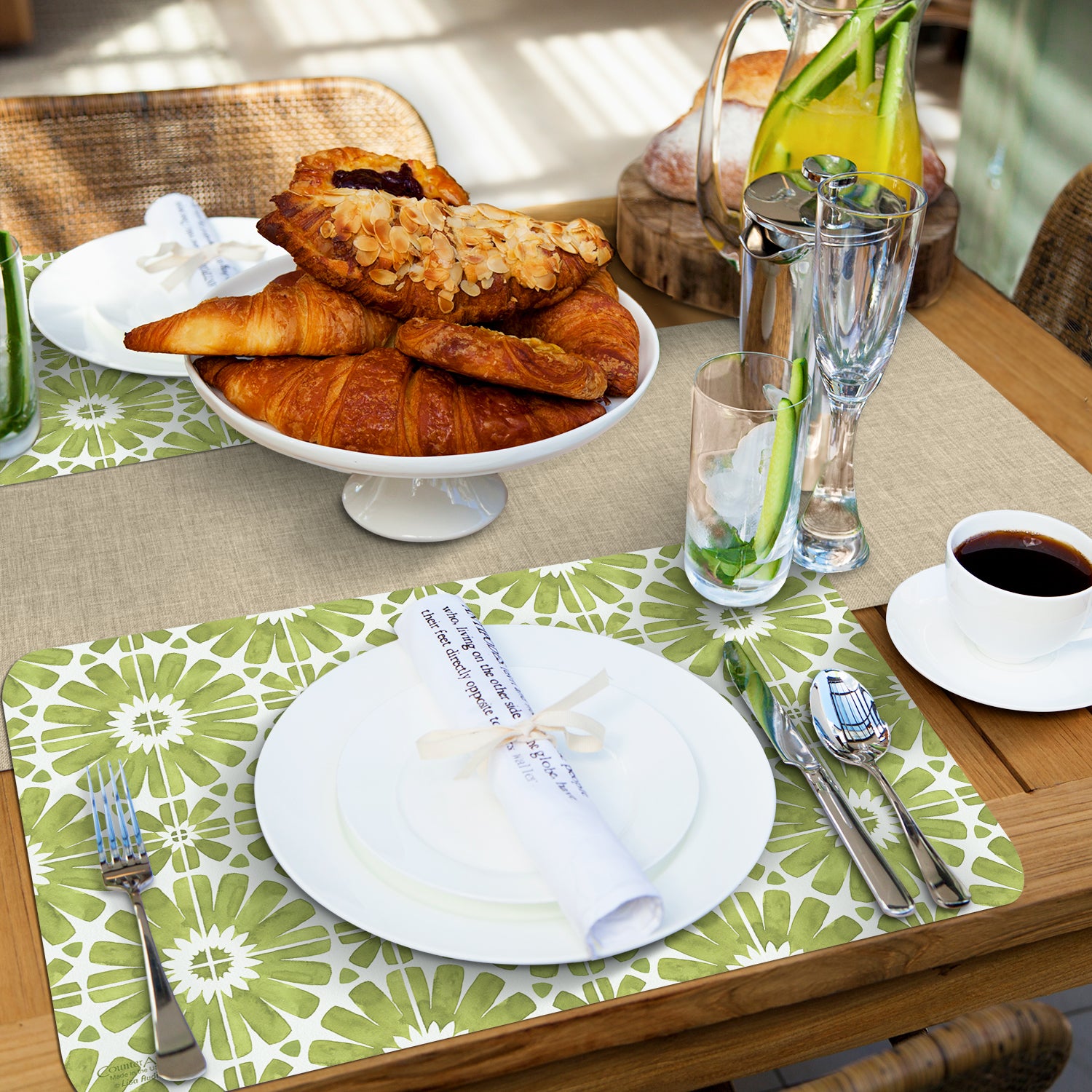 - Set of 4 CounterArt reversible placemats featuring two beautiful coordinating designs, one on each side