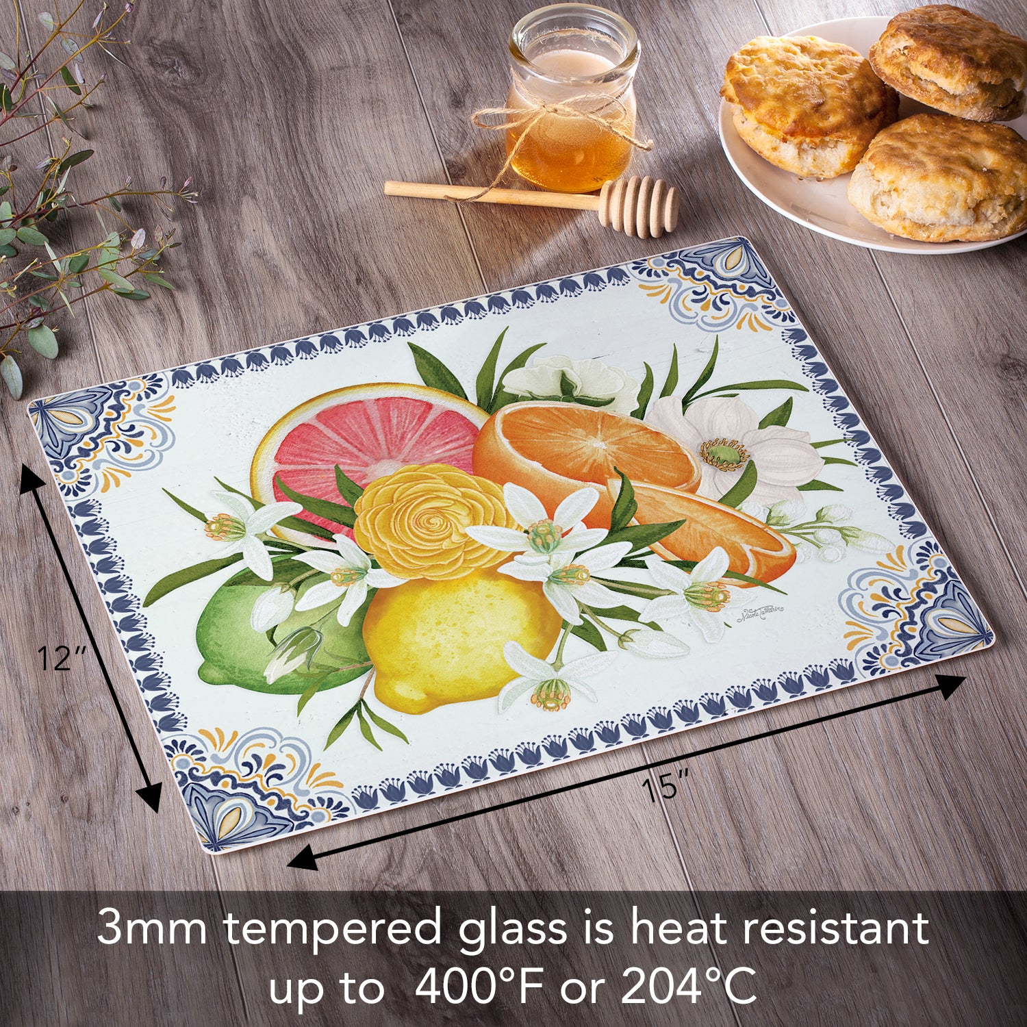 CounterArt Mediterranean Citrus 3mm Tempered Glass Cutting Boards Manufactured in the USA