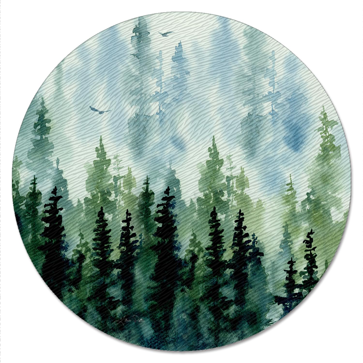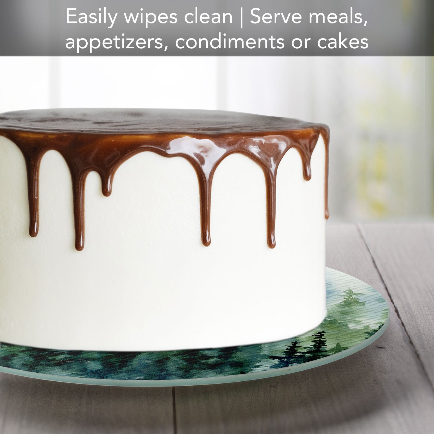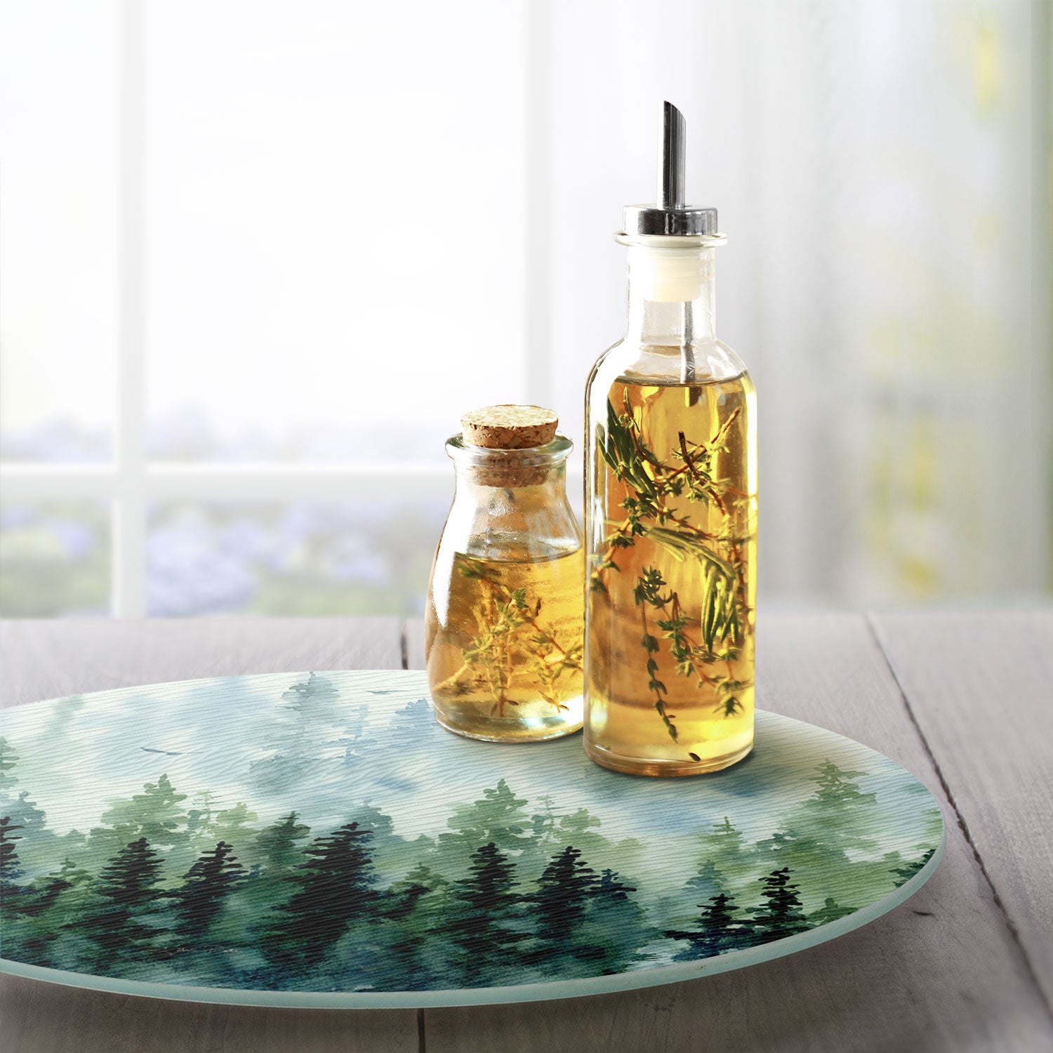 CounterArt Misty Tree Line View 4mm Tempered Glass Lazy Susan Turntable 13" Diameter