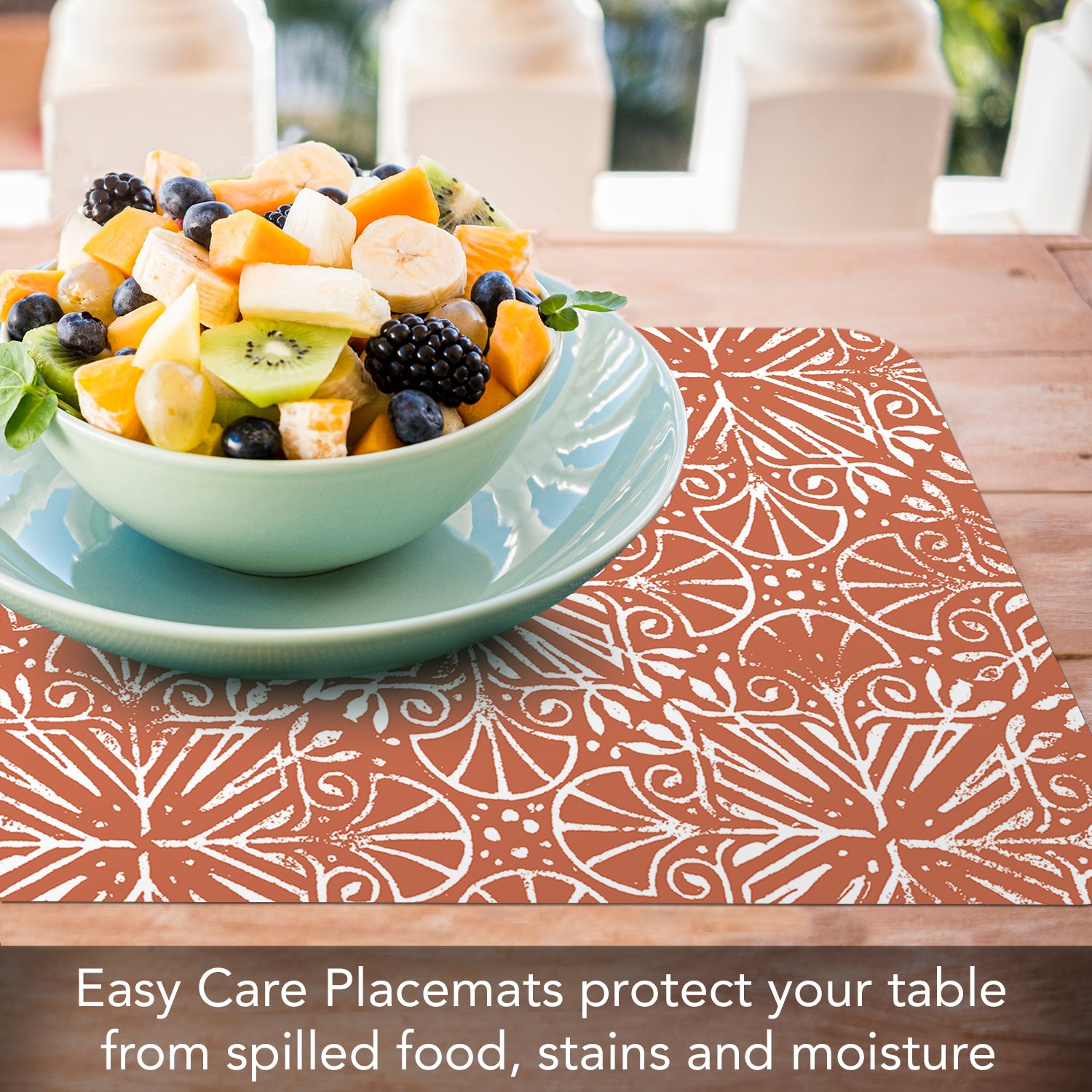 PROTECTS SURFACES-Placemats protect your table or countertop from spilled food, scratches, or stains. Placemat material prevents liquids from soaking through to your surfaces which may cause water rings or damage.