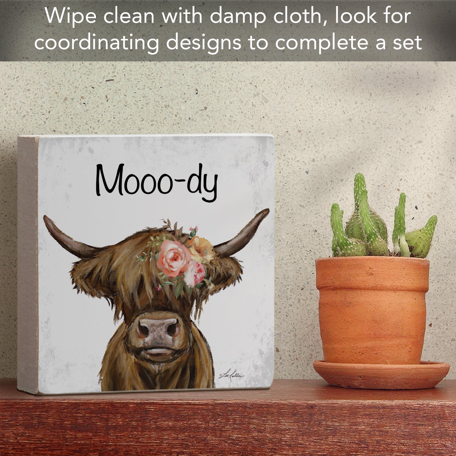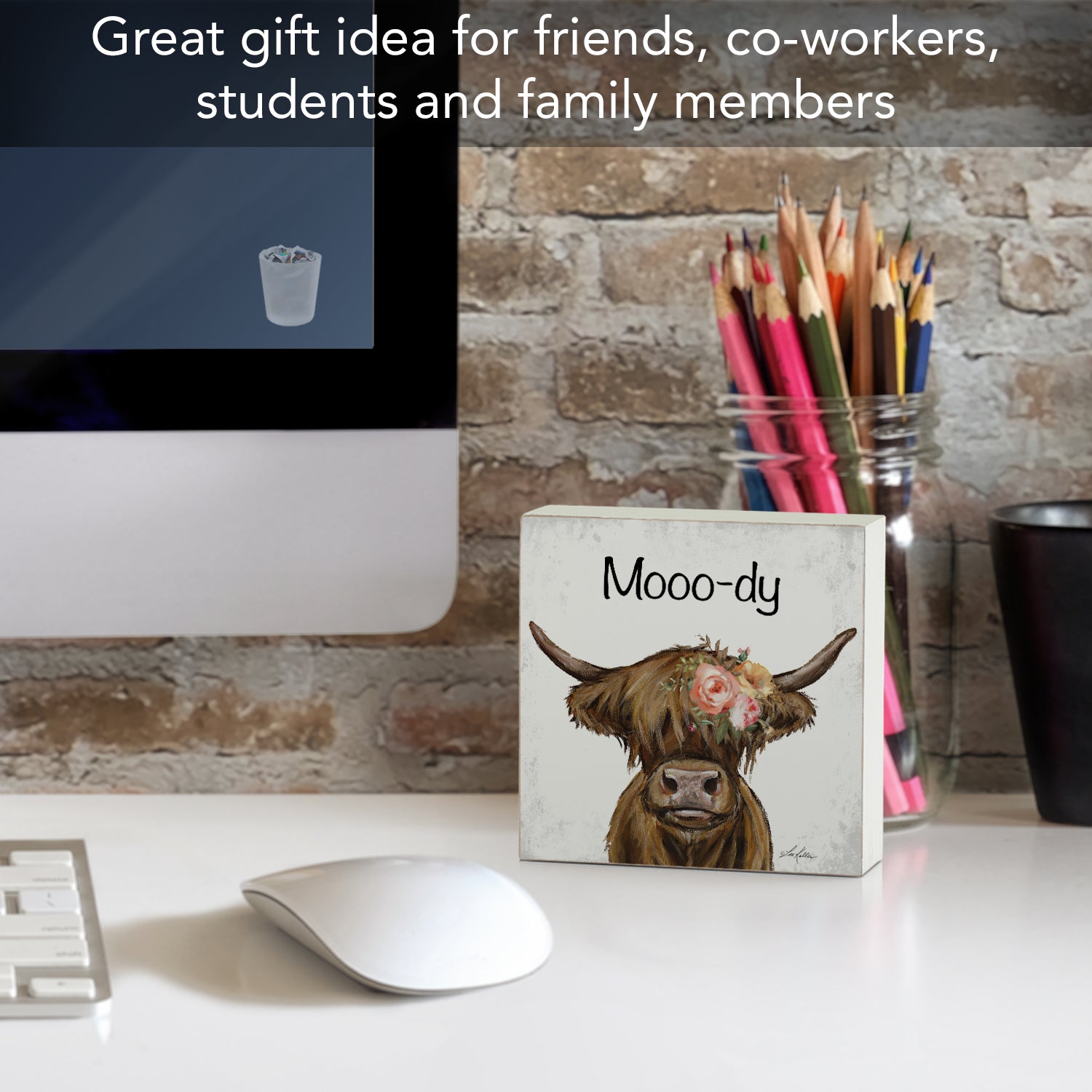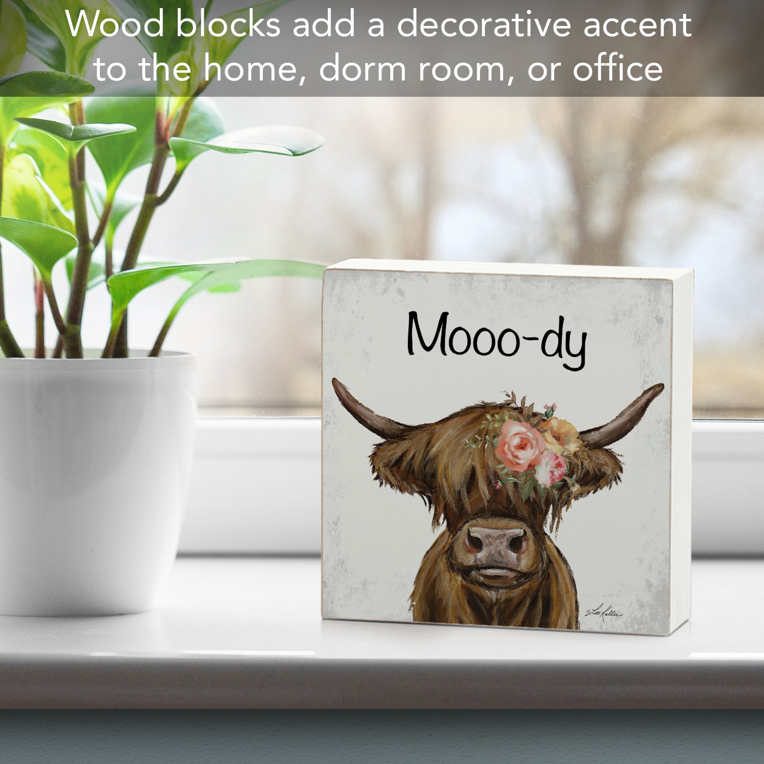 Moody Freestanding Solid Wood Block Sign Made in the USA 3.75” Square