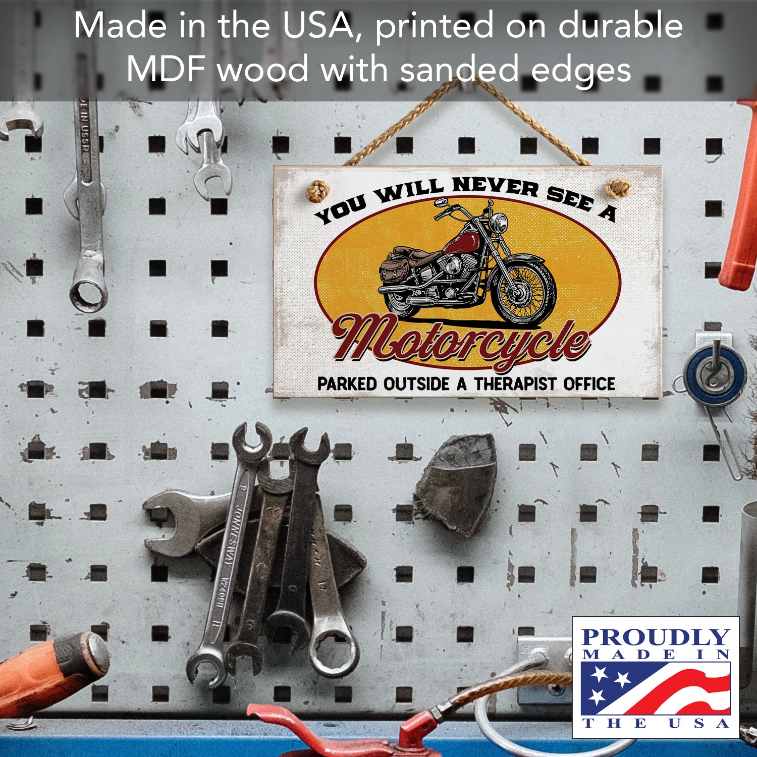 Never See A Motorcycle Decorative Hanging Wood Wall Sign 9.5” x 5.75” Made in the USA