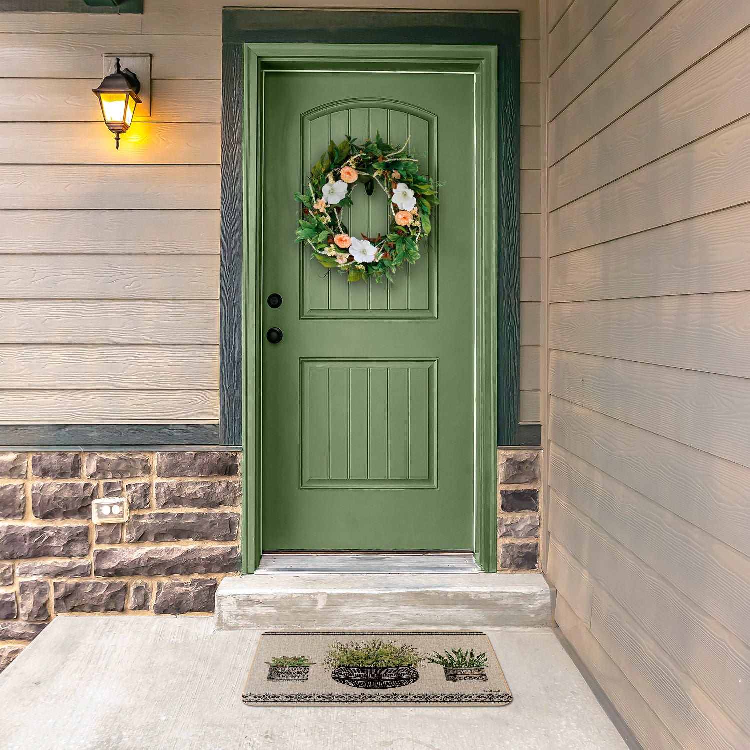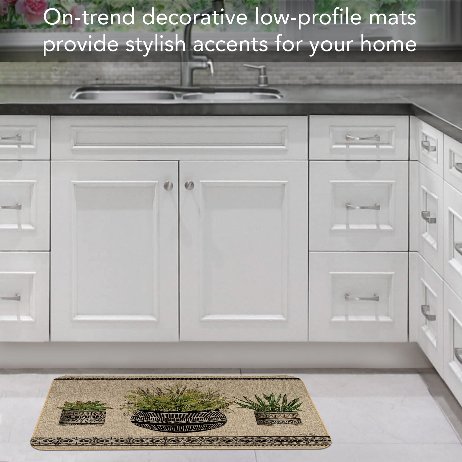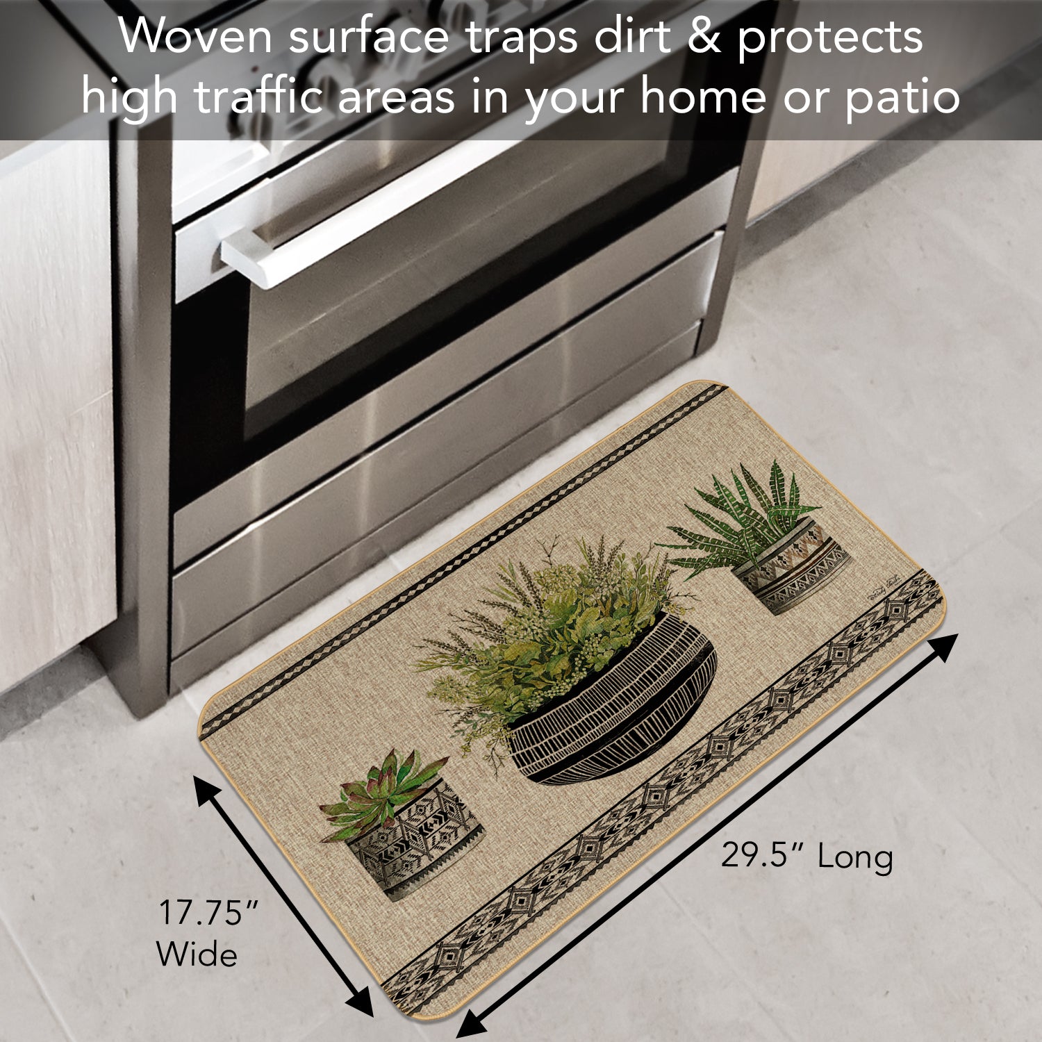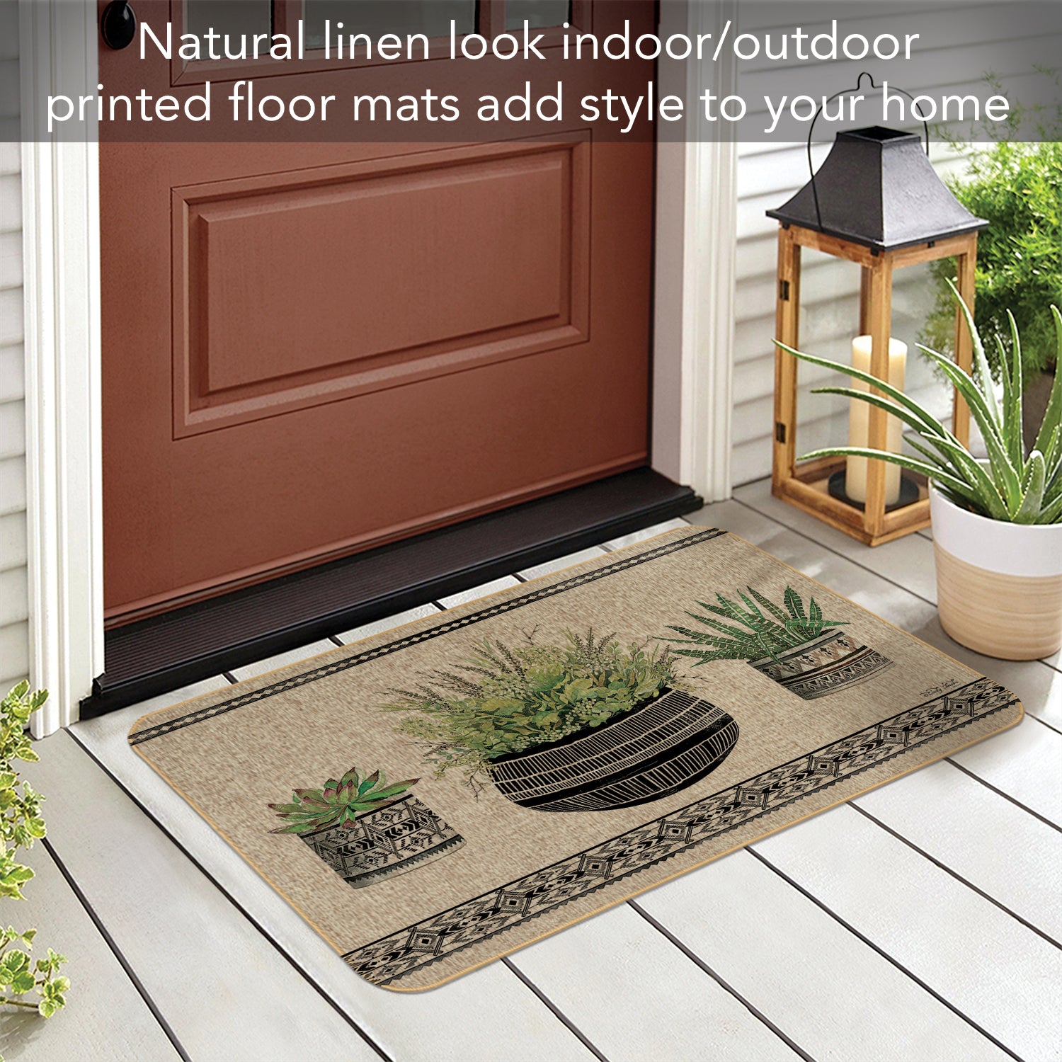 INDOOR/OUTDOOR-Natural Linen Look decorative floor mat adds style to entryways, porch, patio, kitchen, and other rooms in your home. Floor Mat protects floors in high traffic areas.