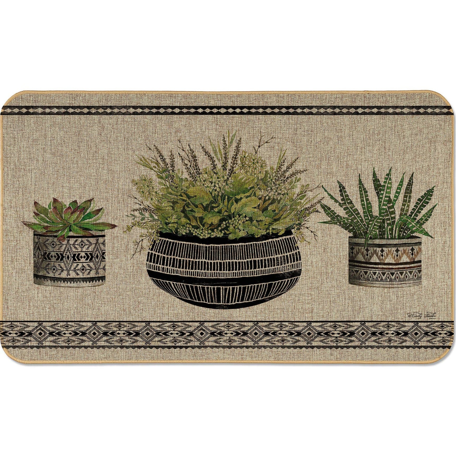 Mud Cloth Pots Decorative Indoor/Outdoor Natural Linen Look Floor Mat 29.5” x 17.75”