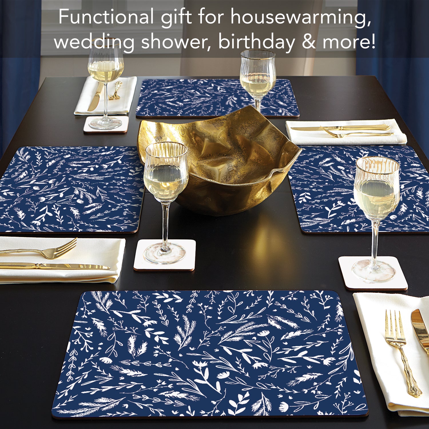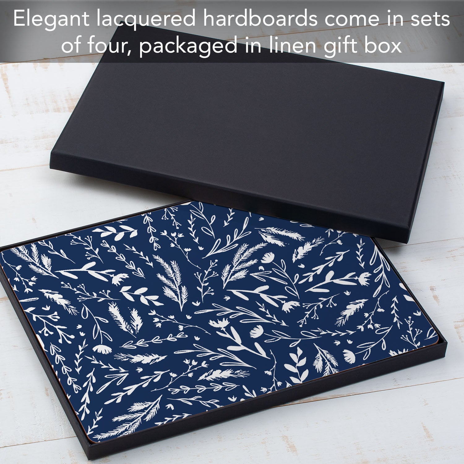 Navy Meadow Sketch Premium Decorative Hardboard Tabletop Placemats 4 Pack Manufactured in the USA