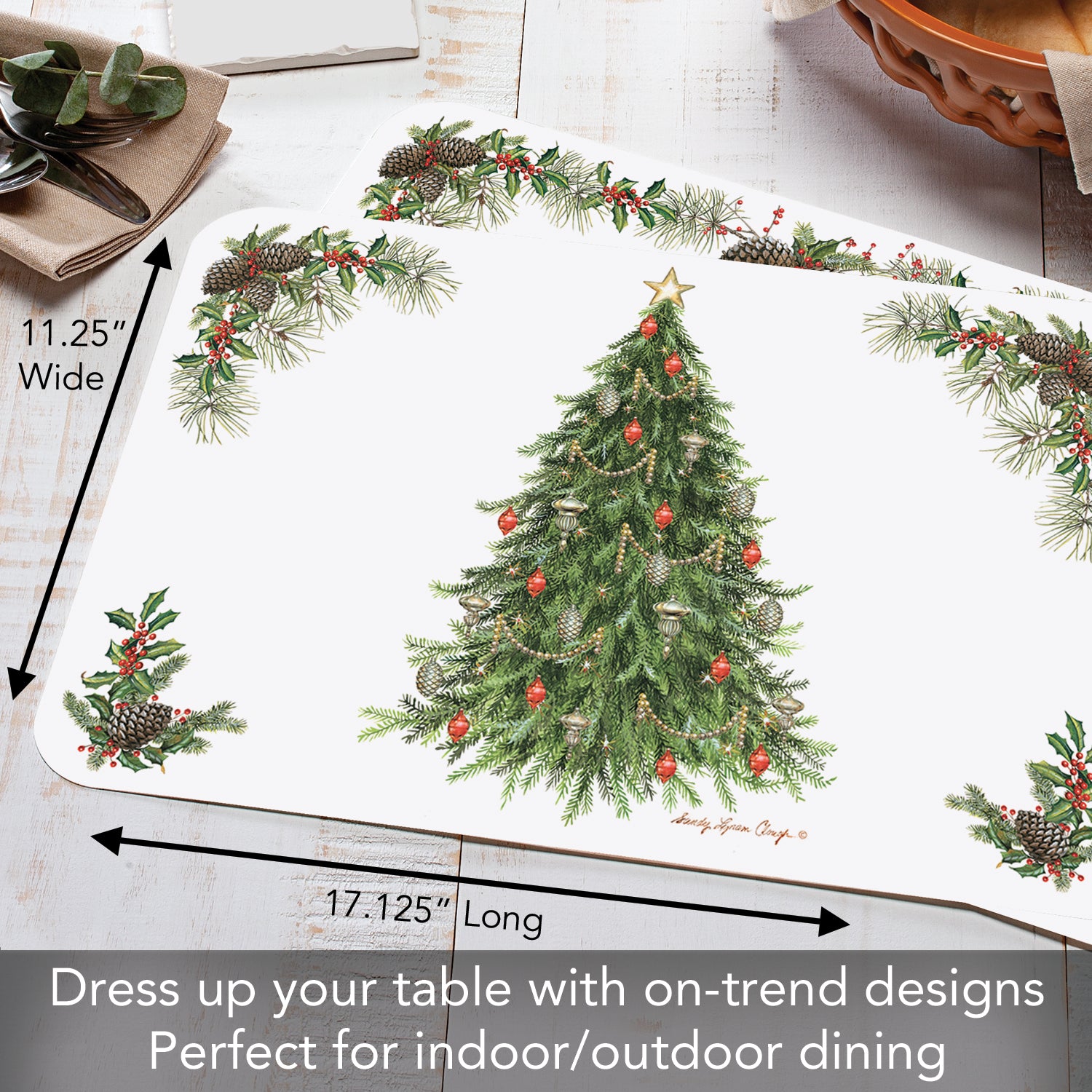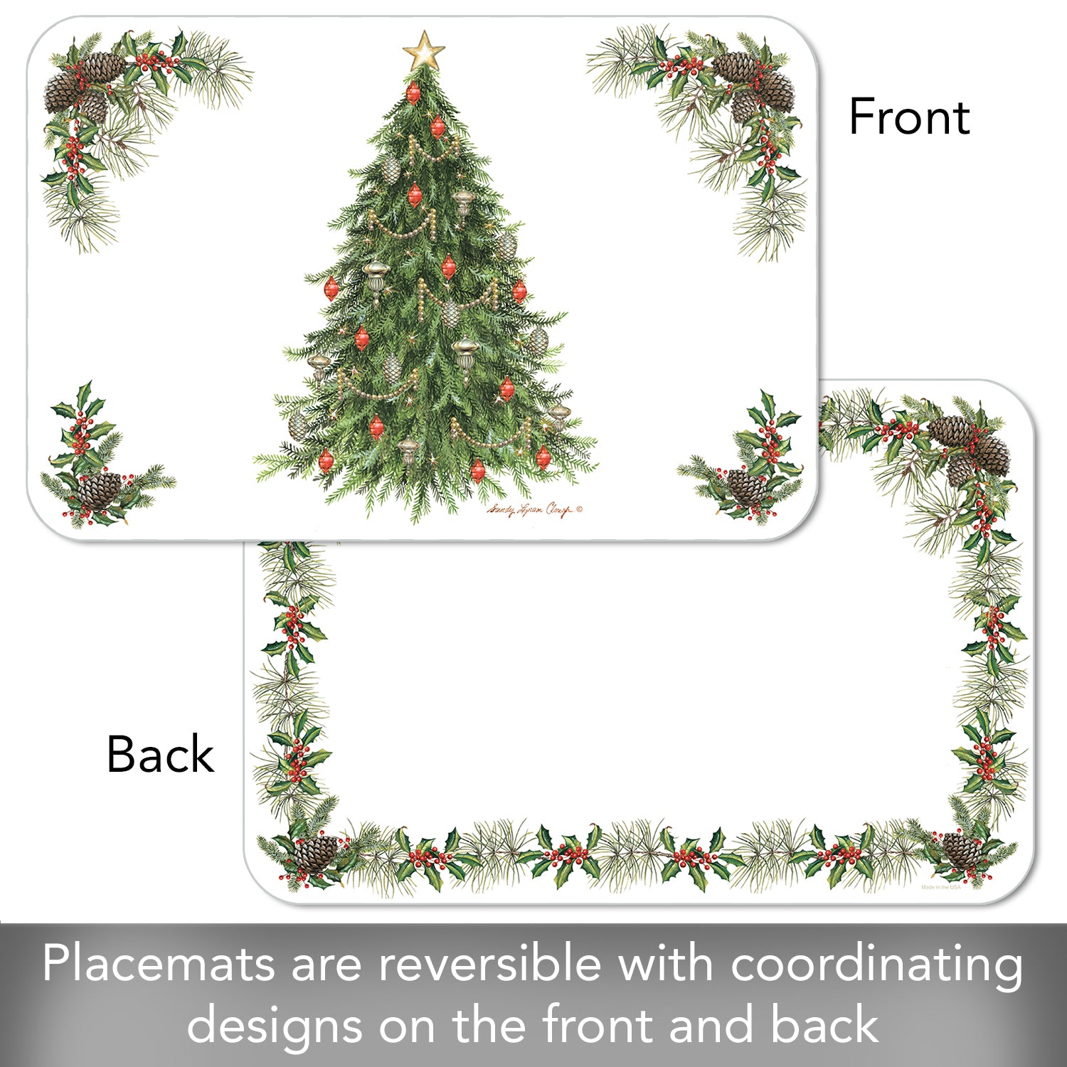 CounterArt O' Christmas Tree 4 Pack Reversible Easy Care Placemats Made in the USA