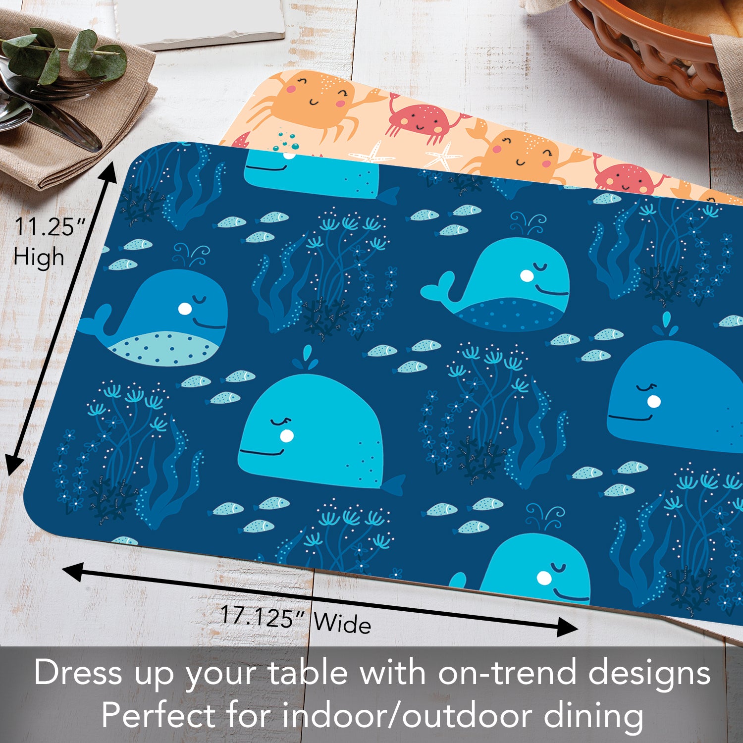 CounterArt Kids Ocean Discovery 4 Pack Reversible Easy Care Flexible Placemats Made in the USA