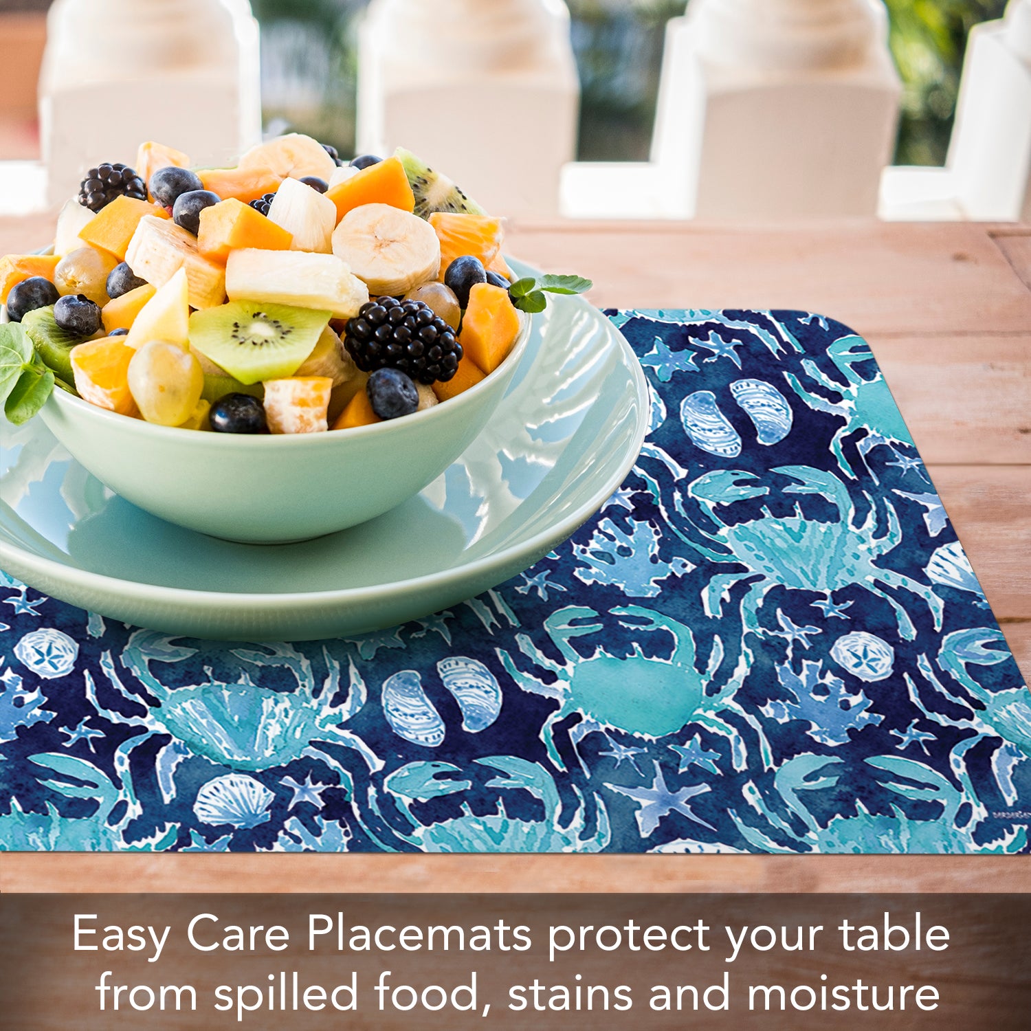 PROTECTS SURFACES-Placemats protect your table or countertop from spilled food, scratches, or stains. Placemat material prevents liquids from soaking through to your surfaces which may cause water rings or damage.