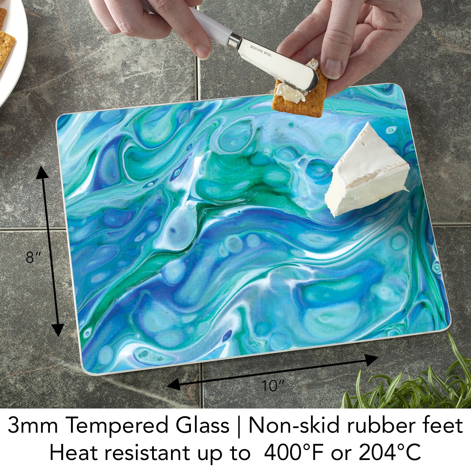 CounterArt Ocean Vibe 3mm Tempered Glass Cutting Board 10” x 8” Manufactured in the USA