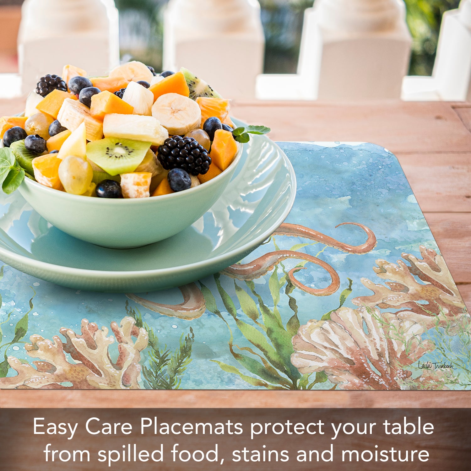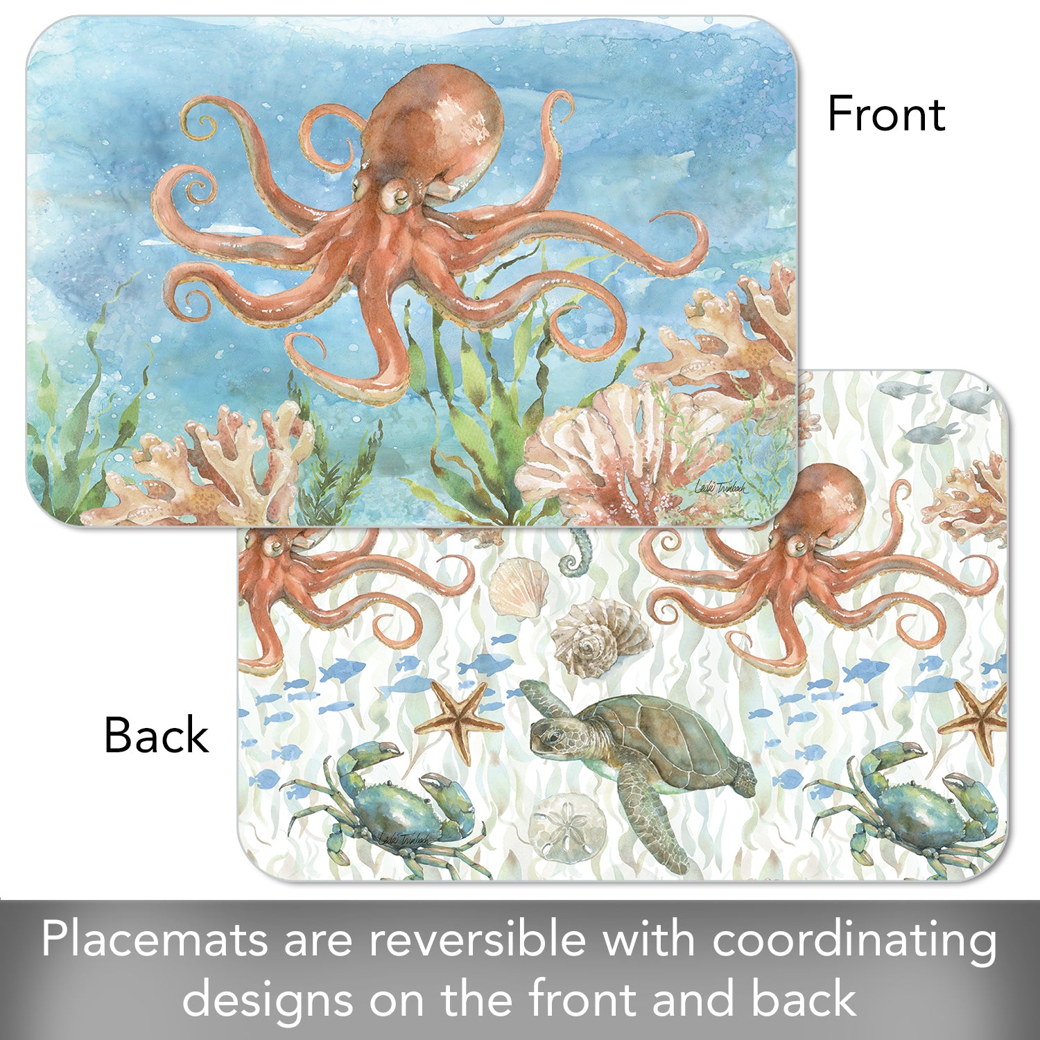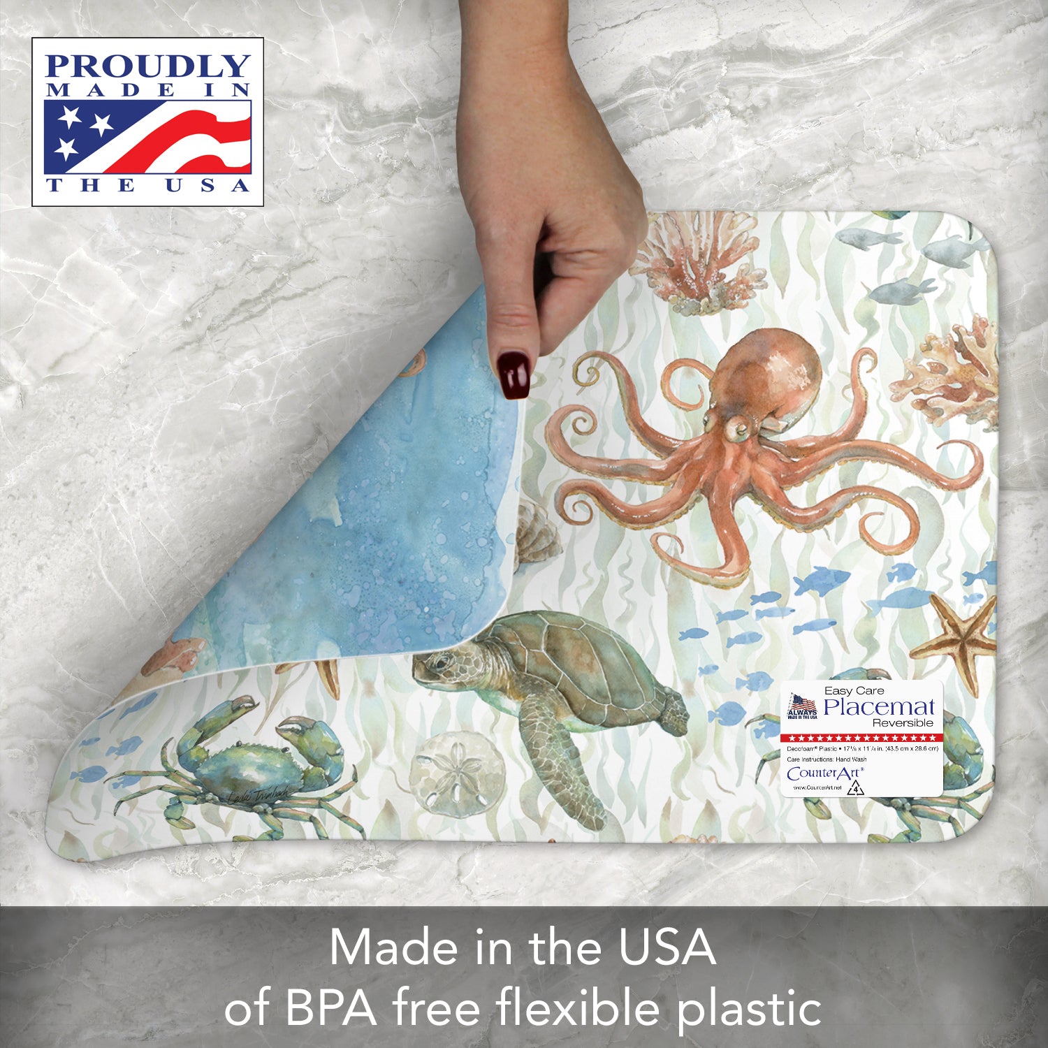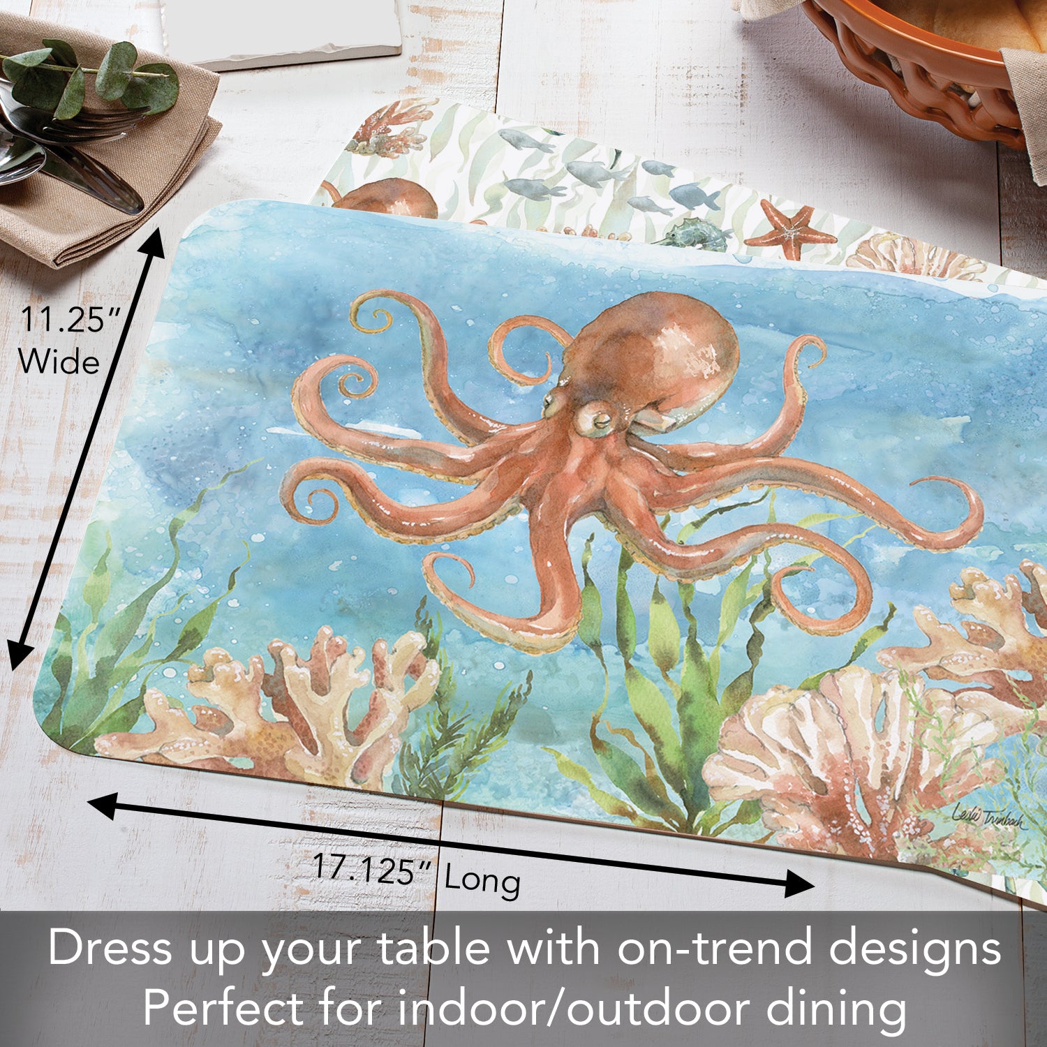 CounterArt Sea Life Octopus 4 Pack Reversible Easy Care Flexible Placemats Made in the USA