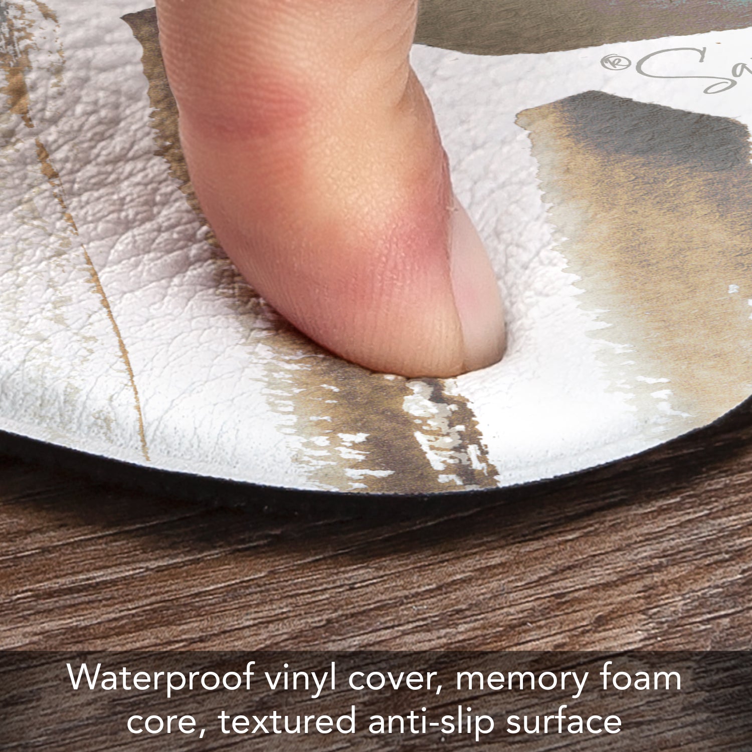 ALL FLOOR TYPES-Vinyl textured backing allows the Floor Mat to be placed on any type of floor, whether it be tile, wood, or carpet. These Comfort Mats are easy to maintain. Wipe with damp cloth or spray off lightly with garden hose and lay flat to dry.