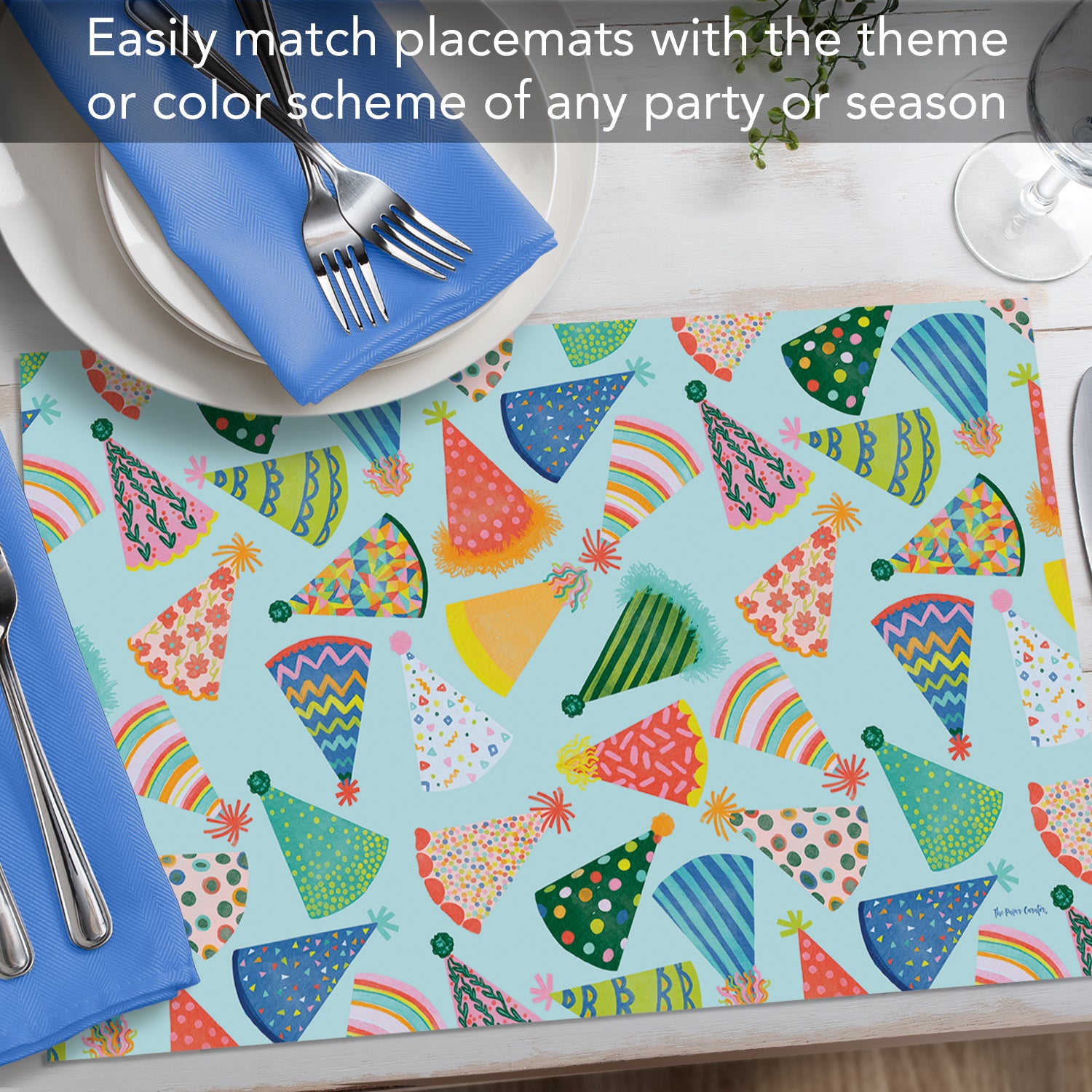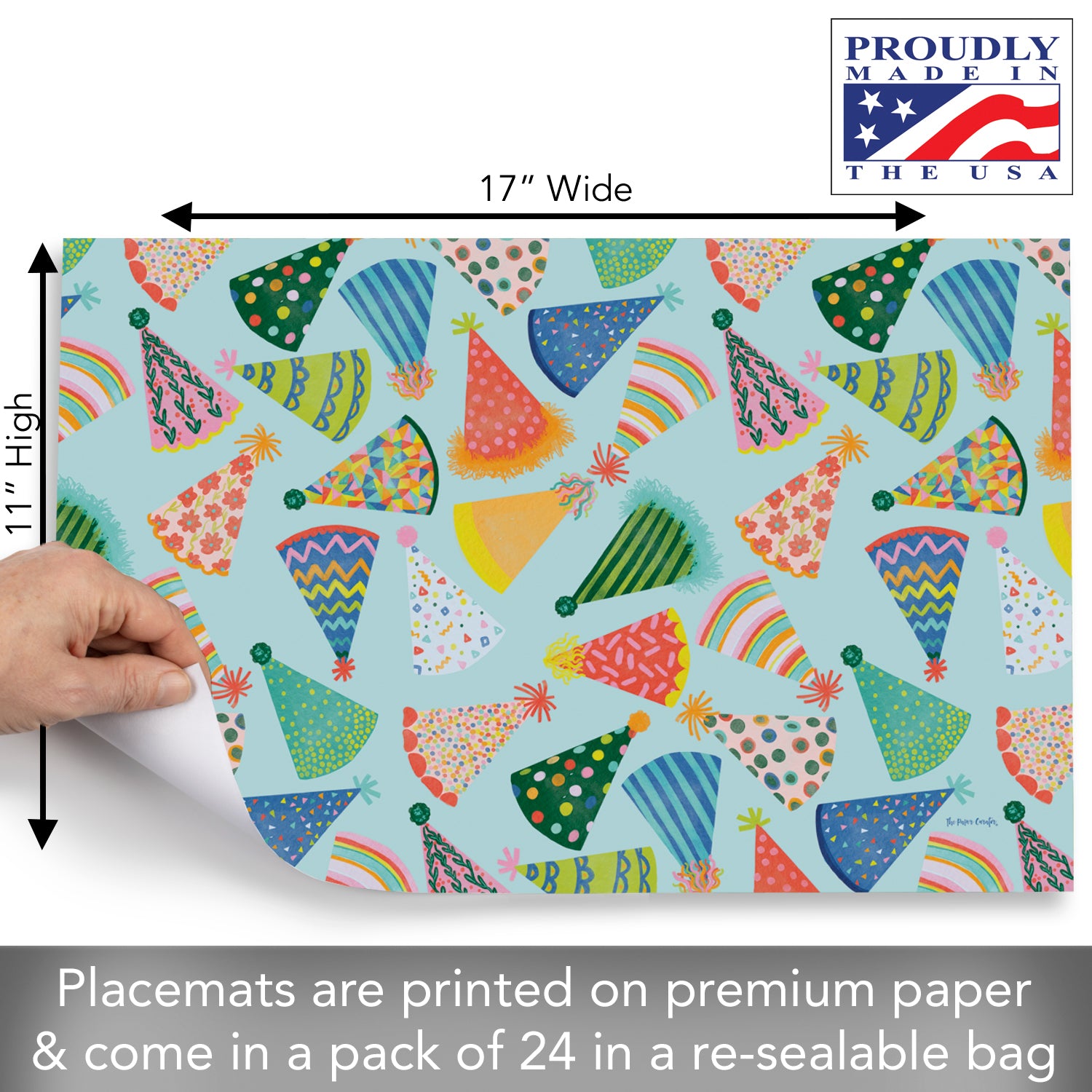Party Hats 24 Premium Paper Placemats in Resealable Storage Bag Made in the USA 17" x 11"