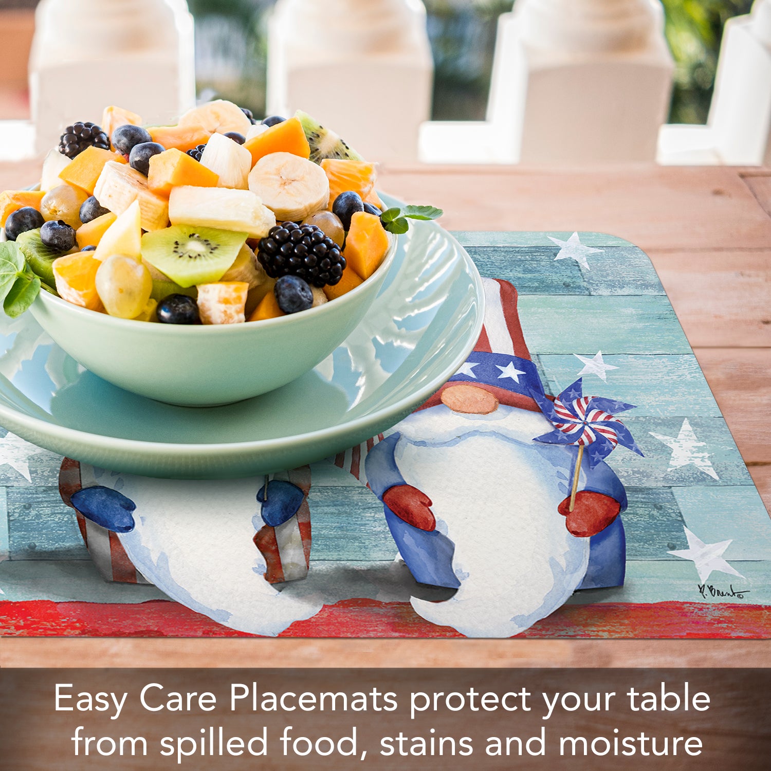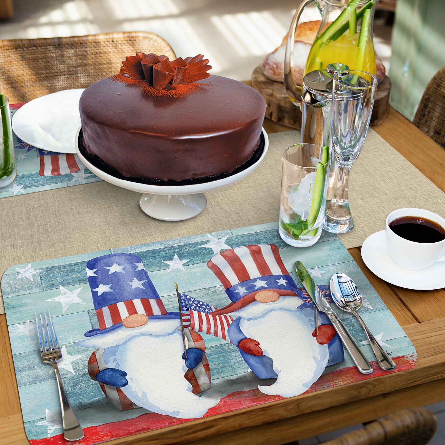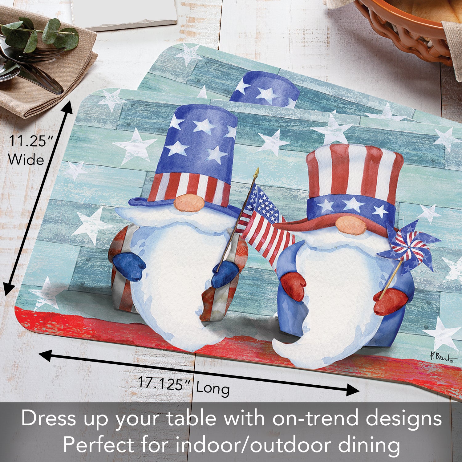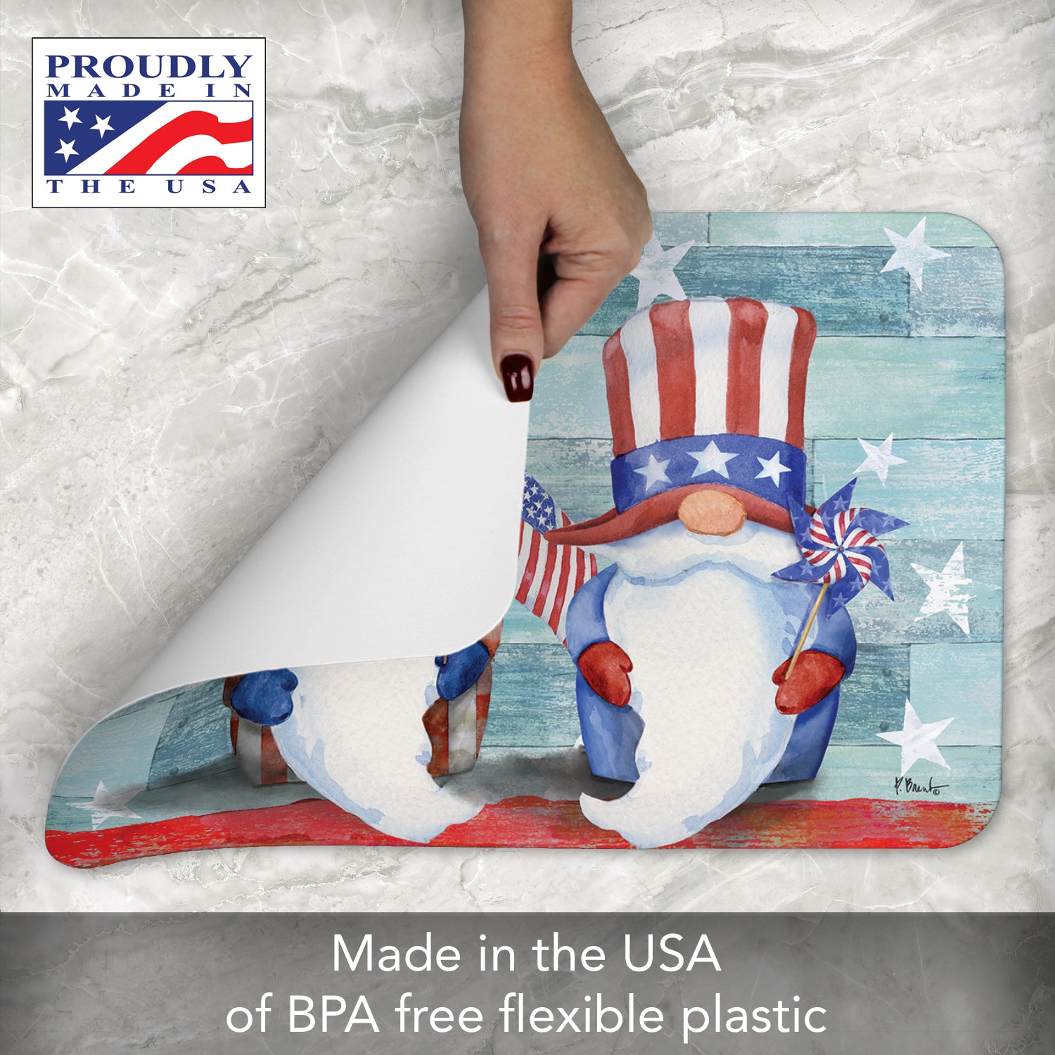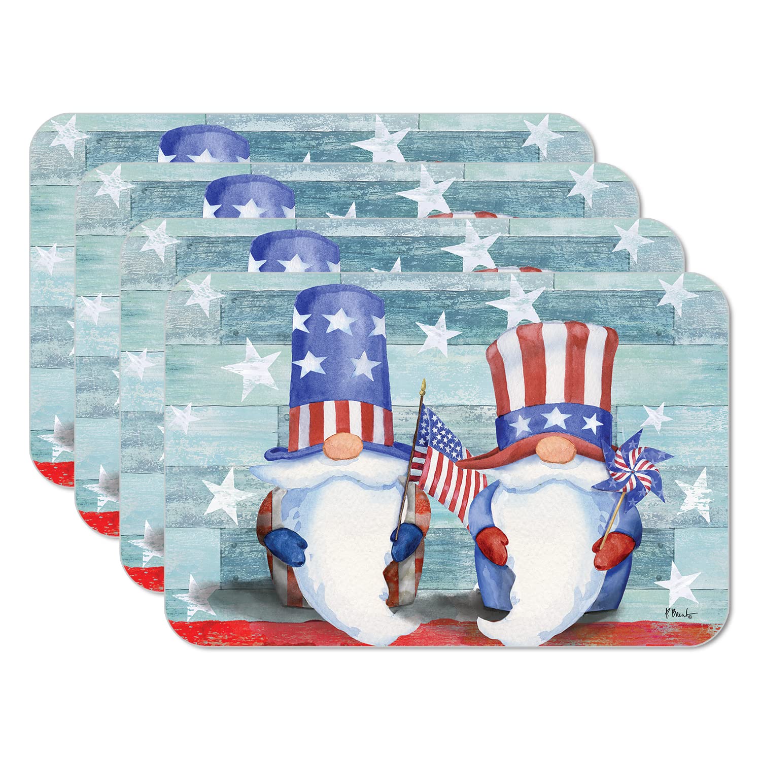CounterArt Patriotic Gnomes 4 Pack Easy Care Flexible Plastic Placemats Made in The USA BPA Free, Easily Wipes Clean