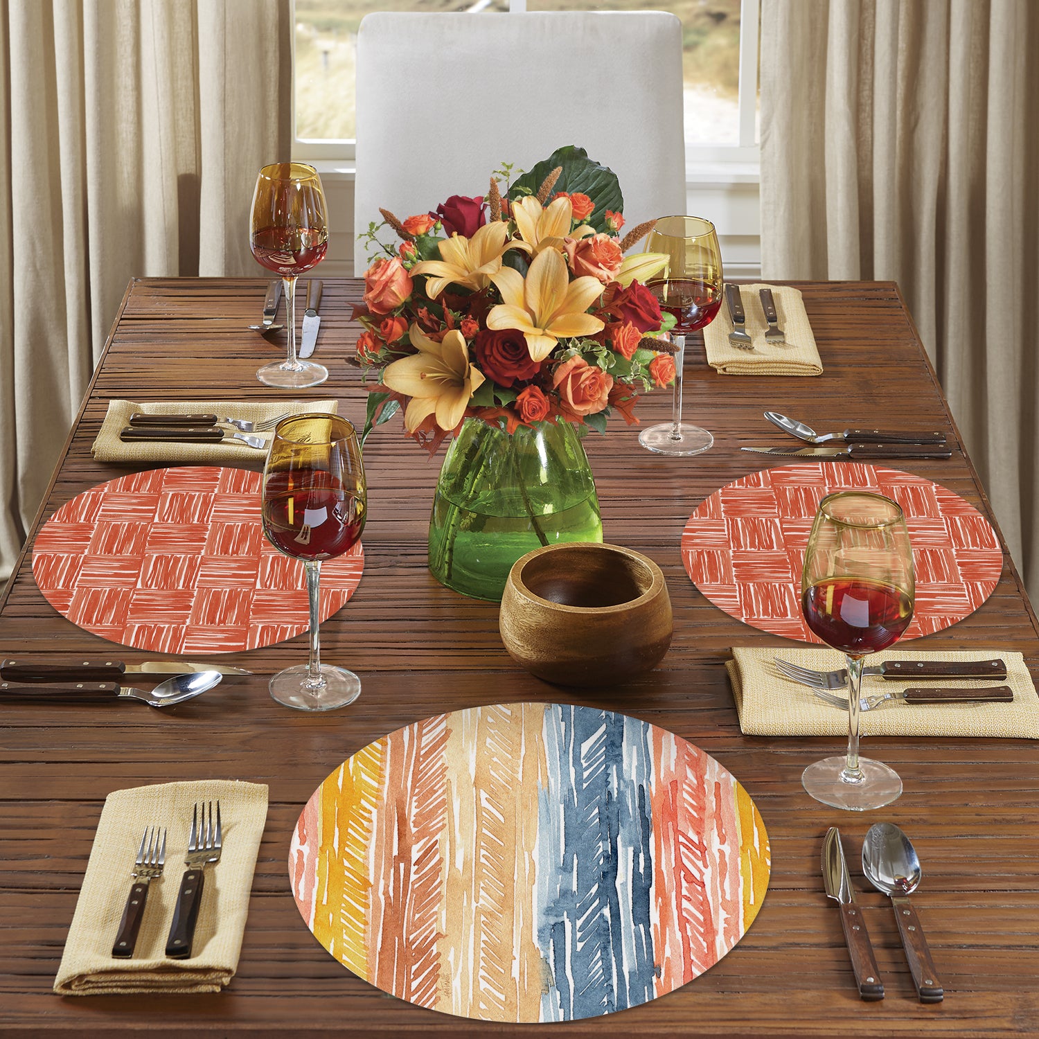 ARTFUL DINING-Beautiful artistic design allows the Placemat to remain displayed even when not in use. Decorative Placemats are an easy way to change the look of your kitchen, dining room, or outdoor eating area.