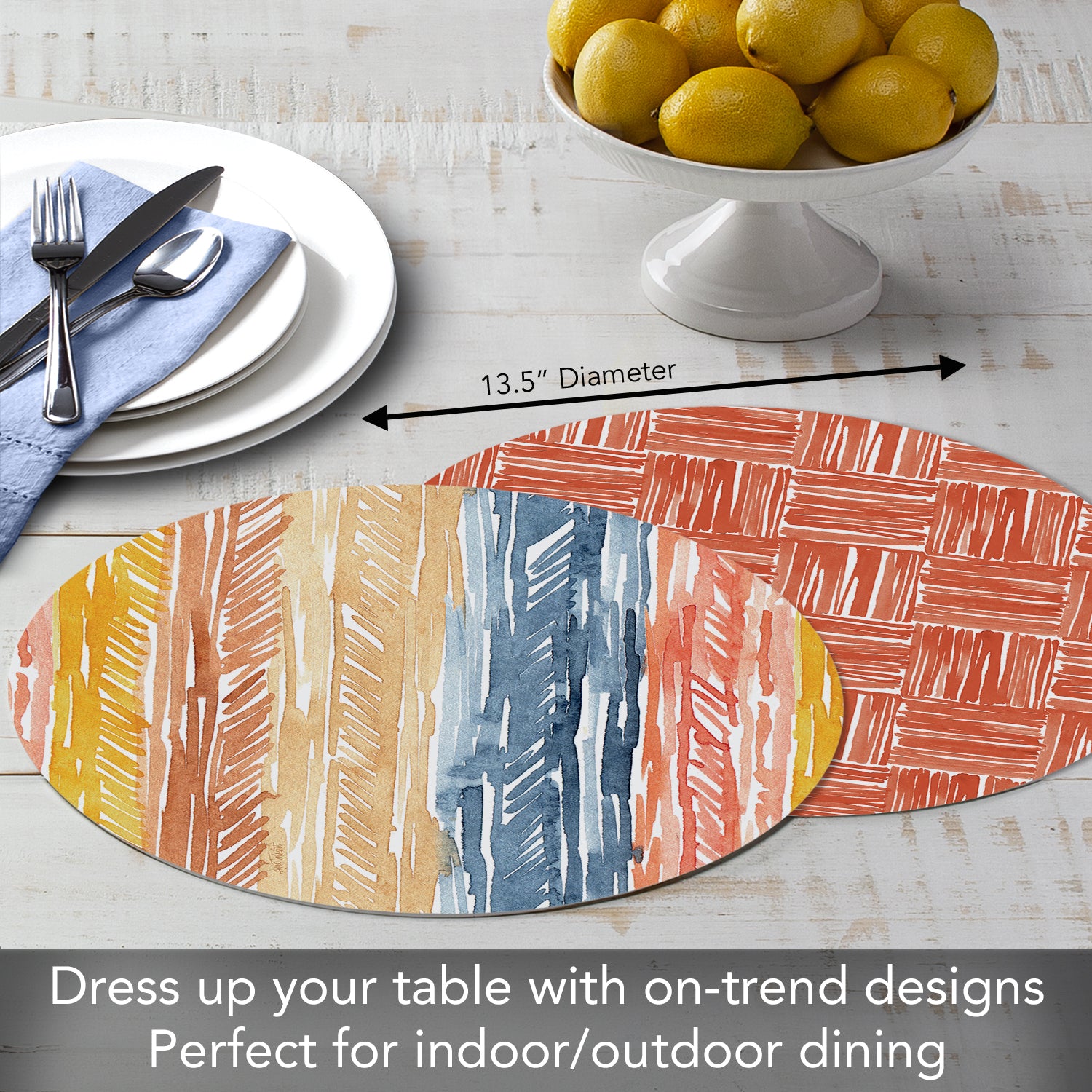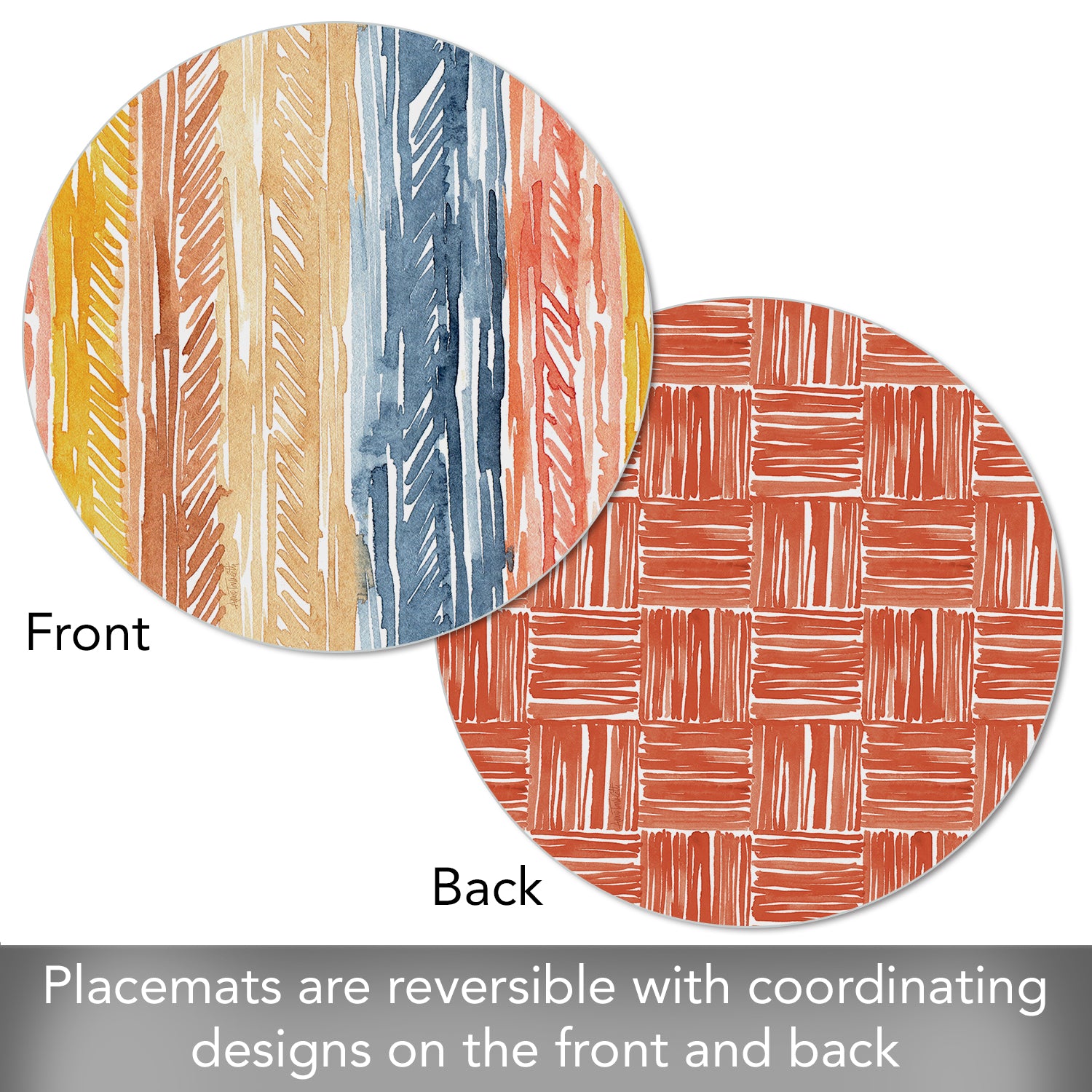 REVERSIBLE-Placemats are reversible, featuring different coordinating designs on both the front and back of each mat. Attractive coordinating designs are great for everyday meals, parties and outdoor entertaining.