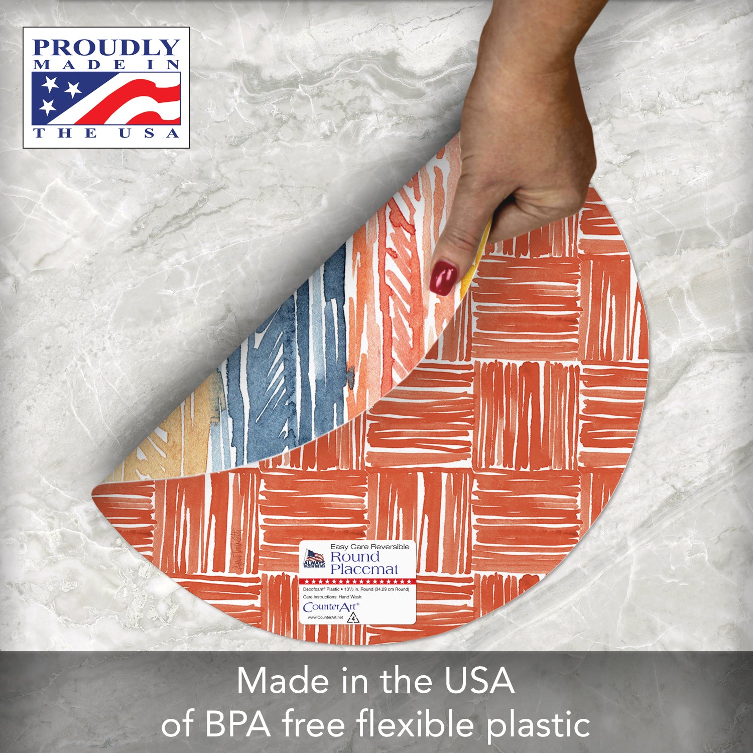 CounterArt Pattern Flair 4 Pack Round Reversible Easy Care Flexible Placemats Made in the USA