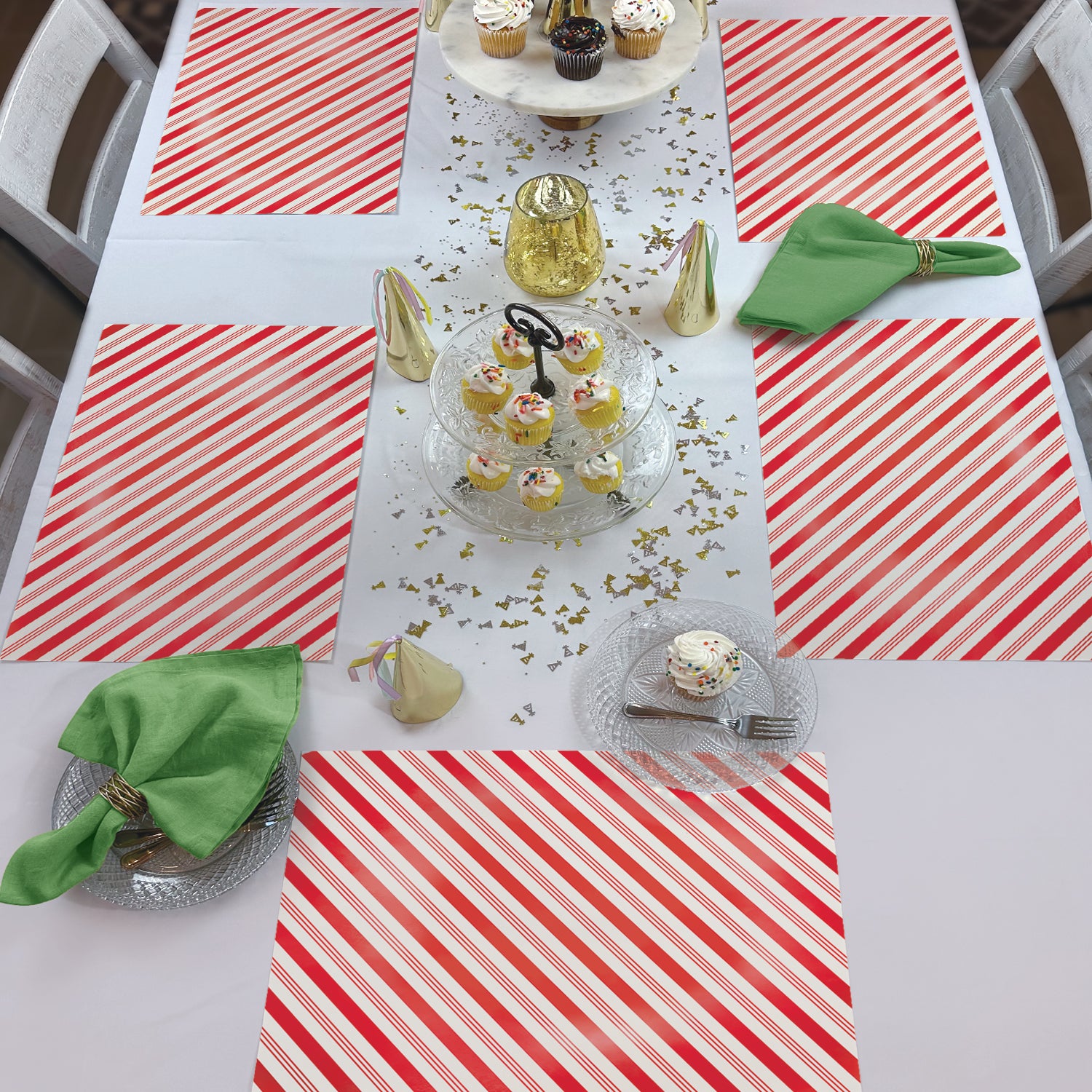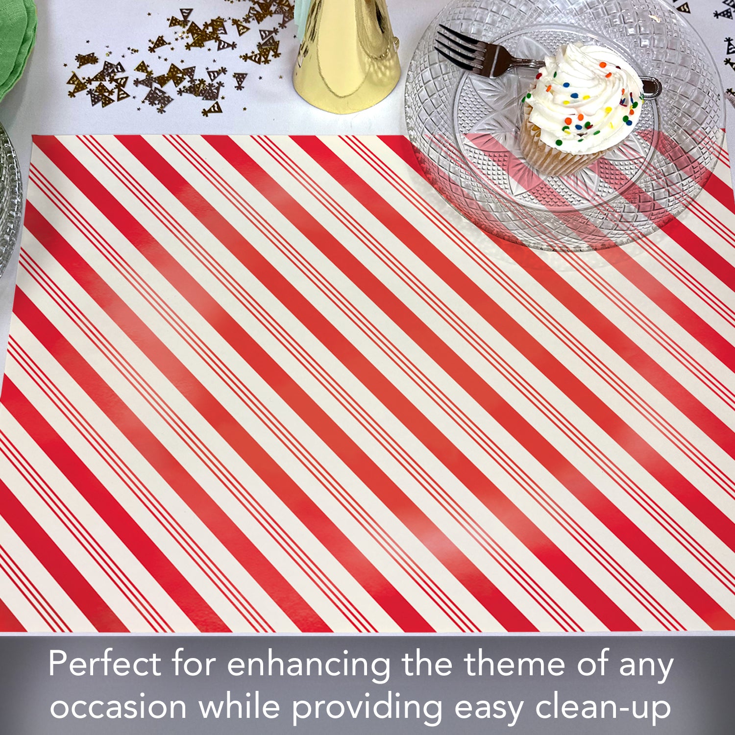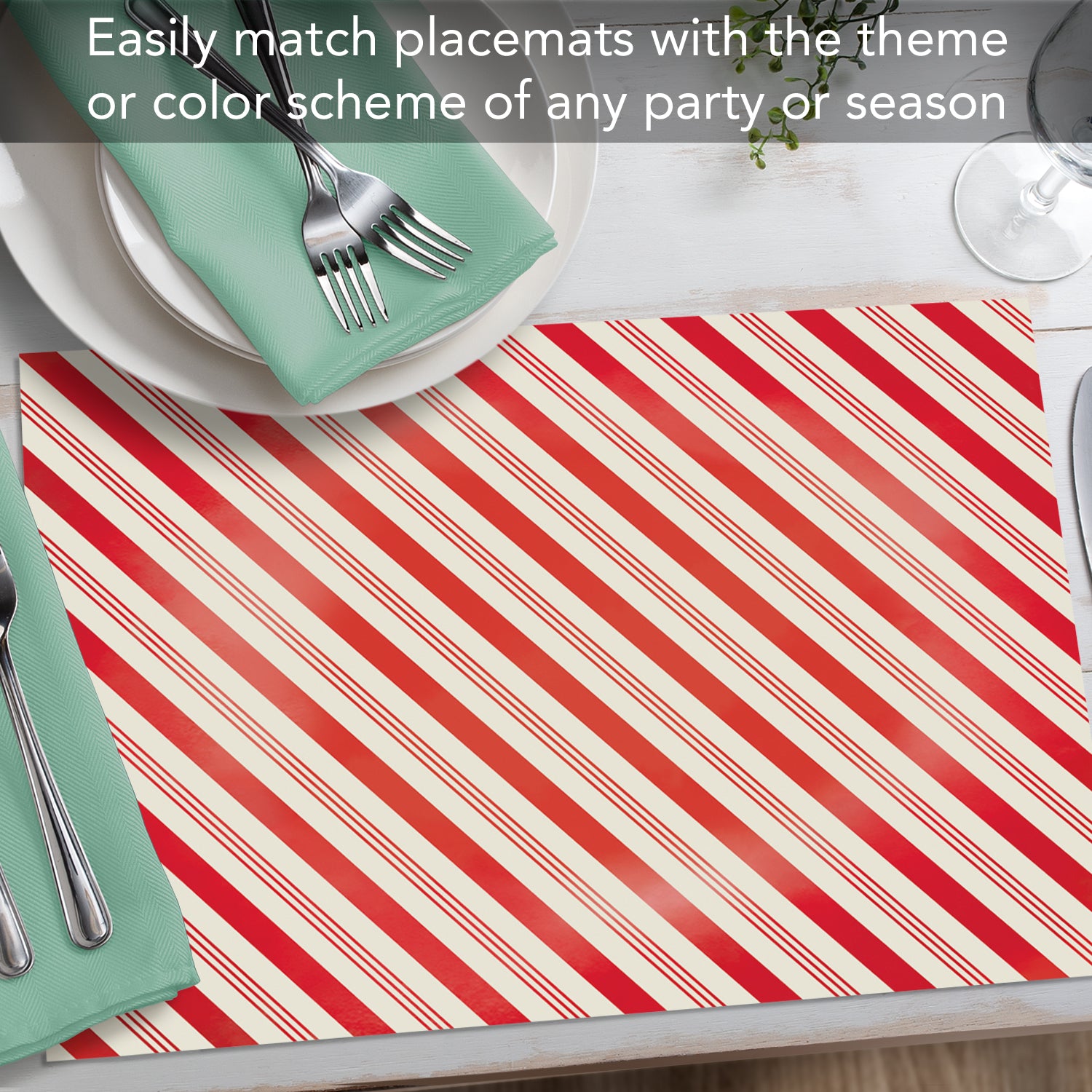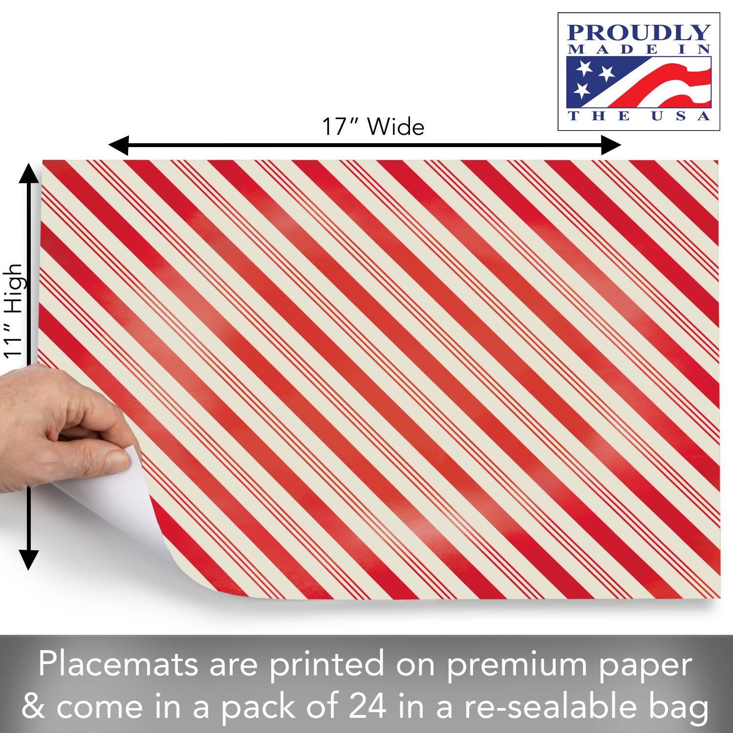 Peppermint Stripes 24 Premium Paper Placemats in Resealable Storage Bag Made in the USA 17" x 11"