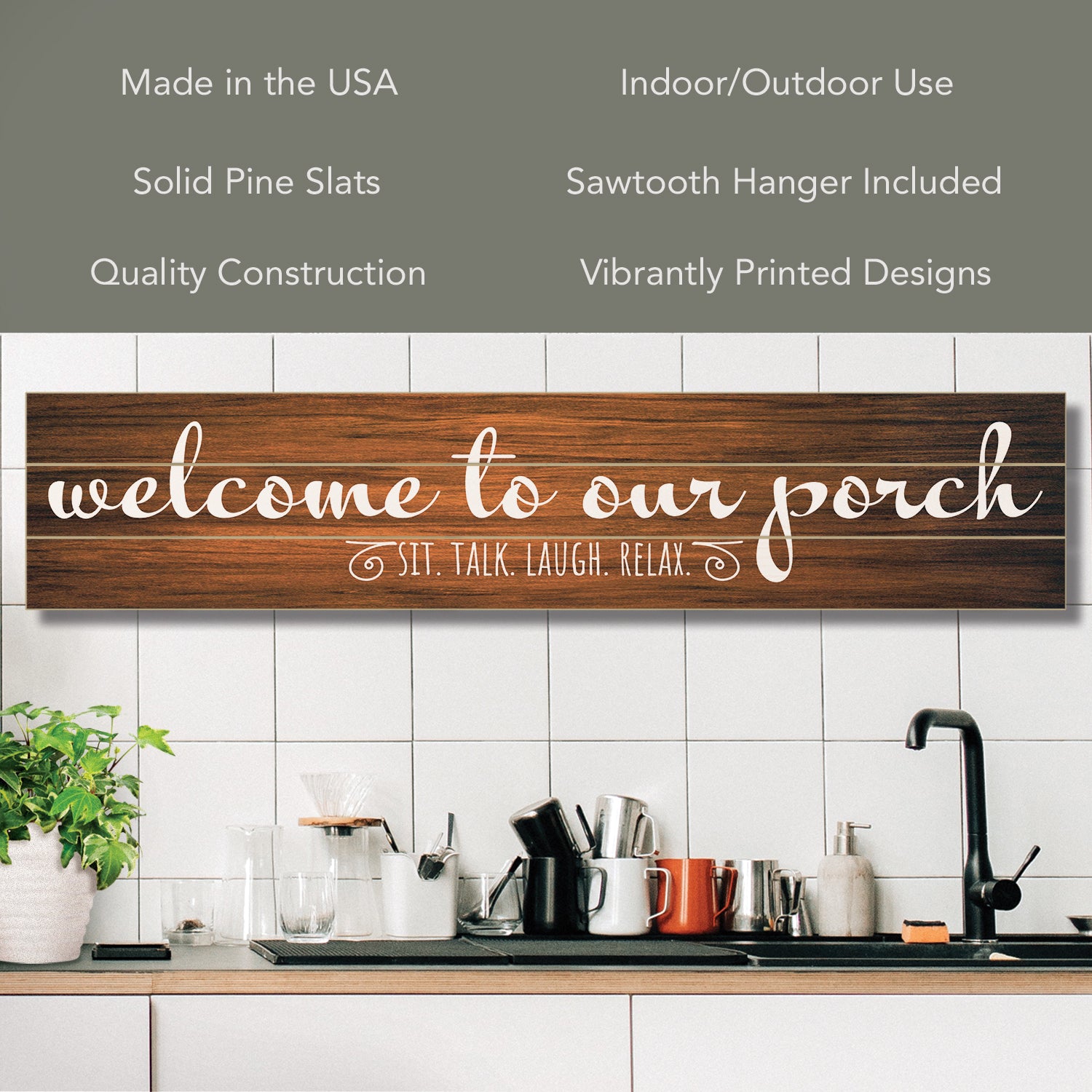 MEASUREMENTS-Sign measures 36" x 7.5" x .38". Includes Wire and sawtooth hangers to easily hang. Indoor and Outdoor use. Hang in your home to add distinction to your space. Or place on your covered porch to welcome friends and family.
