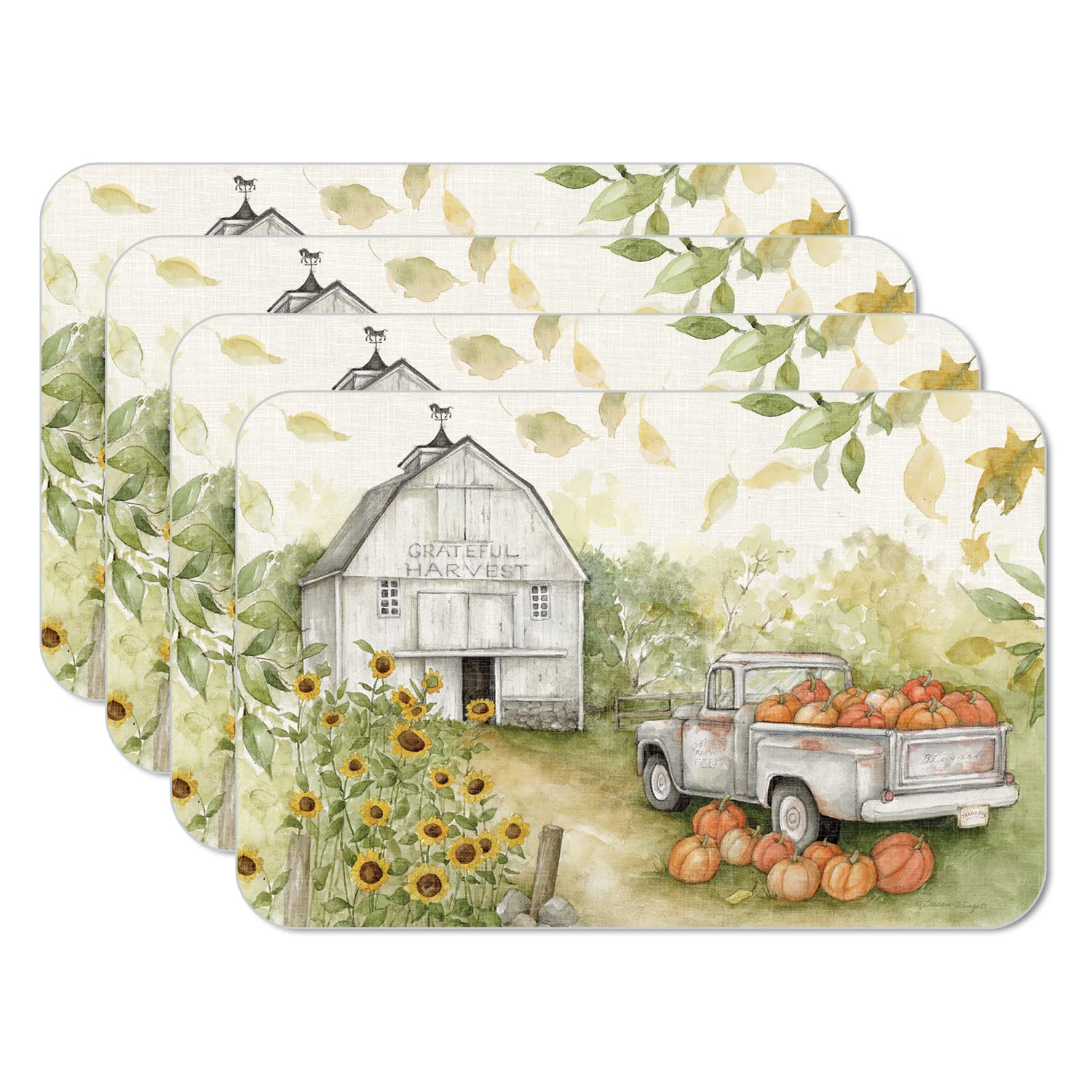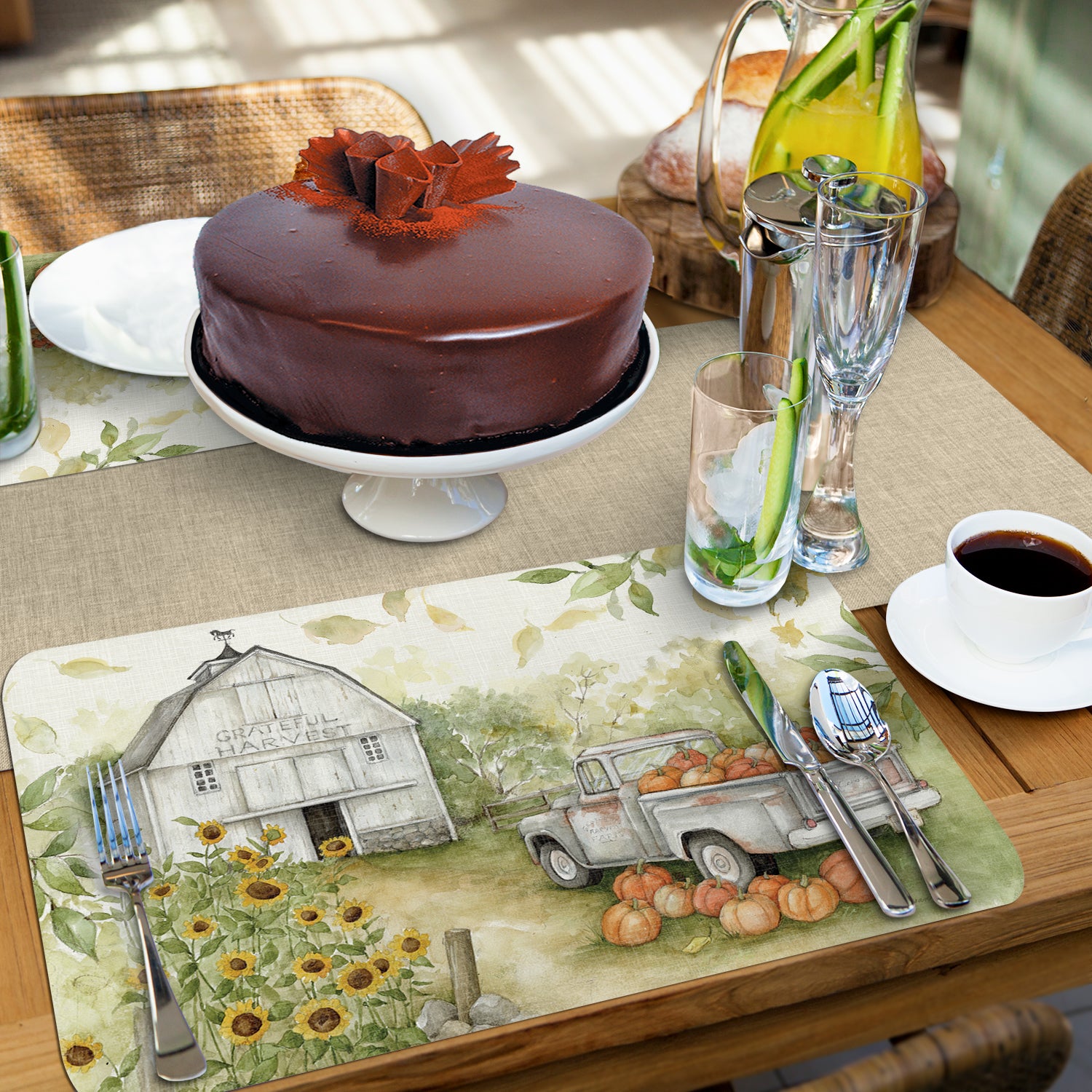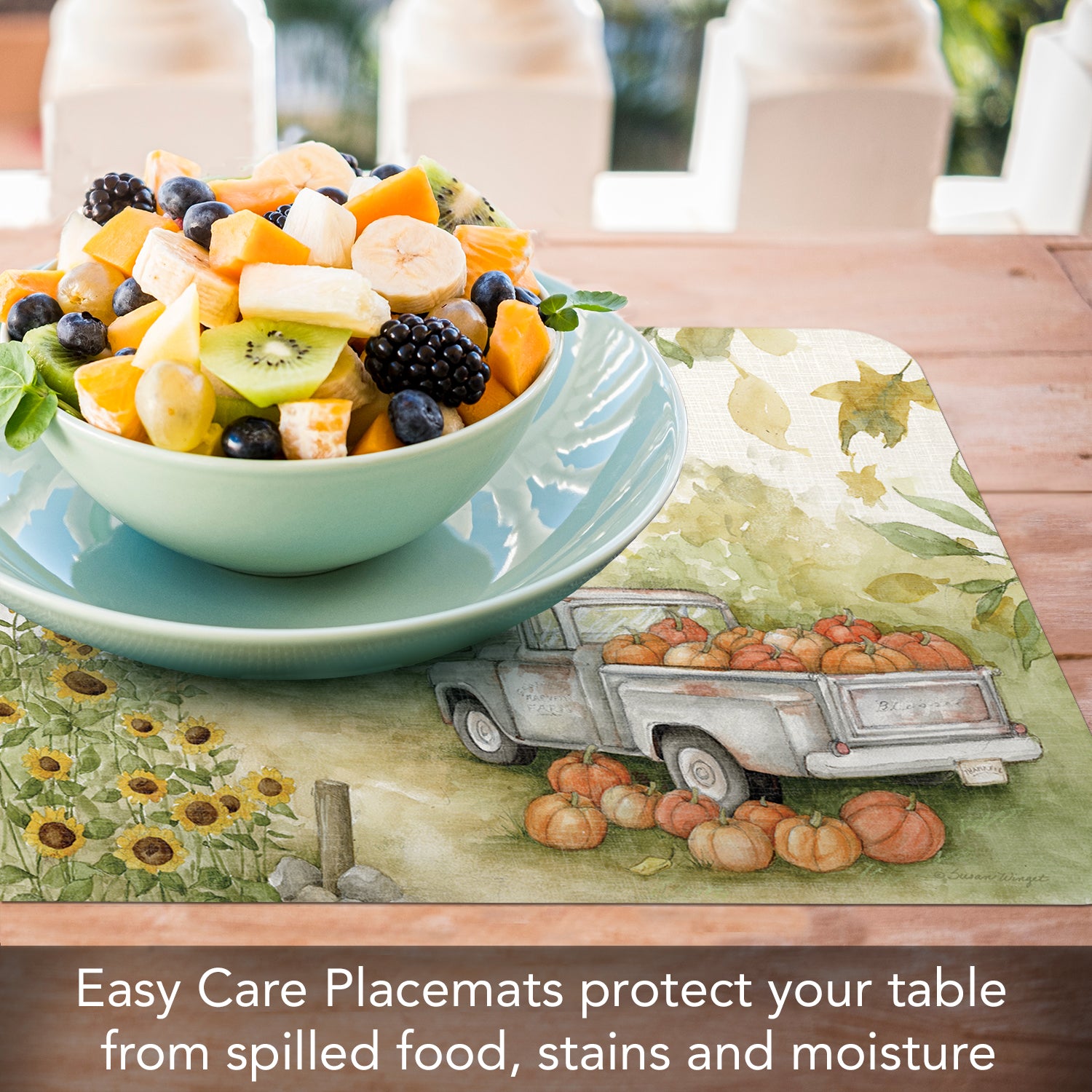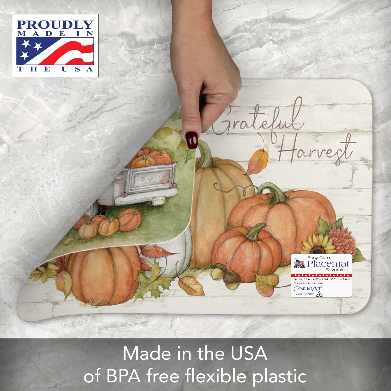 CounterArt Pumpkin Farm 4 Pack Reversible Easy Care Placemats Made in the USA