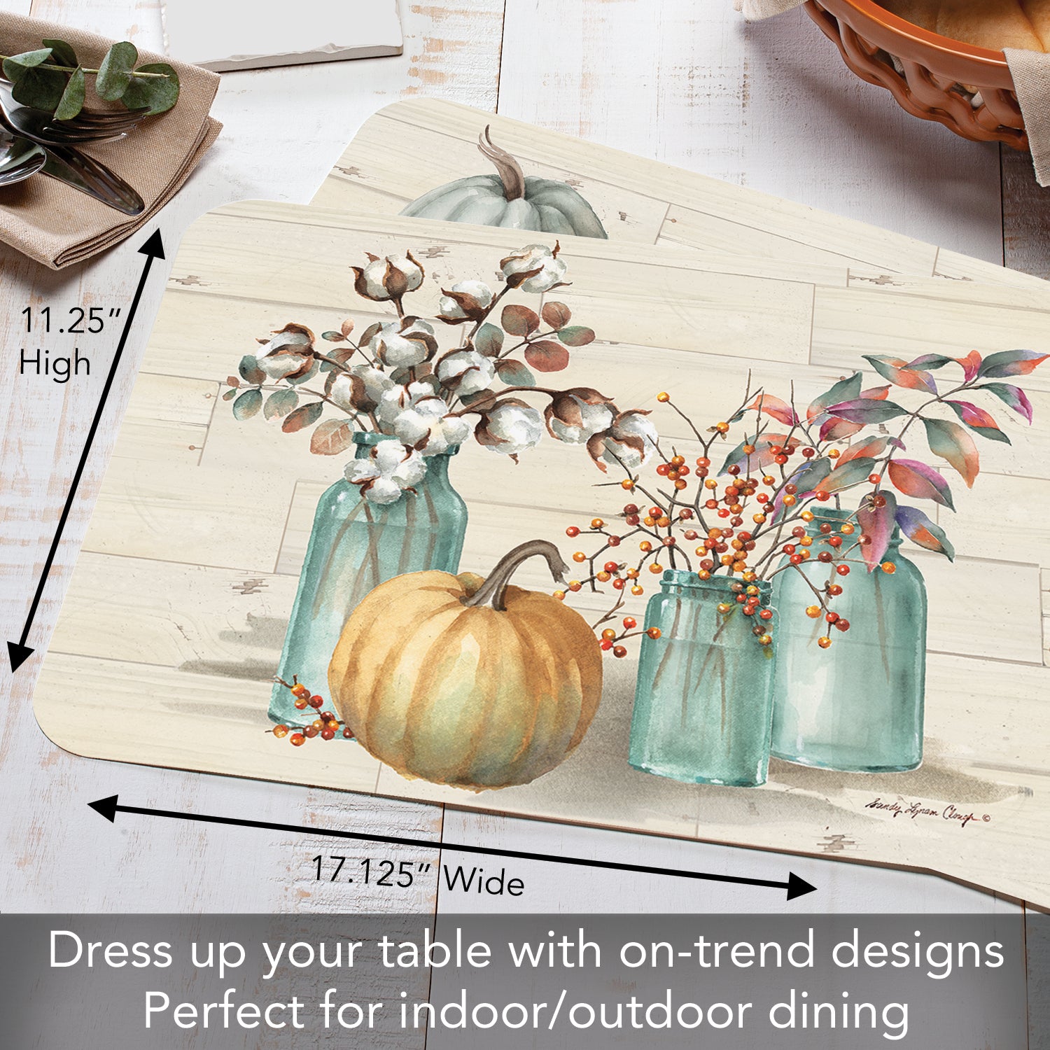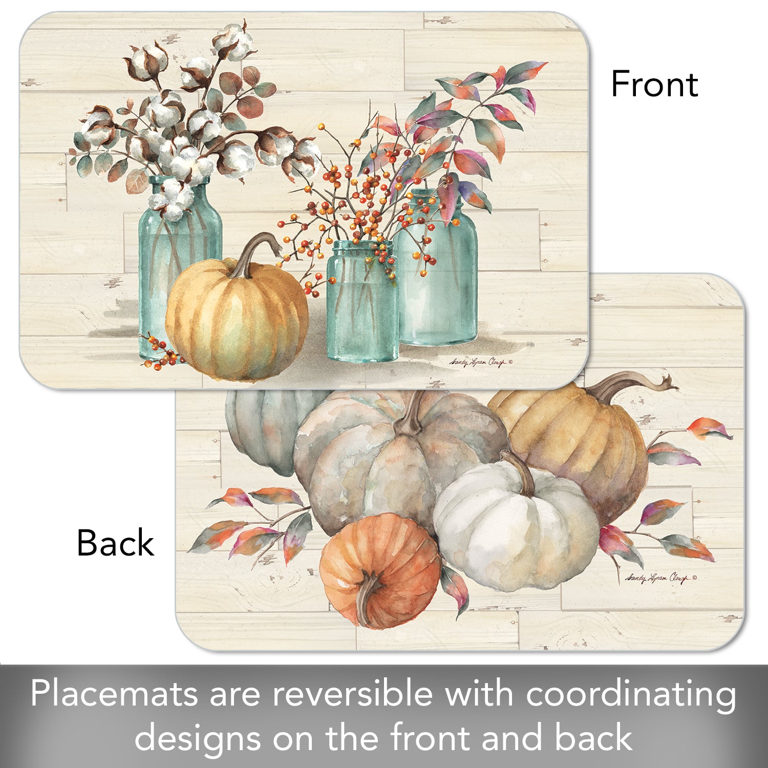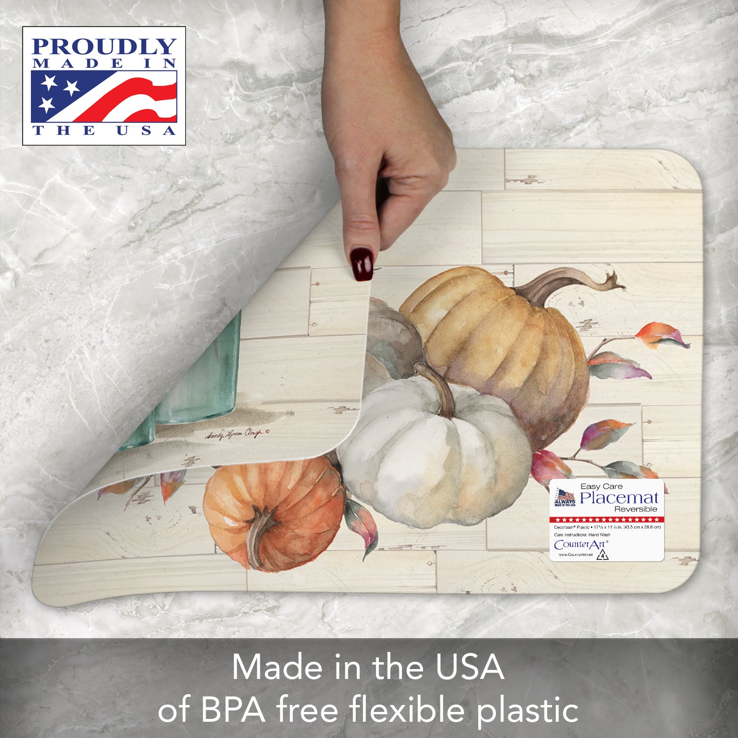 CounterArt Pumpkin Time 4 Pack Reversible Easy Care Placemats Made in the USA
