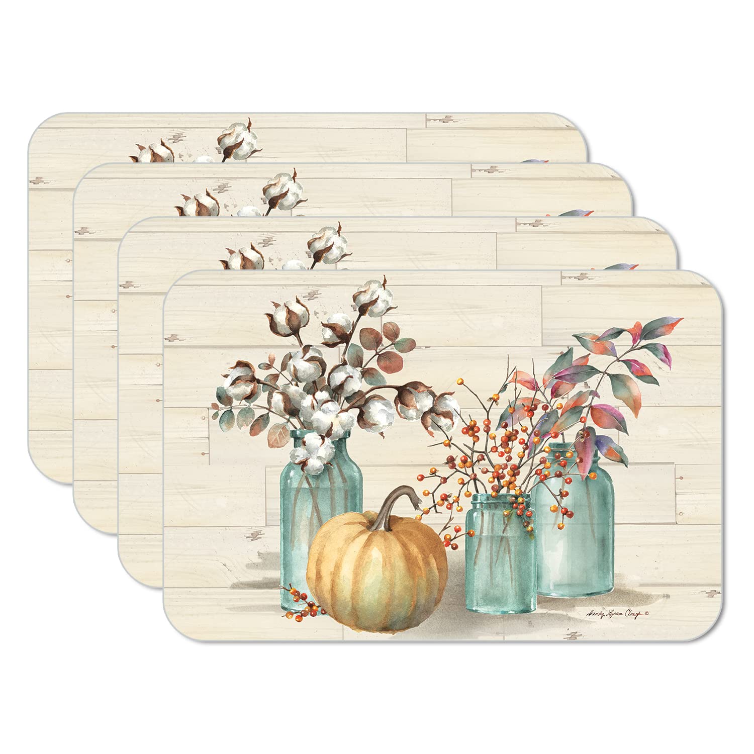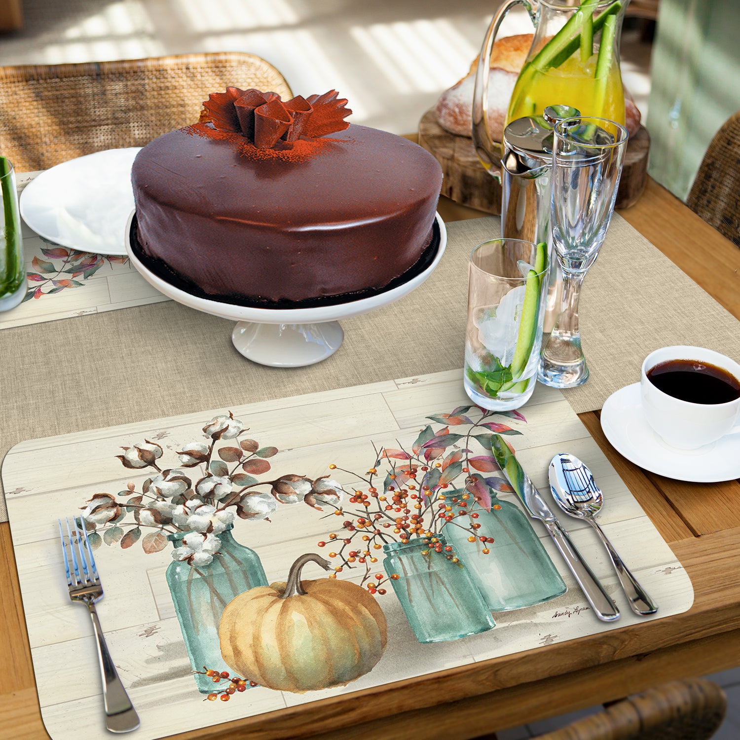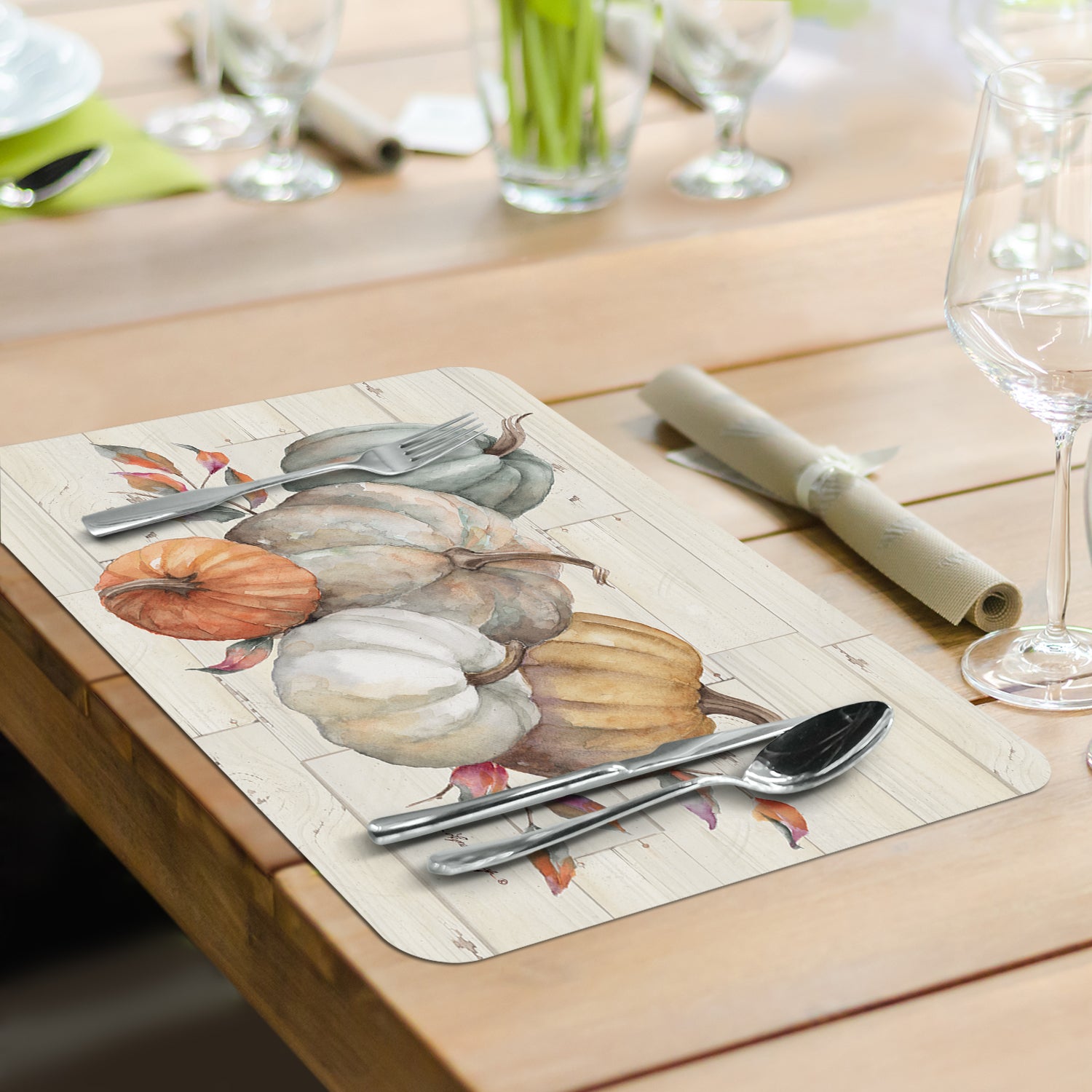 CounterArt Pumpkin Time 4 Pack Reversible Easy Care Placemats Made in the USA