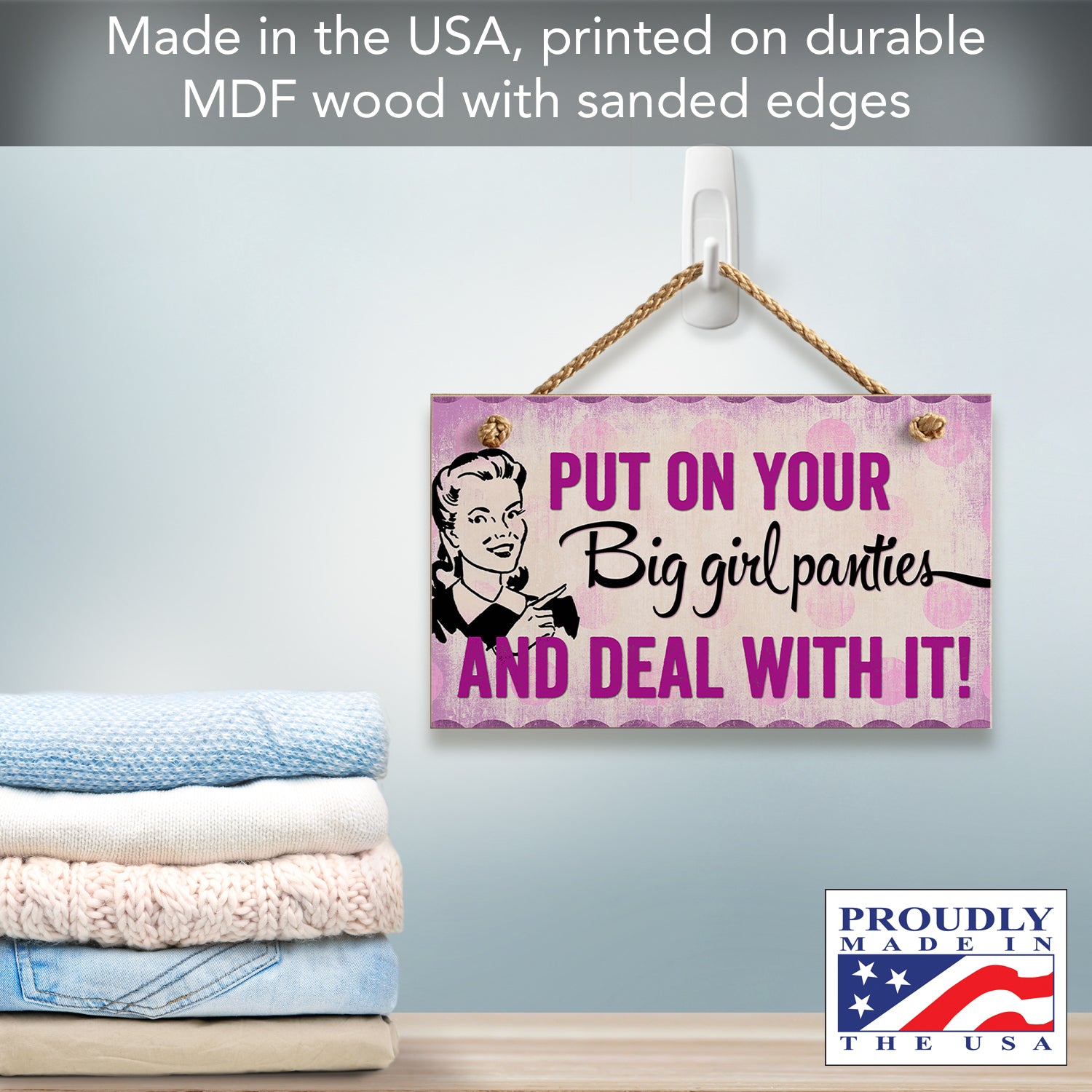Big Girl Panties Decorative Hanging Wood Wall Sign 9.5” x 5.75” Made in the USA