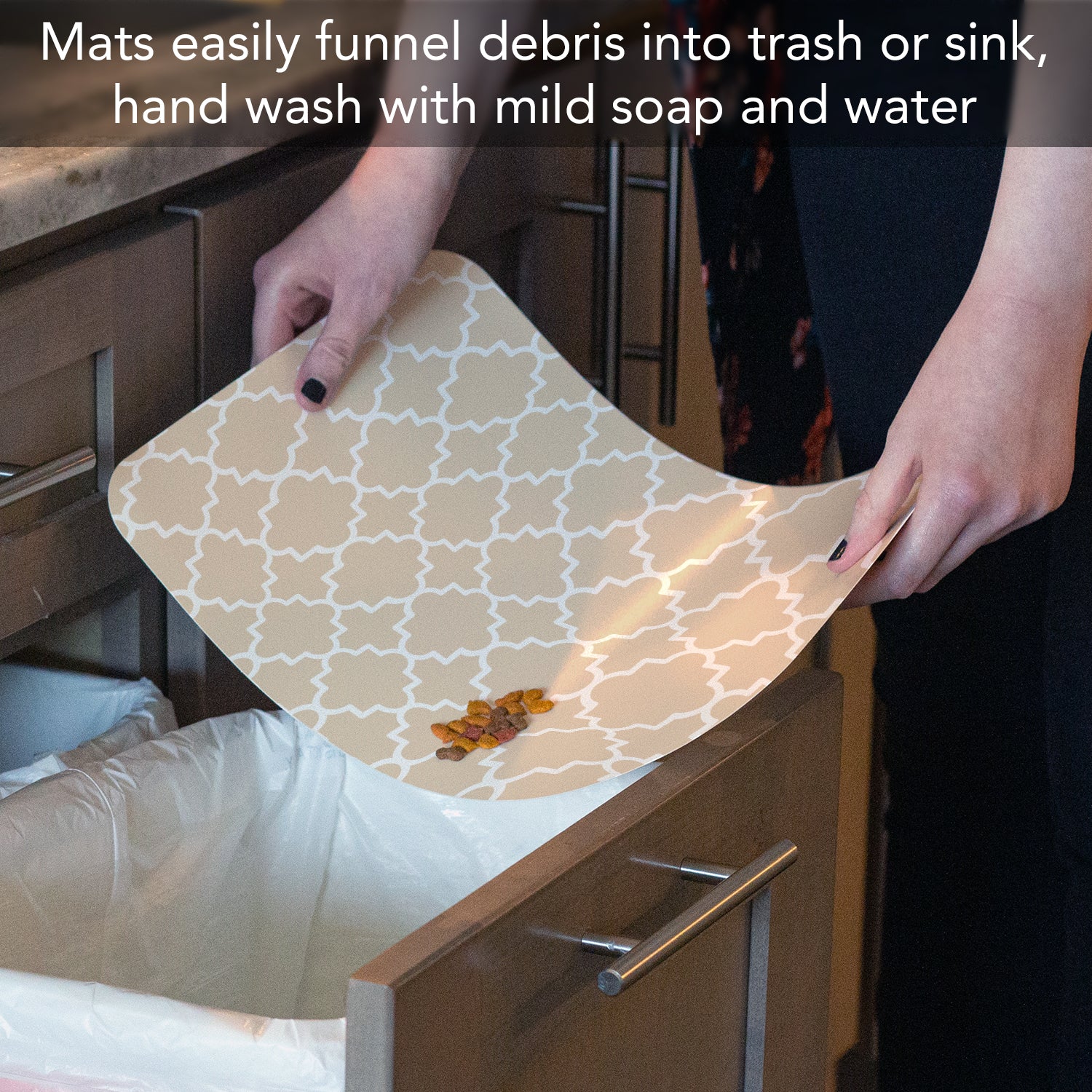 EASY CARE- Pet Feeding Mat is easy to clean, simply wash with soap and water once it becomes soiled. Flexible plastic makes it easy to transfer food scraps to the trash receptacle.