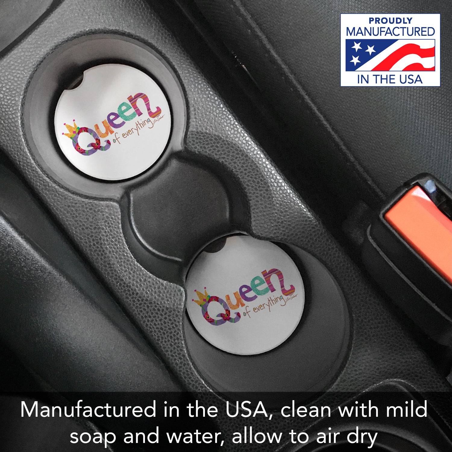 Queen of Everything Single Absorbent Stone Car Coaster 2.6” Diameter Manufactured in the USA