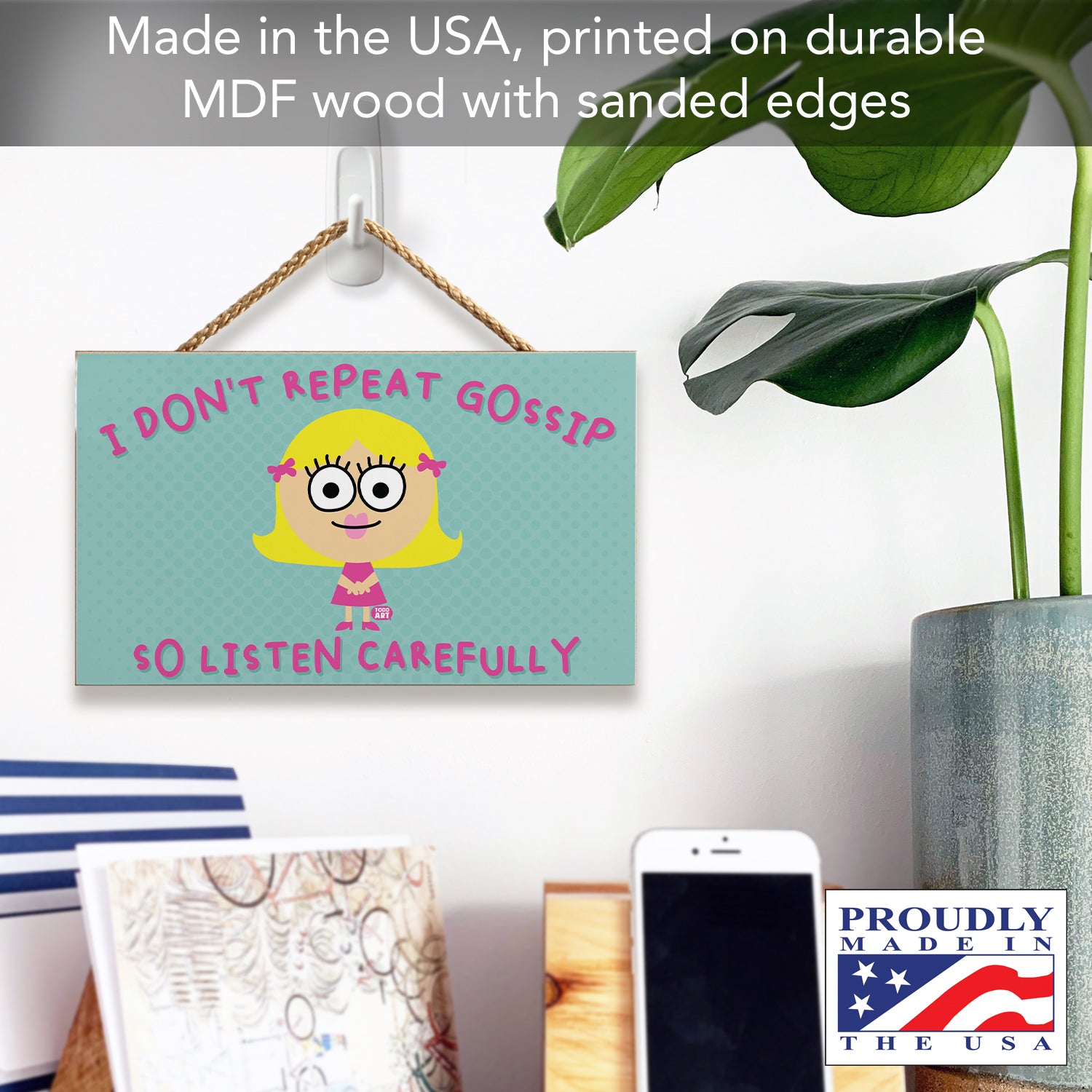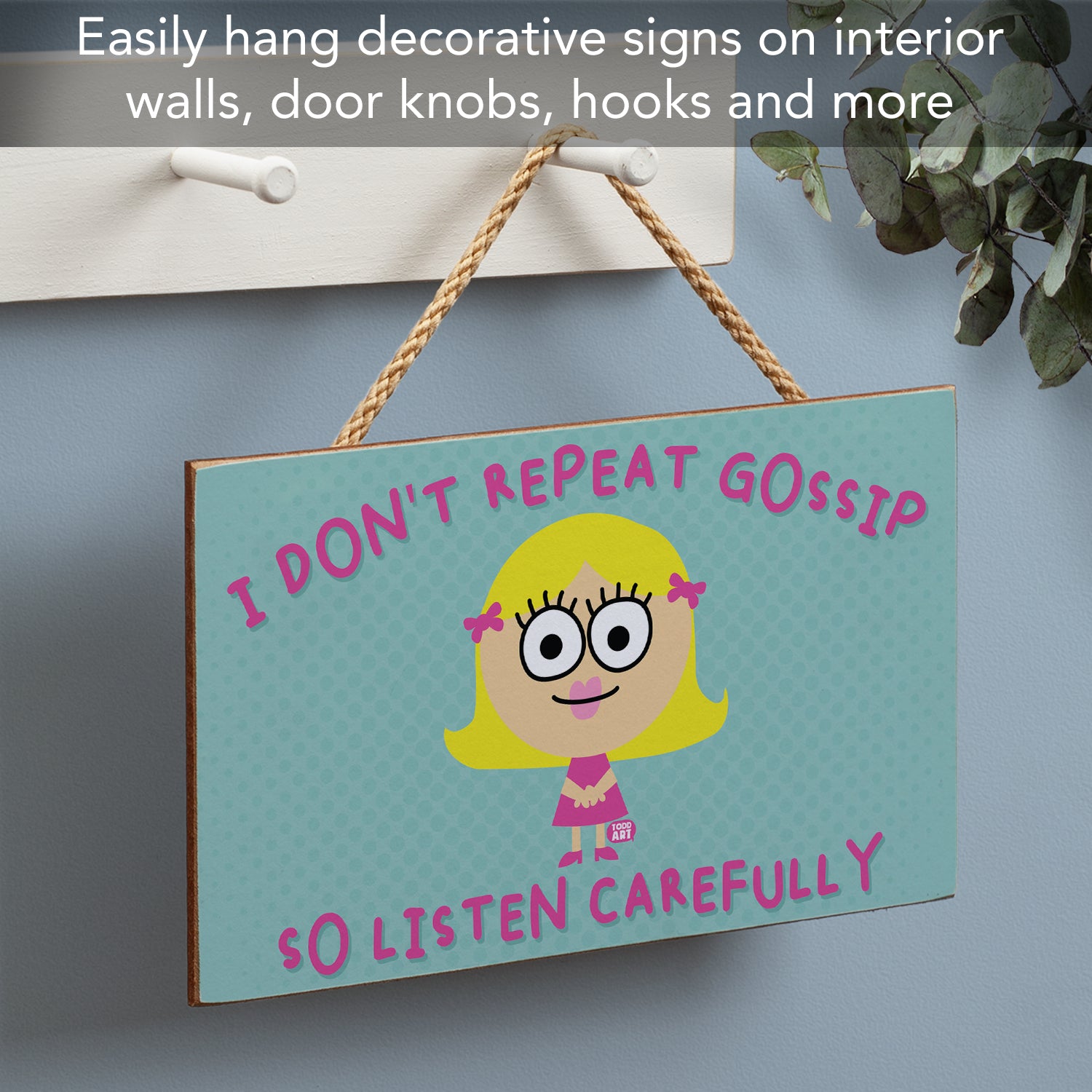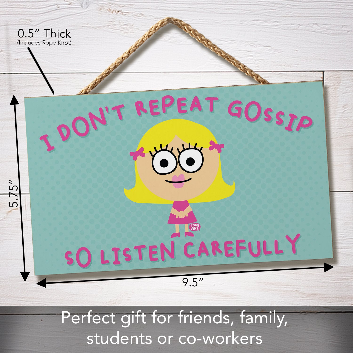 Repeat Gossip Humorous Hanging Wood Wall Sign 9.5” by 5.75” Made in the USA