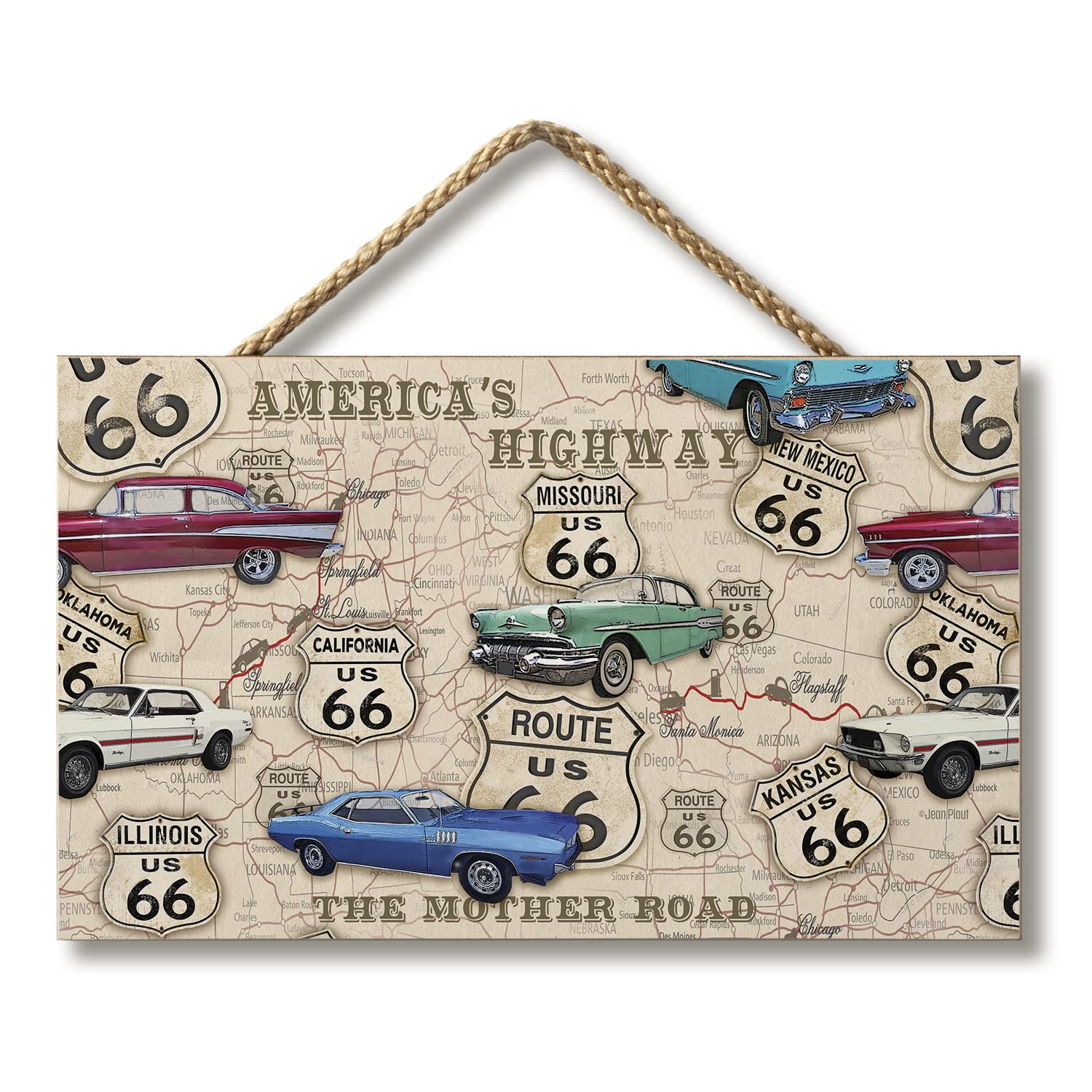 Route 66 Map Decorative Hanging Wood Sign 9.5” by 5.75” Made in the USA