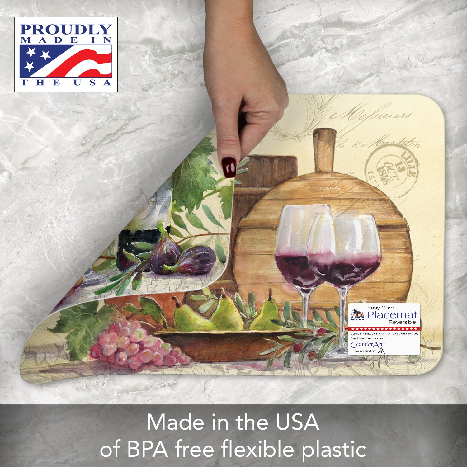 CounterArt Rustic Wine 4 Pack Reversible Easy Care Flexible Placemats Made in the USA