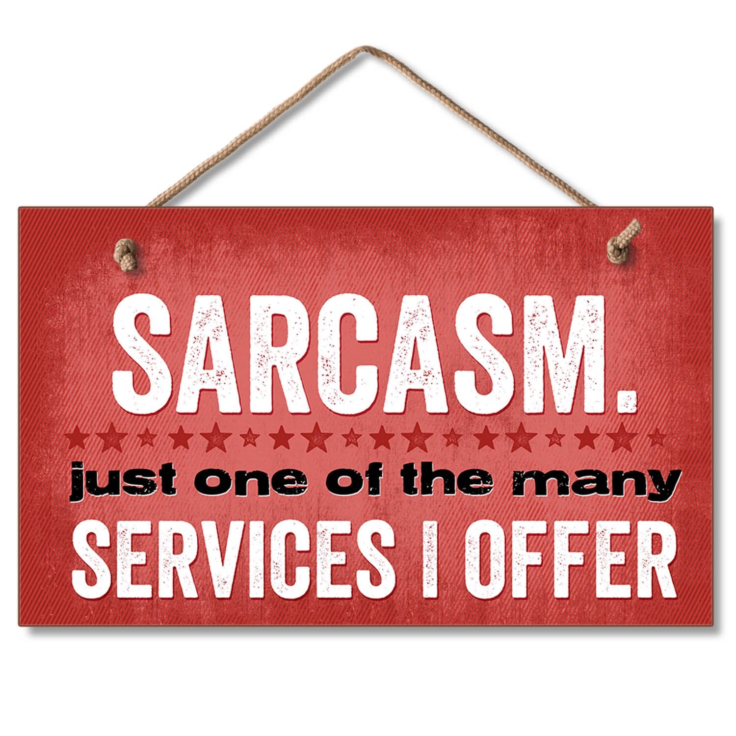 Sarcasm Decorative Hanging Wood Wall Sign 9.5” x 5.75” Made in the USA