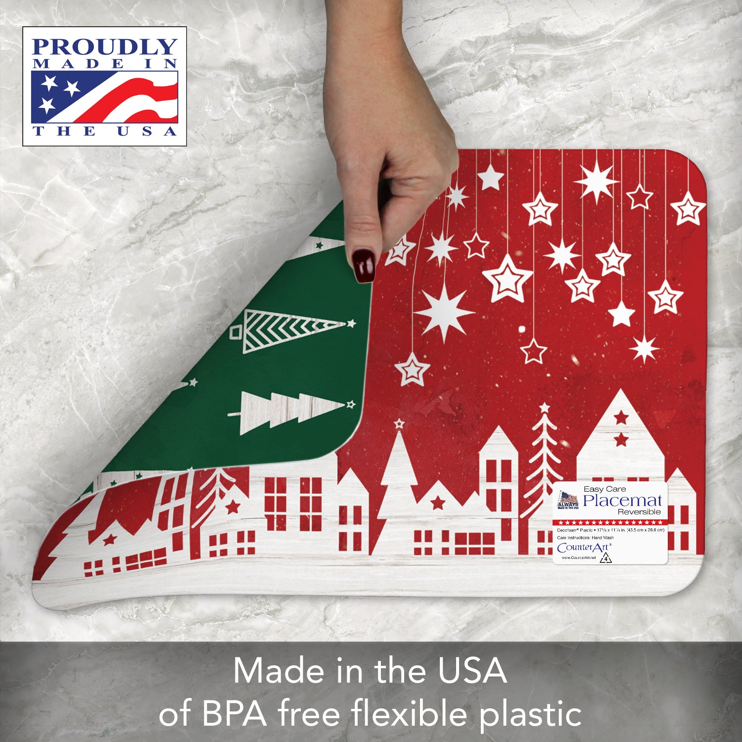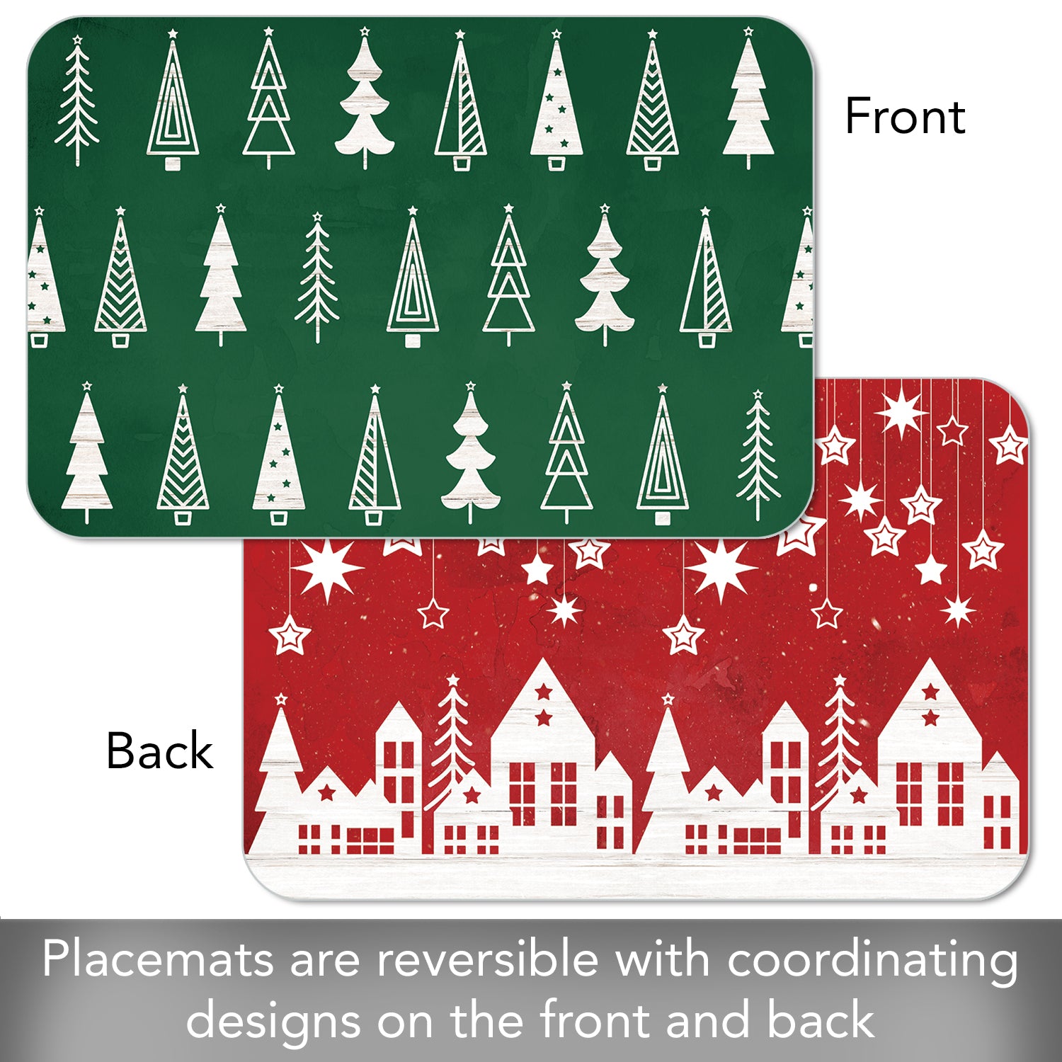 CounterArt Scandinavian Trees 4 Pack Reversible Easy Care Placemats Made in the USA