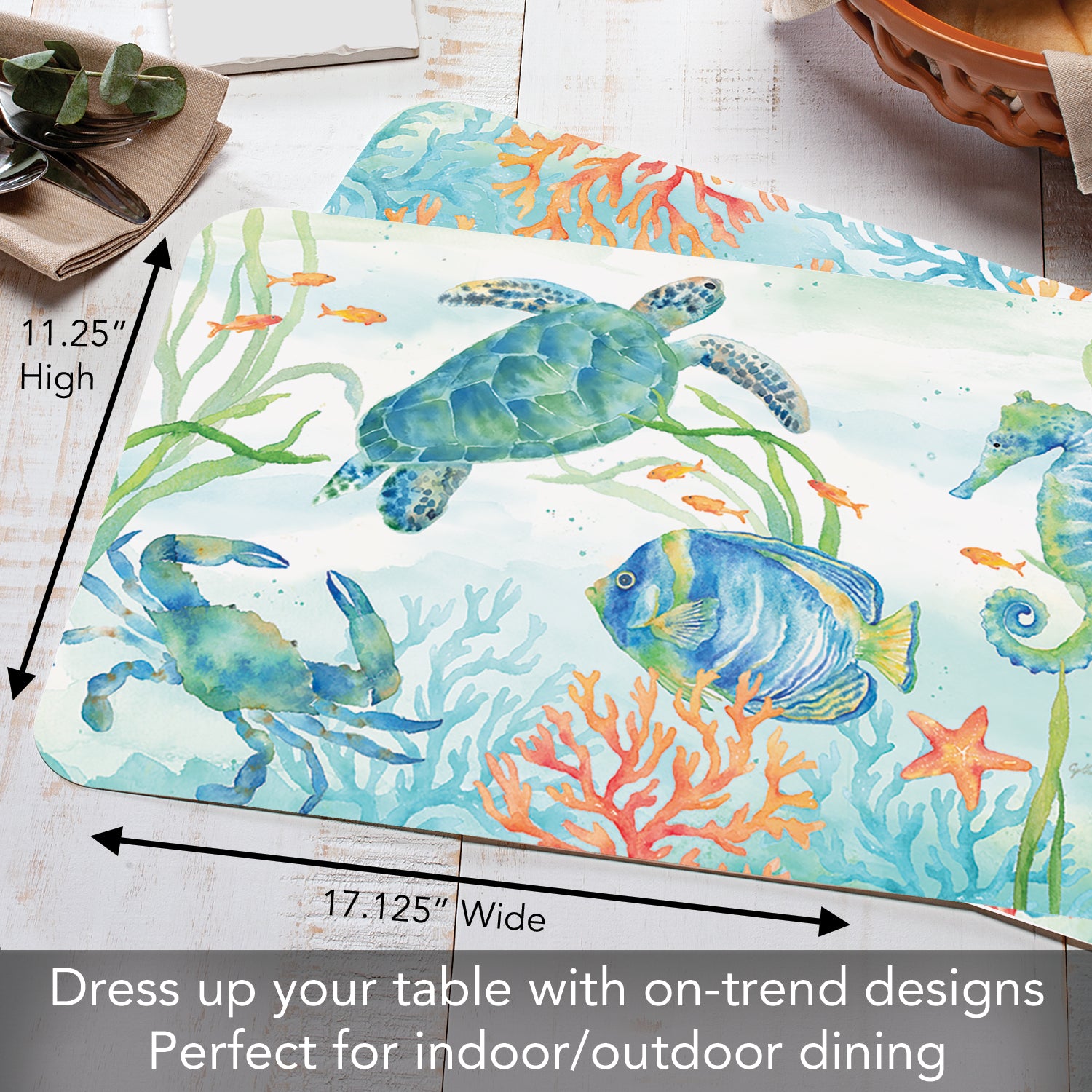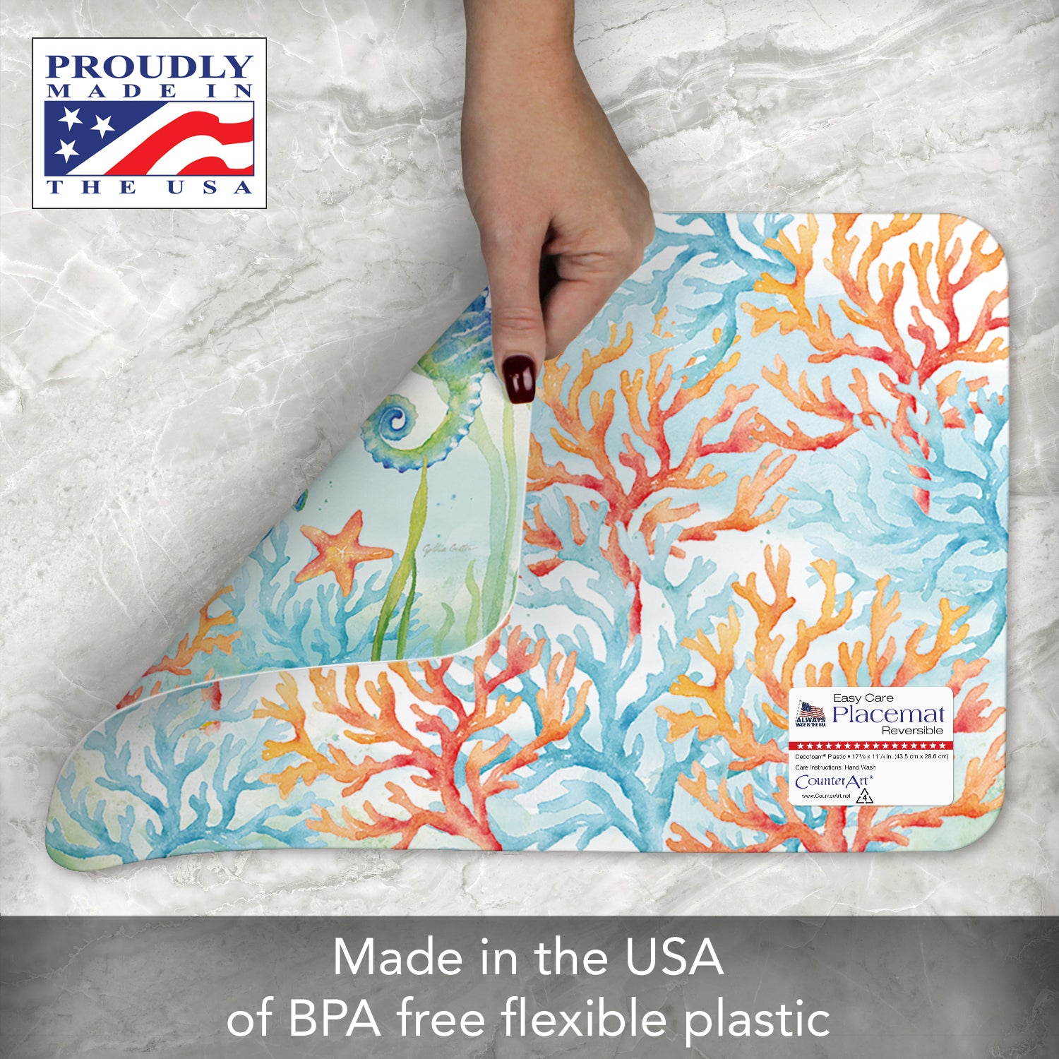 CounterArt Sea Life Serenade 4 Pack Reversible Easy Care Flexible Placemats Made in the USA