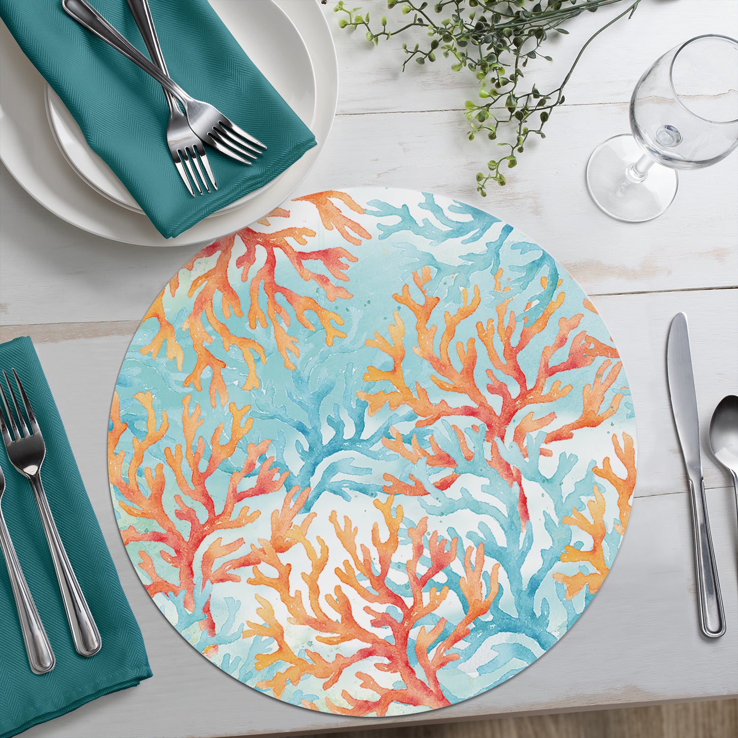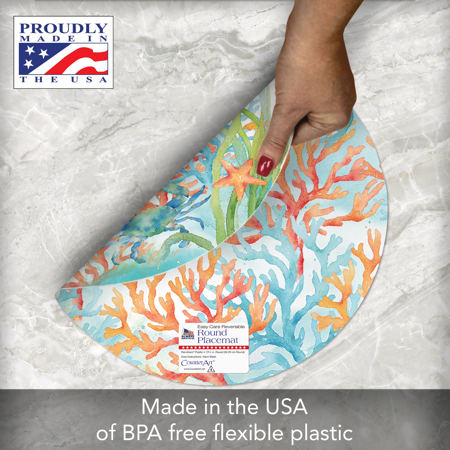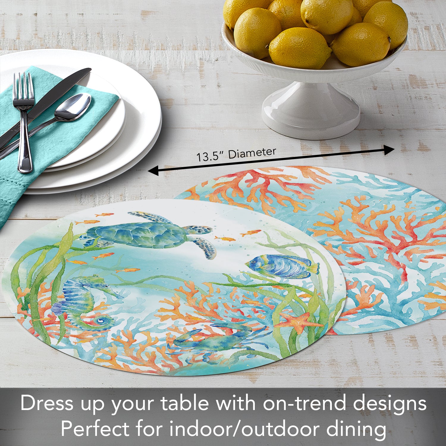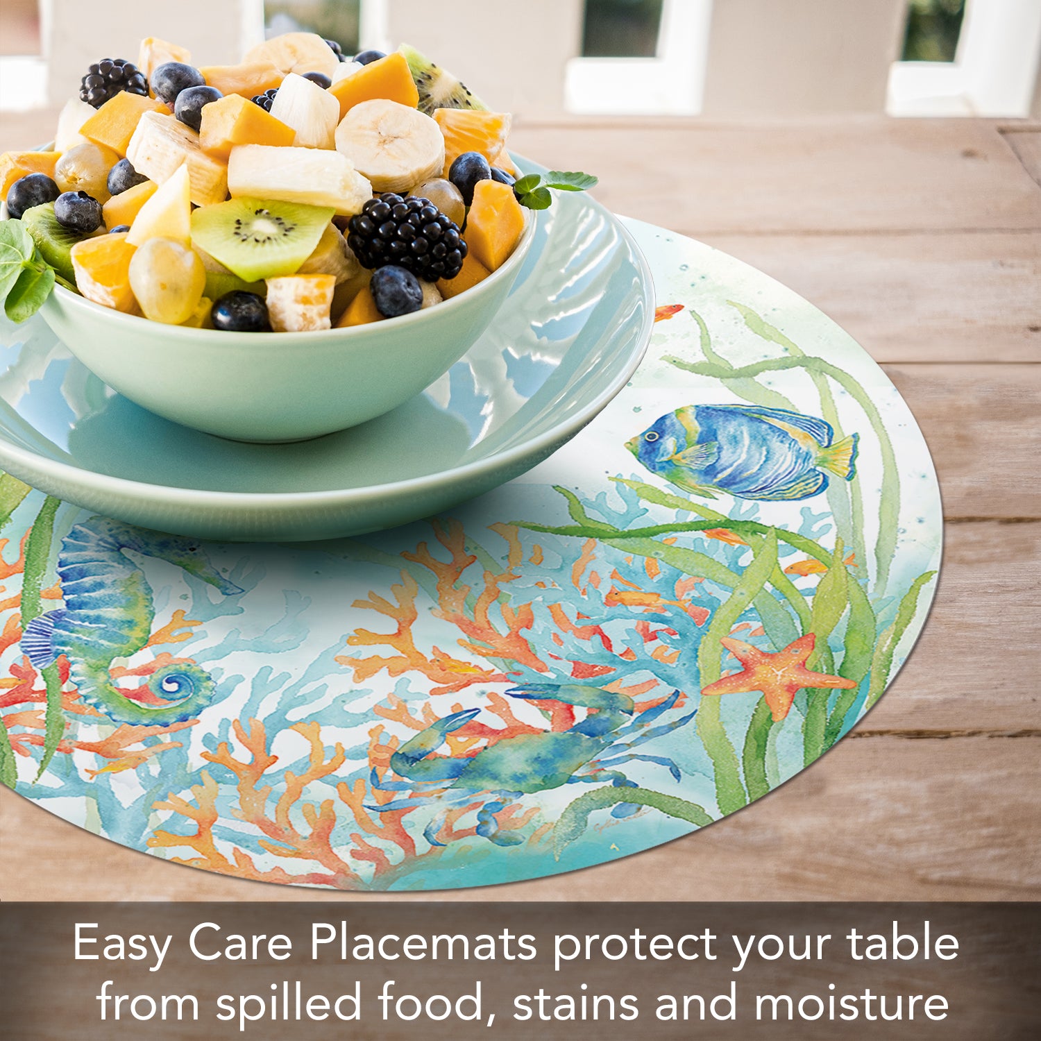 CounterArt Sea Life Serenade 4 Pack Round Reversible Easy Care Placemats Made in The USA