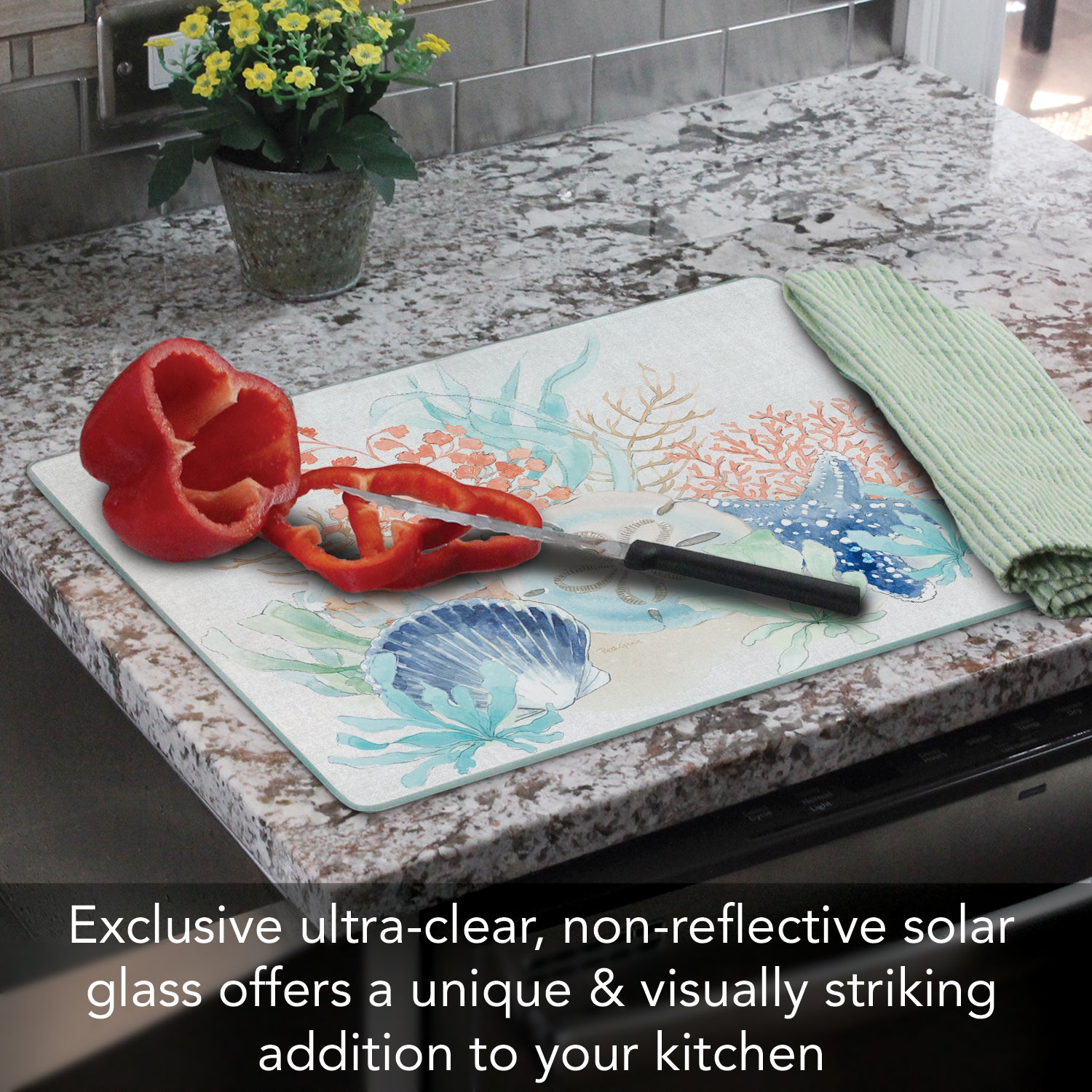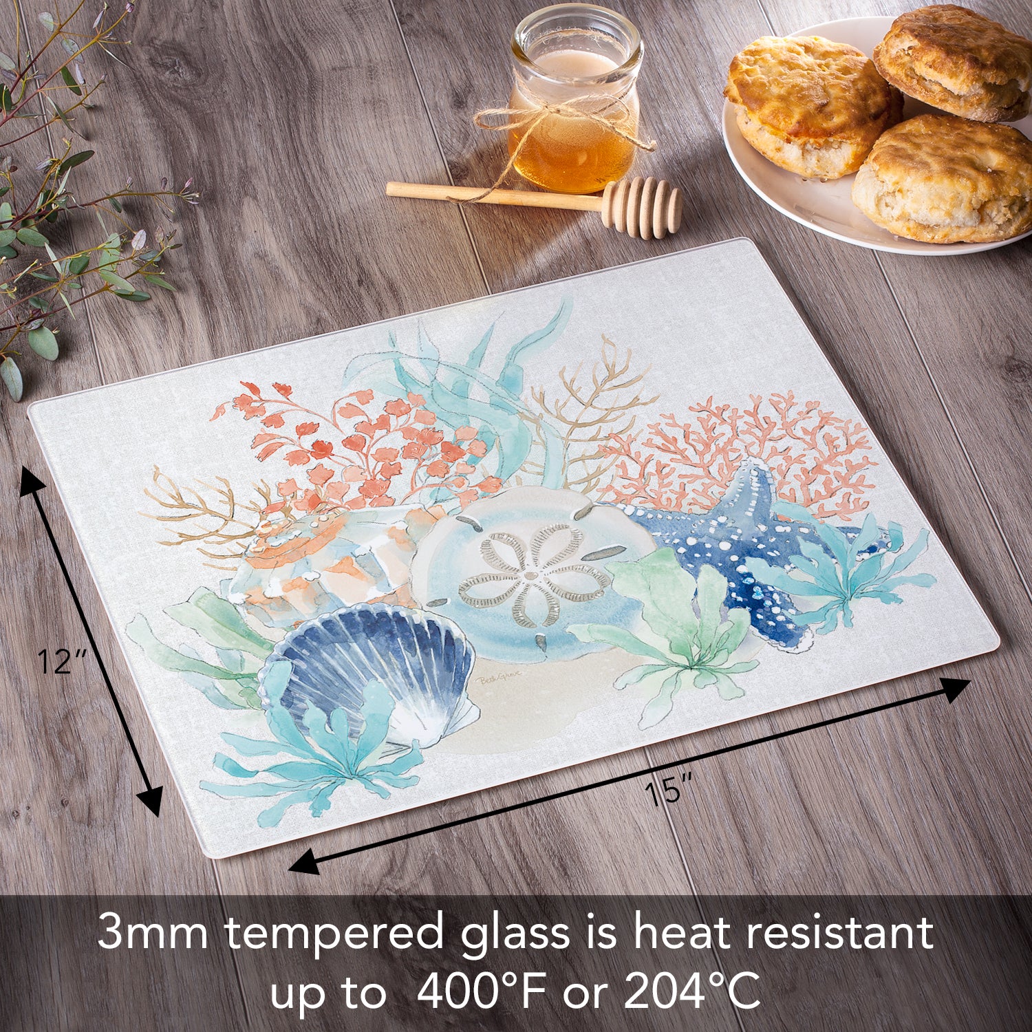 CounterArt Seaside 3mm Tempered Glass Cutting Board 12" x 15" Manufactured in the USA